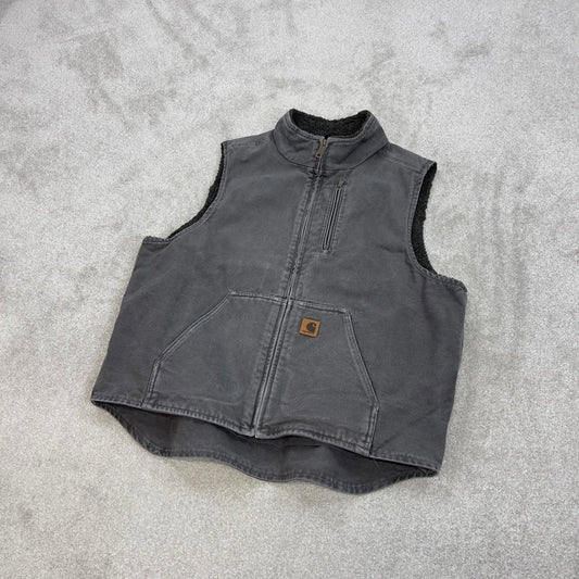 Grey vintage Carhartt Gilet XL thick canvas sherpa lined body warmer
