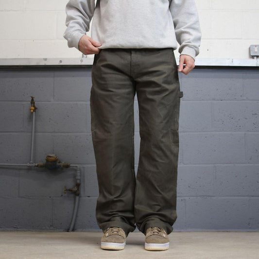 Green Dickies carpenter jeans W34L34 loose 90s skate style canvas cargos utility American workwear