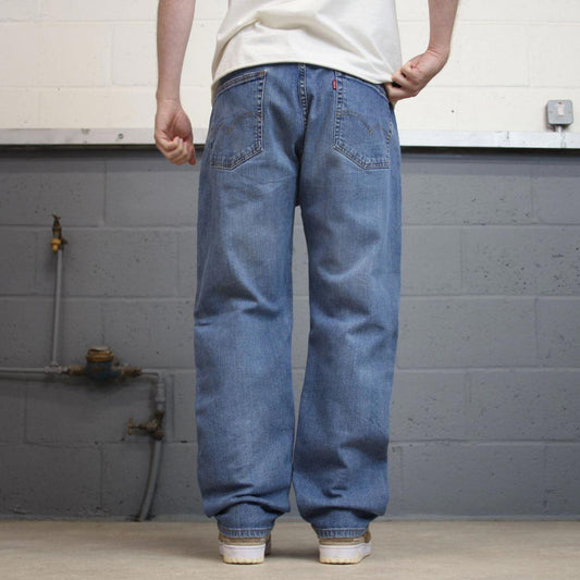 Blue Levis 505 jeans W38L30 blue loose straight leg y2k style pants red tab logo