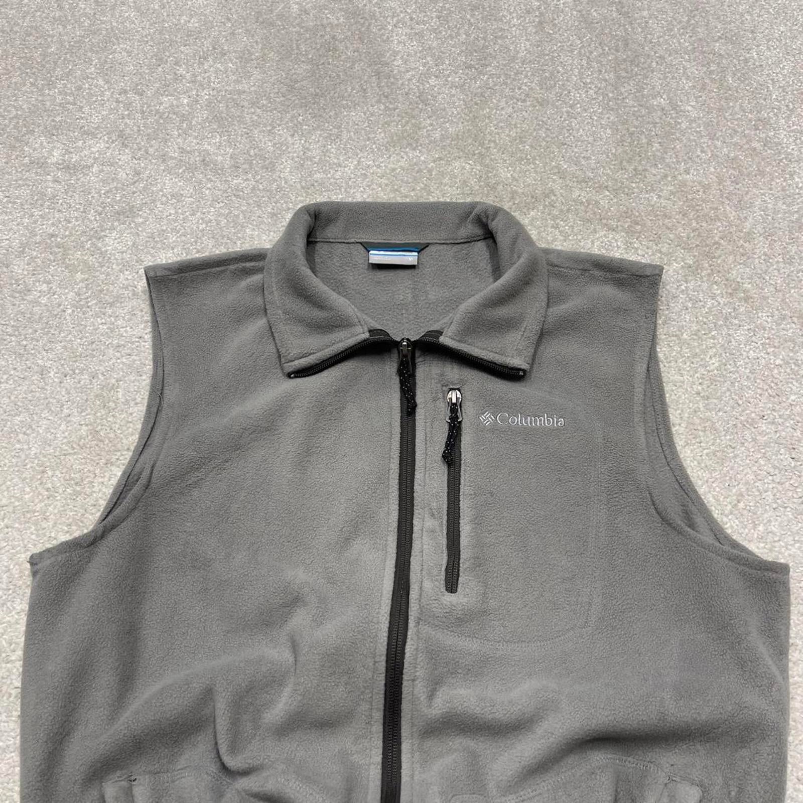 Grey Columbia Sportswear tech fleece body warmer with embroidered logo, adjustable and zip pockets