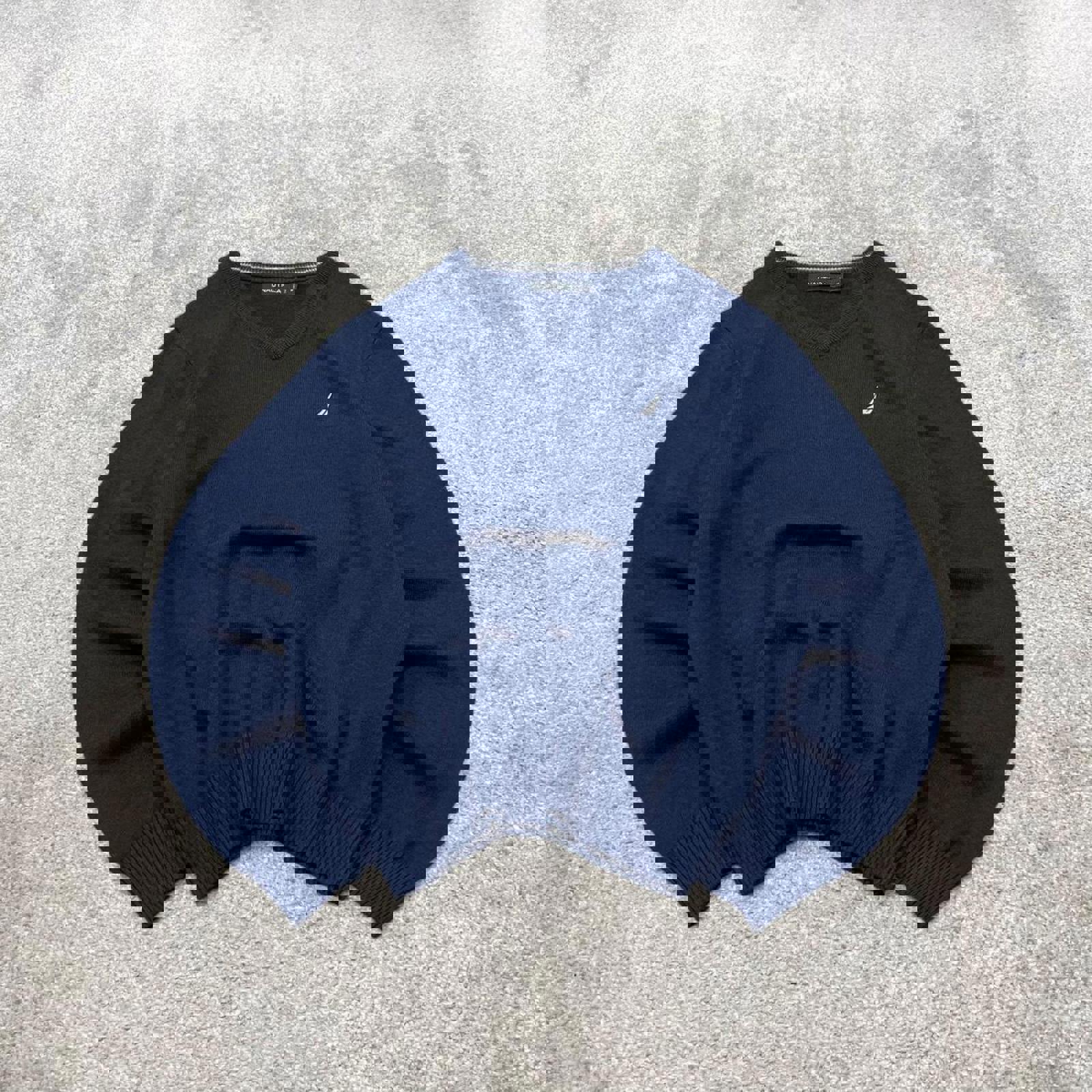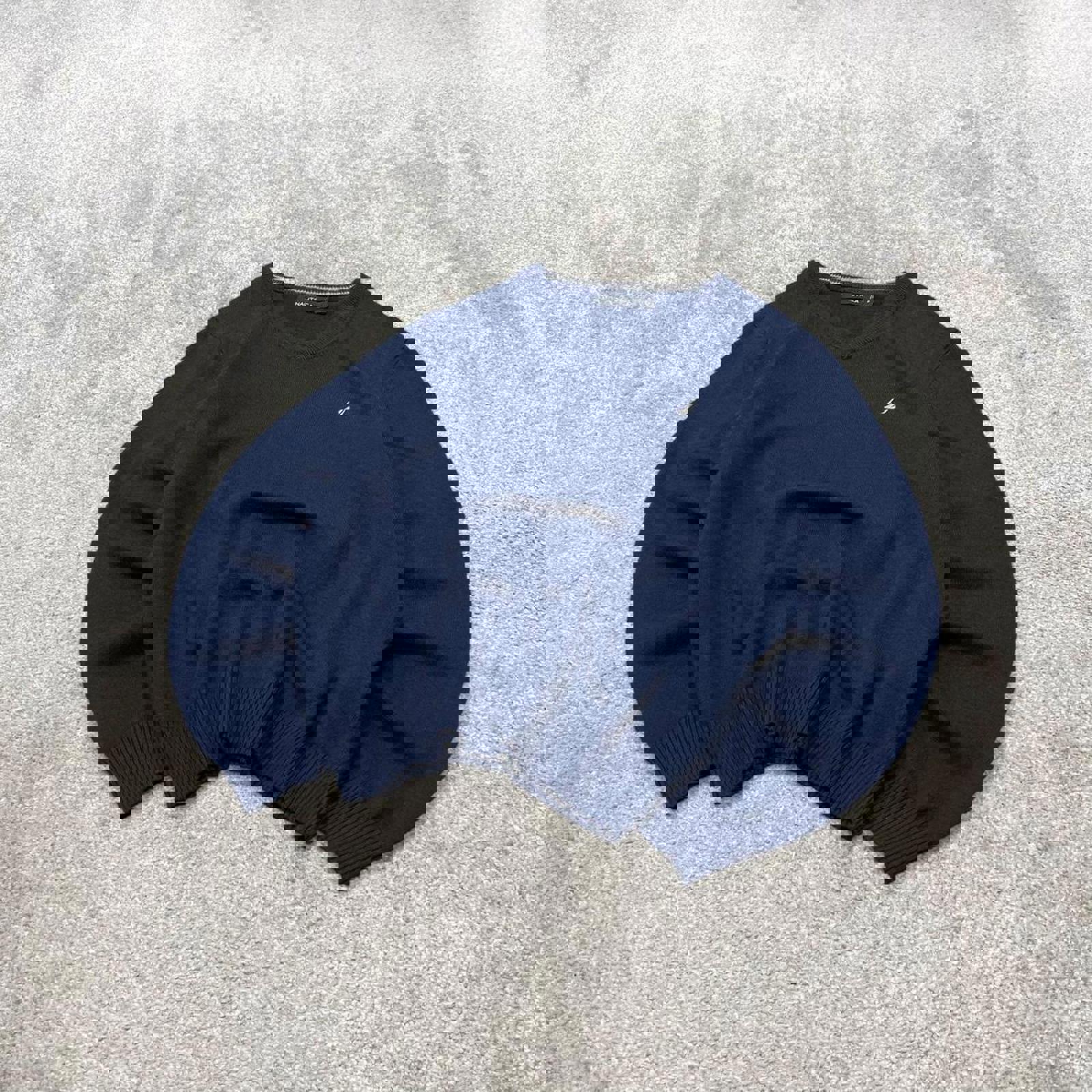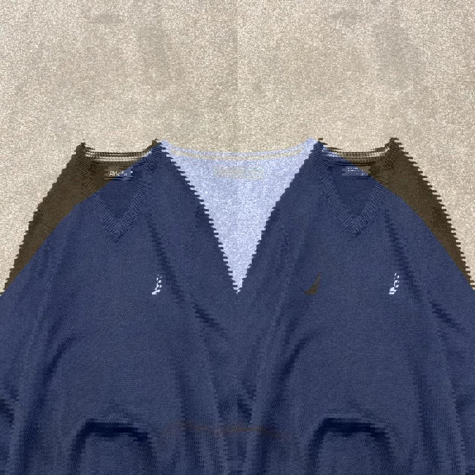 00s Nautica knit sweater jumper embroidered medium men's navy knitted pull over y2k 00s style