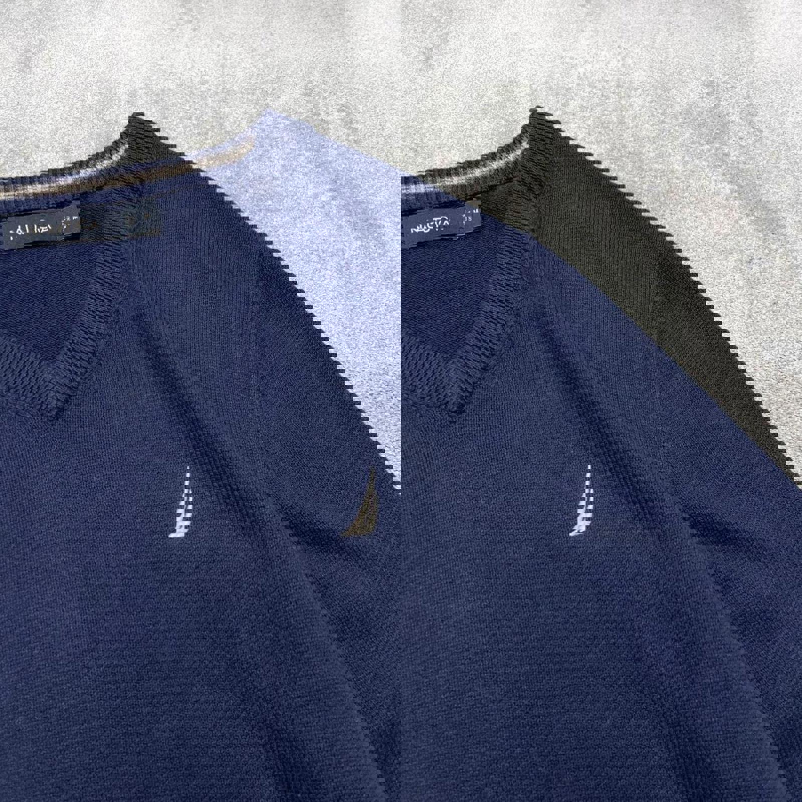 Navy Nautica knit v neck jumper with embroidered logo