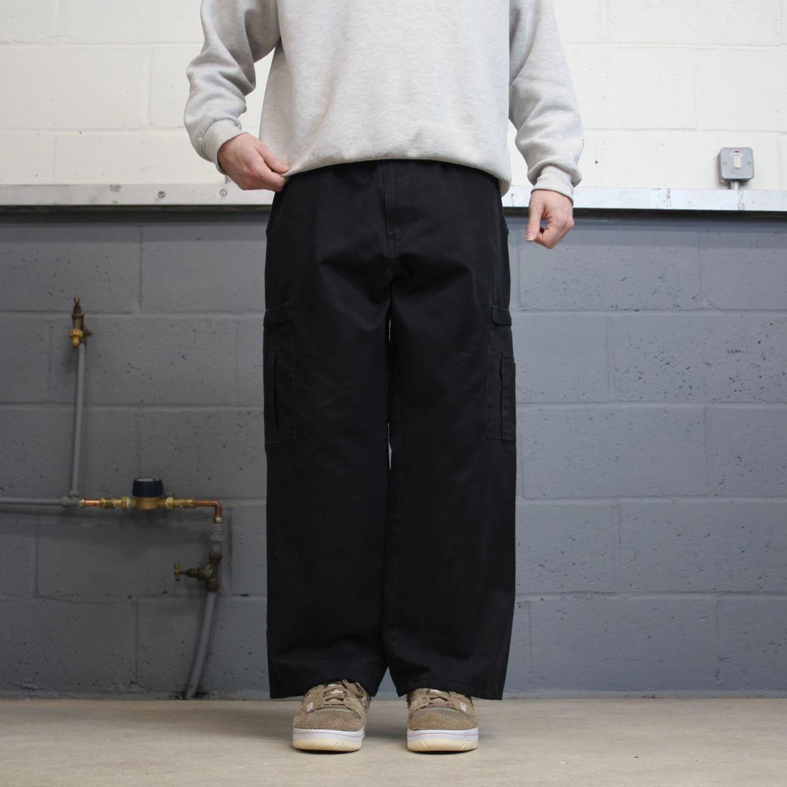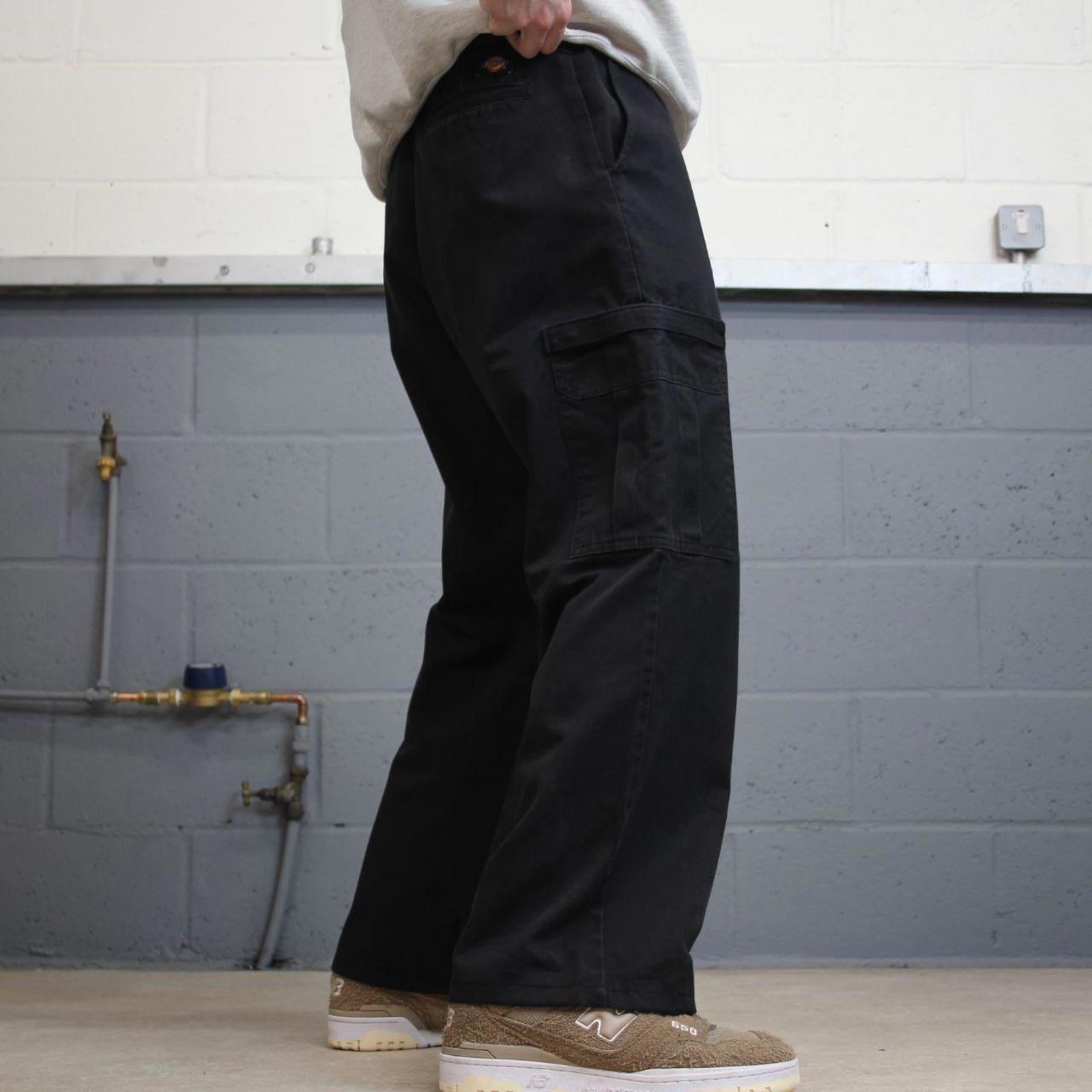 90s Dickies cargo trousers loose W36L28 black wide leg cargo skater twill chino style pants