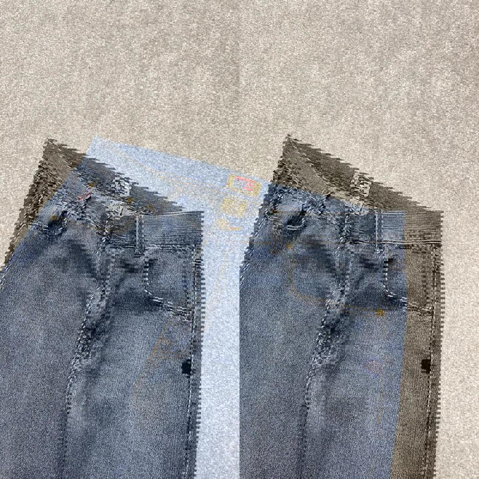Great condition overall with light fraying at the ends of the legs and an ink stain by the front pocket