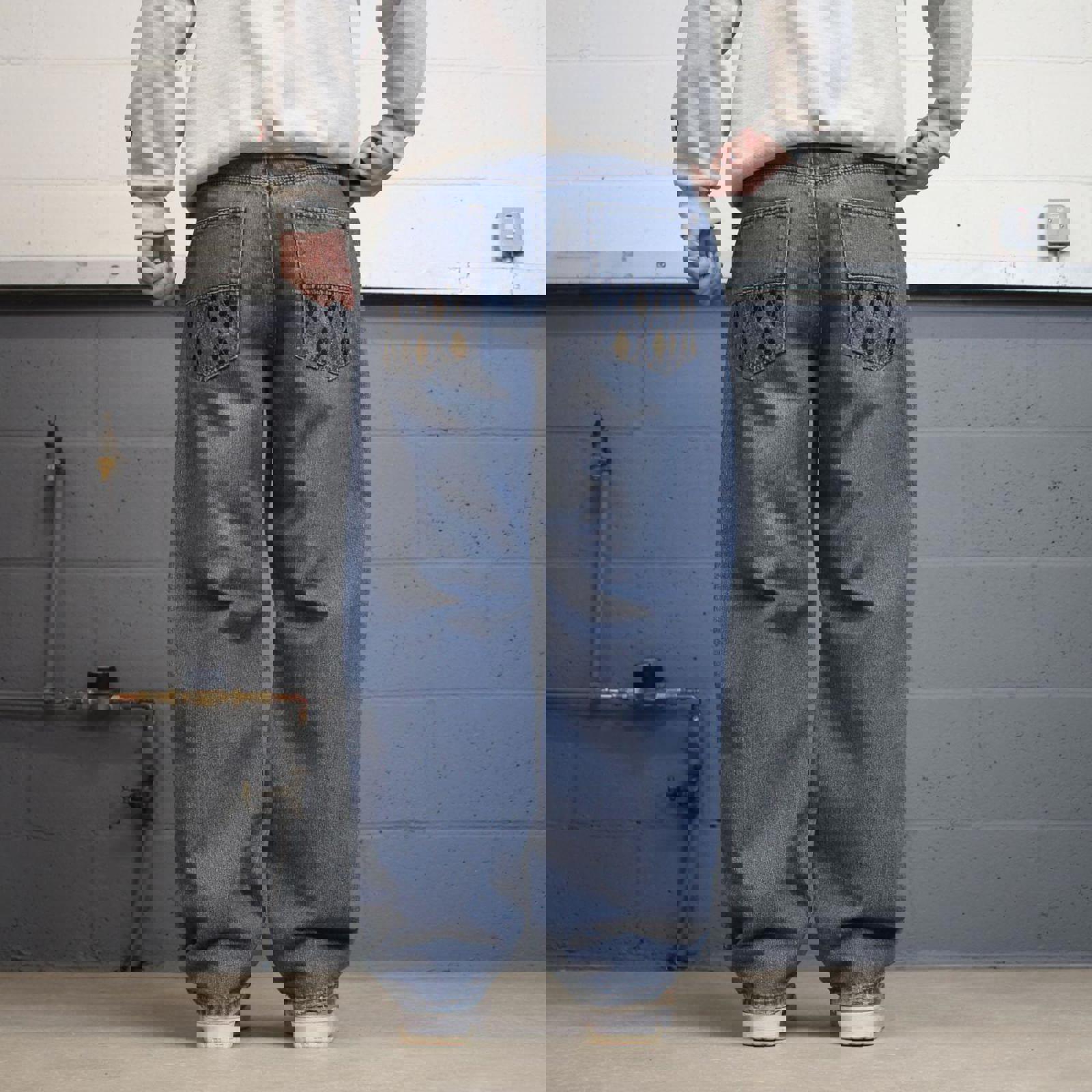 Denim Phat Farm skate jeans with a nice loose fit with waist patch and embroidered designs