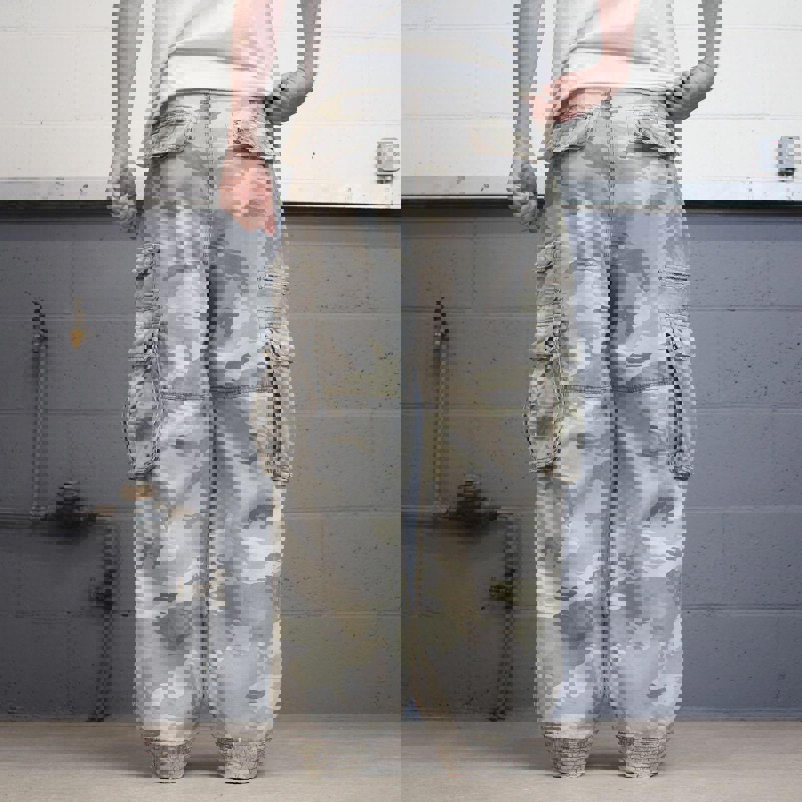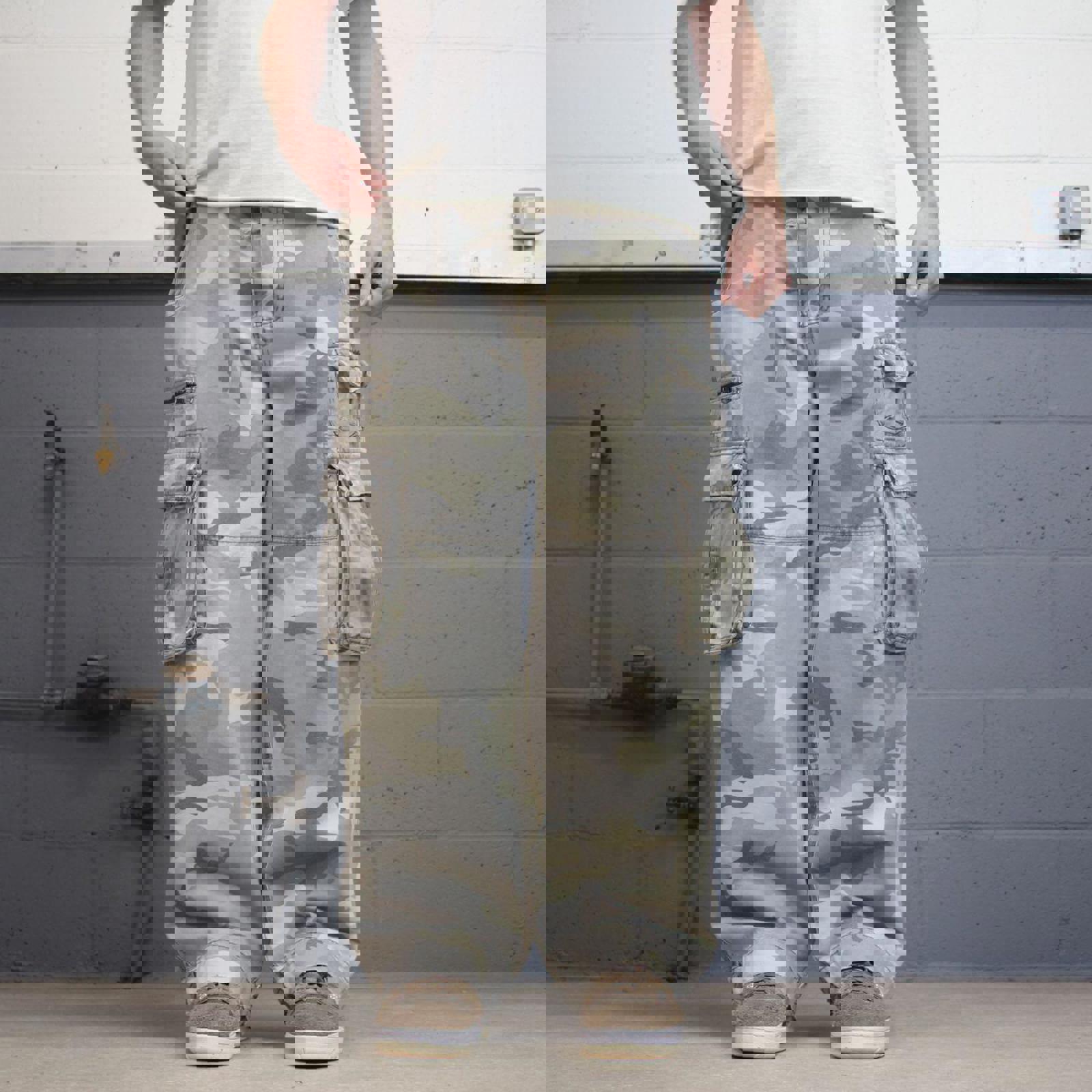 Baggy camo No Boundaries cargo pants W36L28 khaki grey camouflage loose y2k style cargos utility