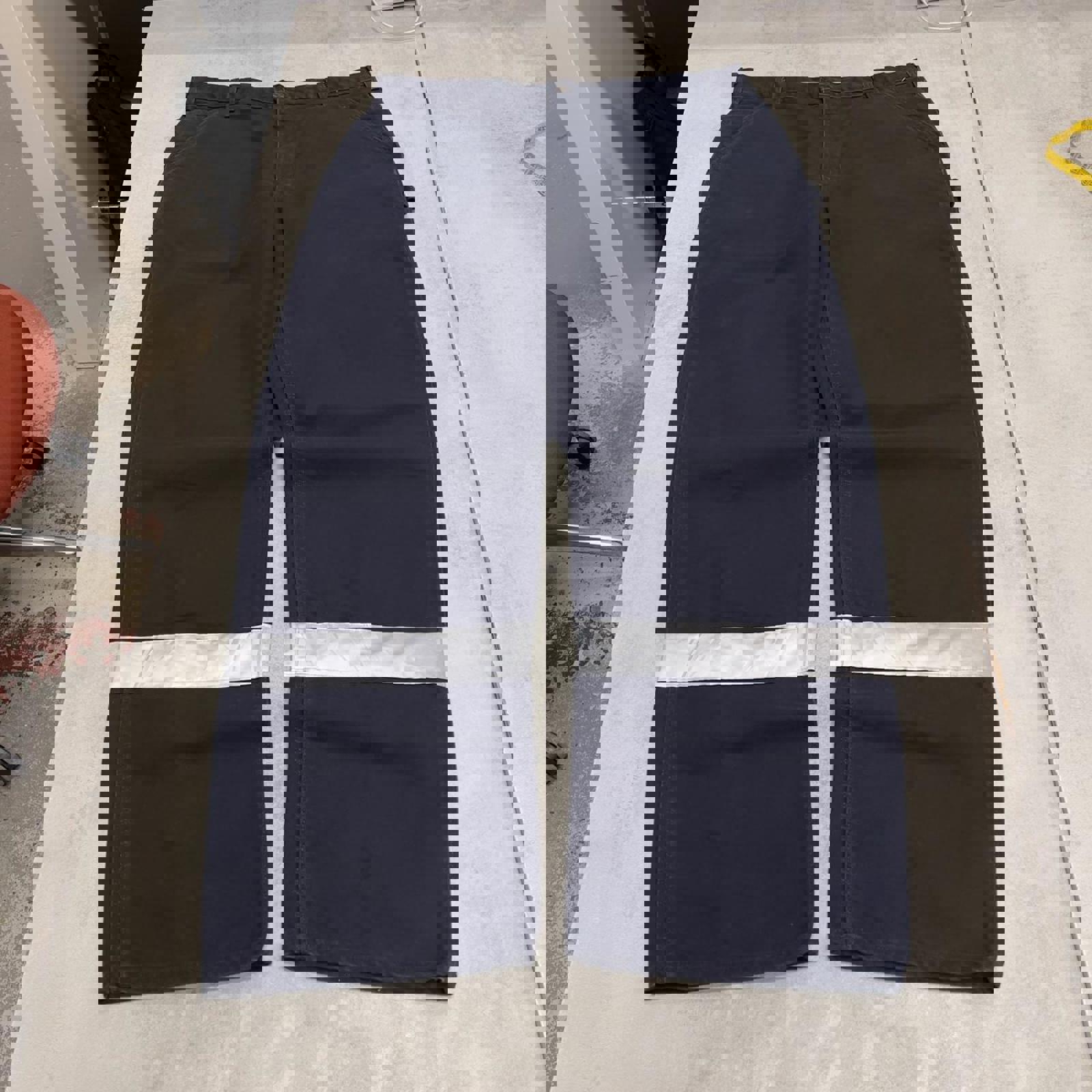 Navy Carhartt cargos with patch logo and hi visibility strips on the legs