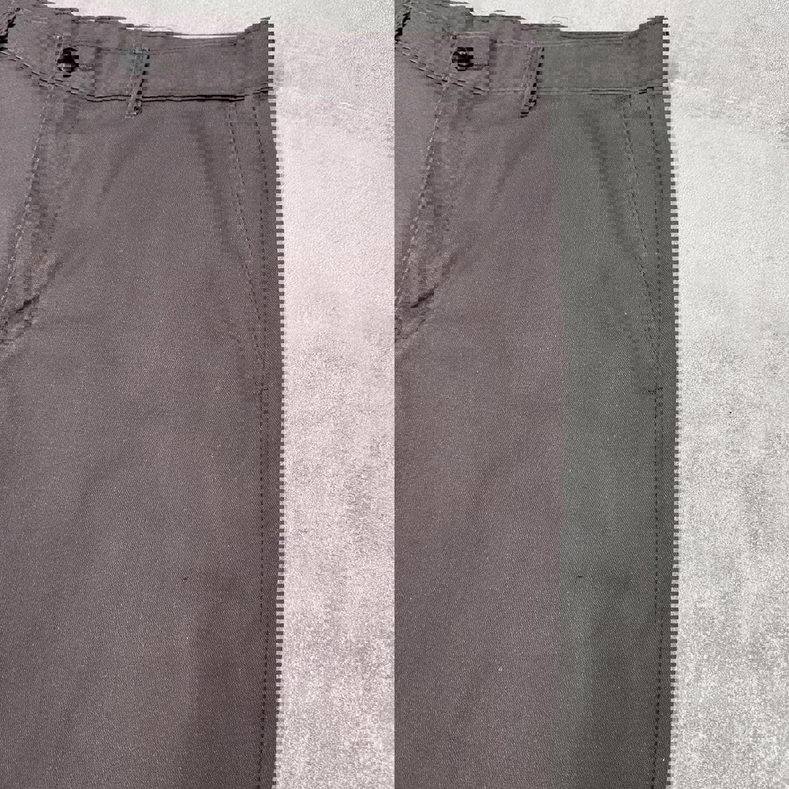 Good condition with fading, light wear and a few small marks. Patch logo on left leg is missing