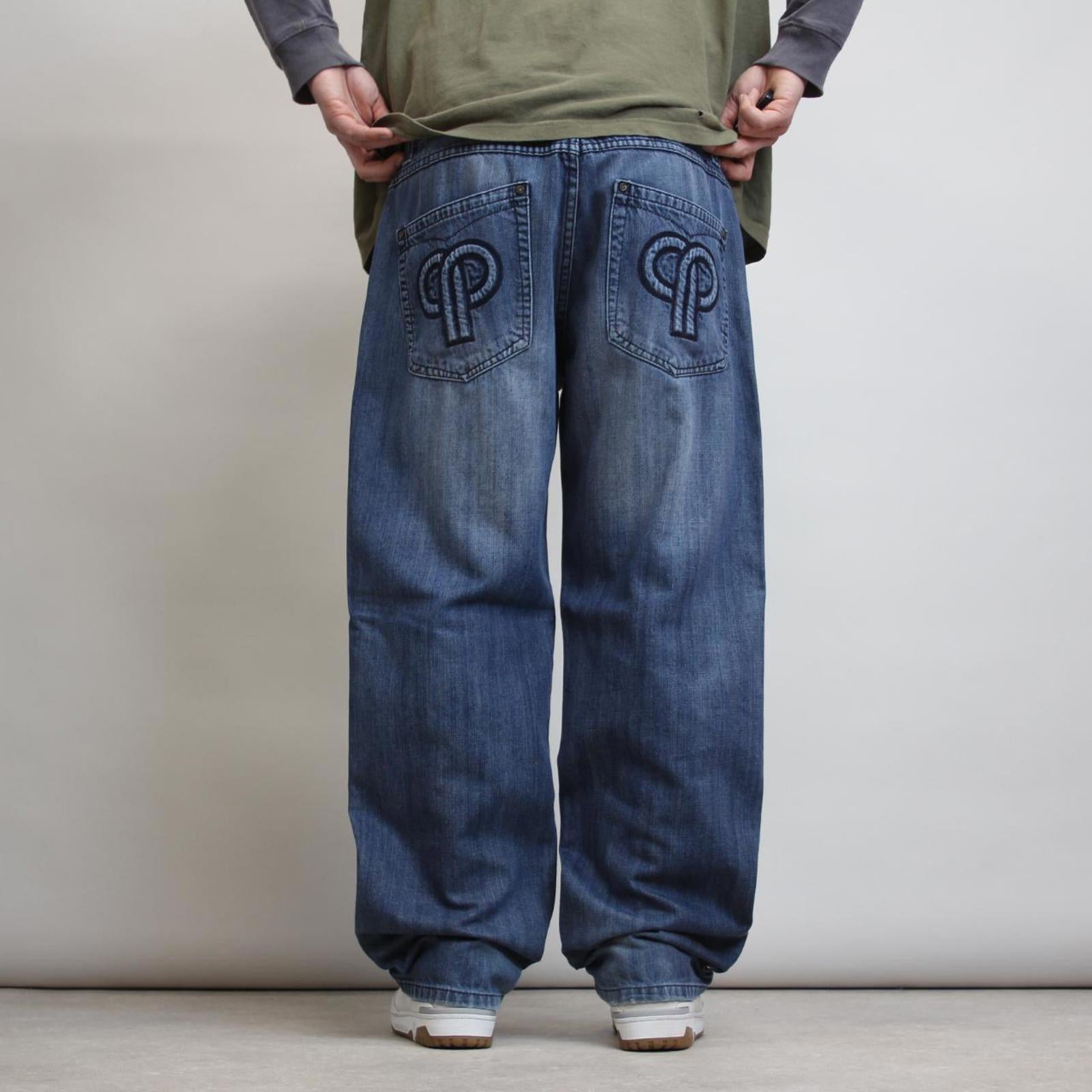 Baggy Pelle Pelle jeans W38 L34 blue wide leg denim Y2K jeans embroidered