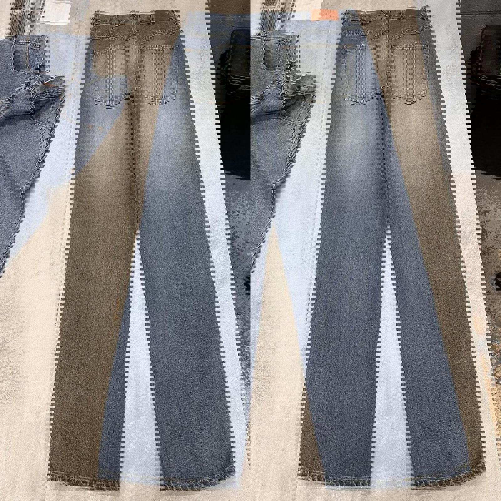 Good condition with denim fading/slight yellowing to the denim. Small mark on back of left leg.