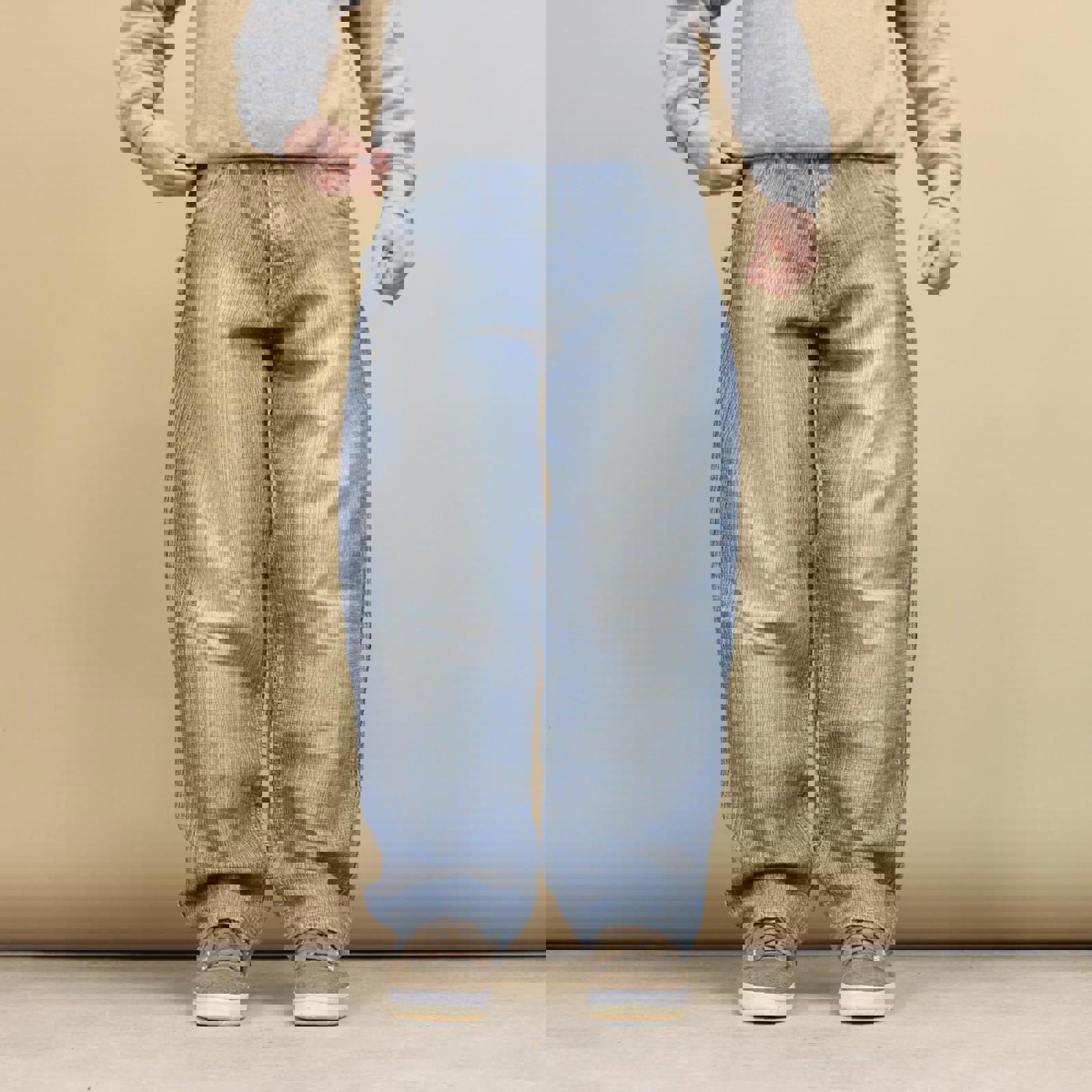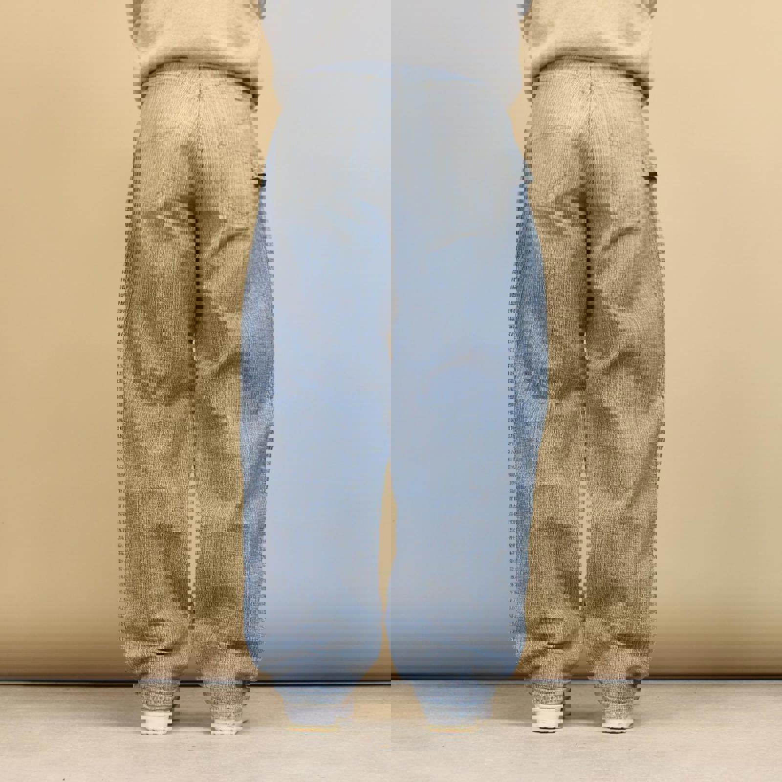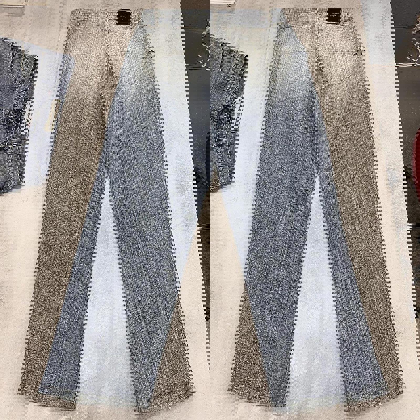 Good condition with slight yellowing to the denim. Distressing at end of right leg
