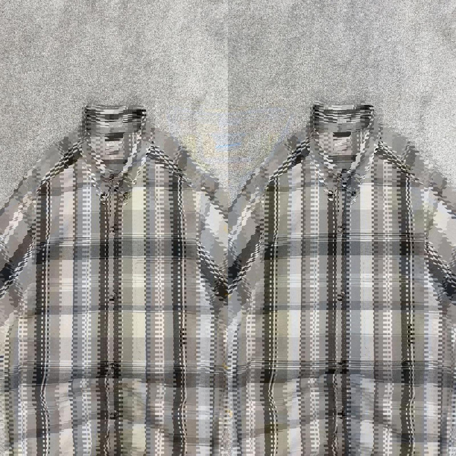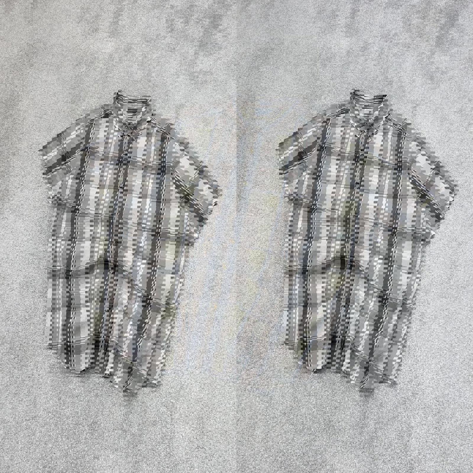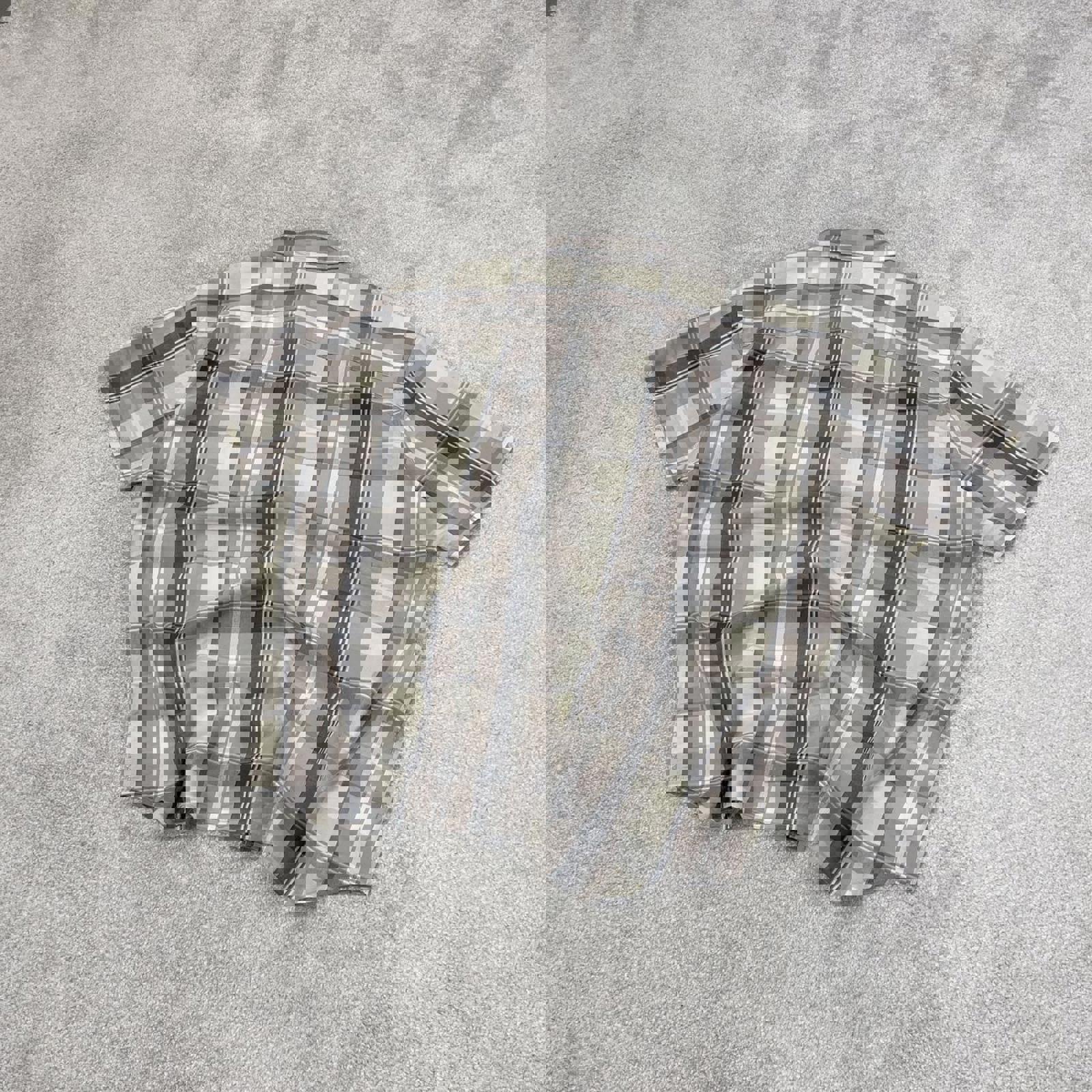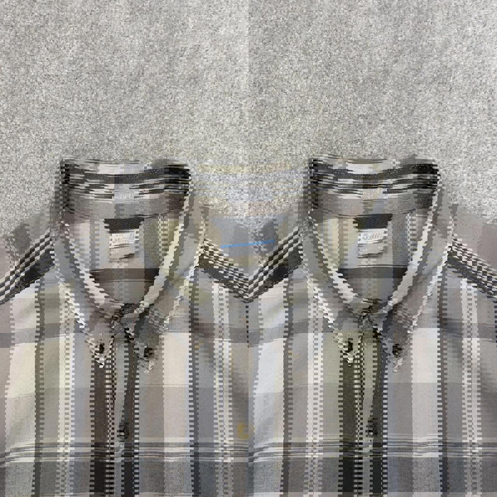 Beige checkered Columbia technical shirt XL men's short sleeve button up autumn y2k style