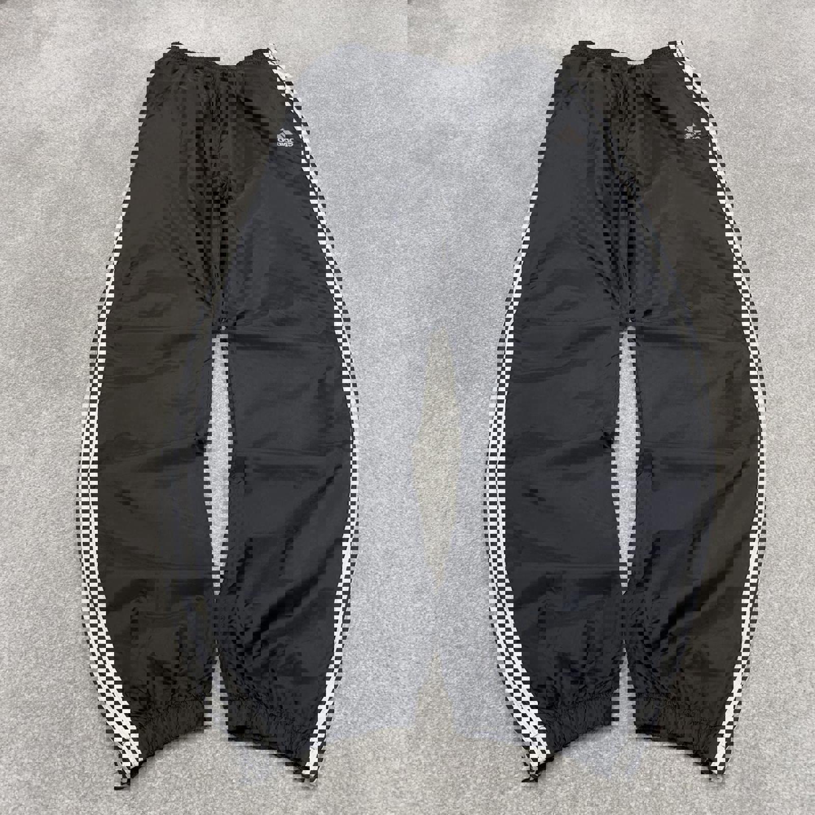 Black Adidas tracksuit bottoms Large y2k style sportswear track pants side stripe design