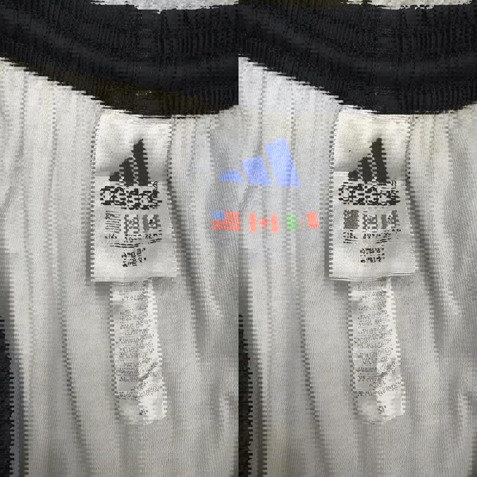 Good condition with some light marks and slight discolouring on the side stripes. Small burn hole and a bit of wear on left leg.