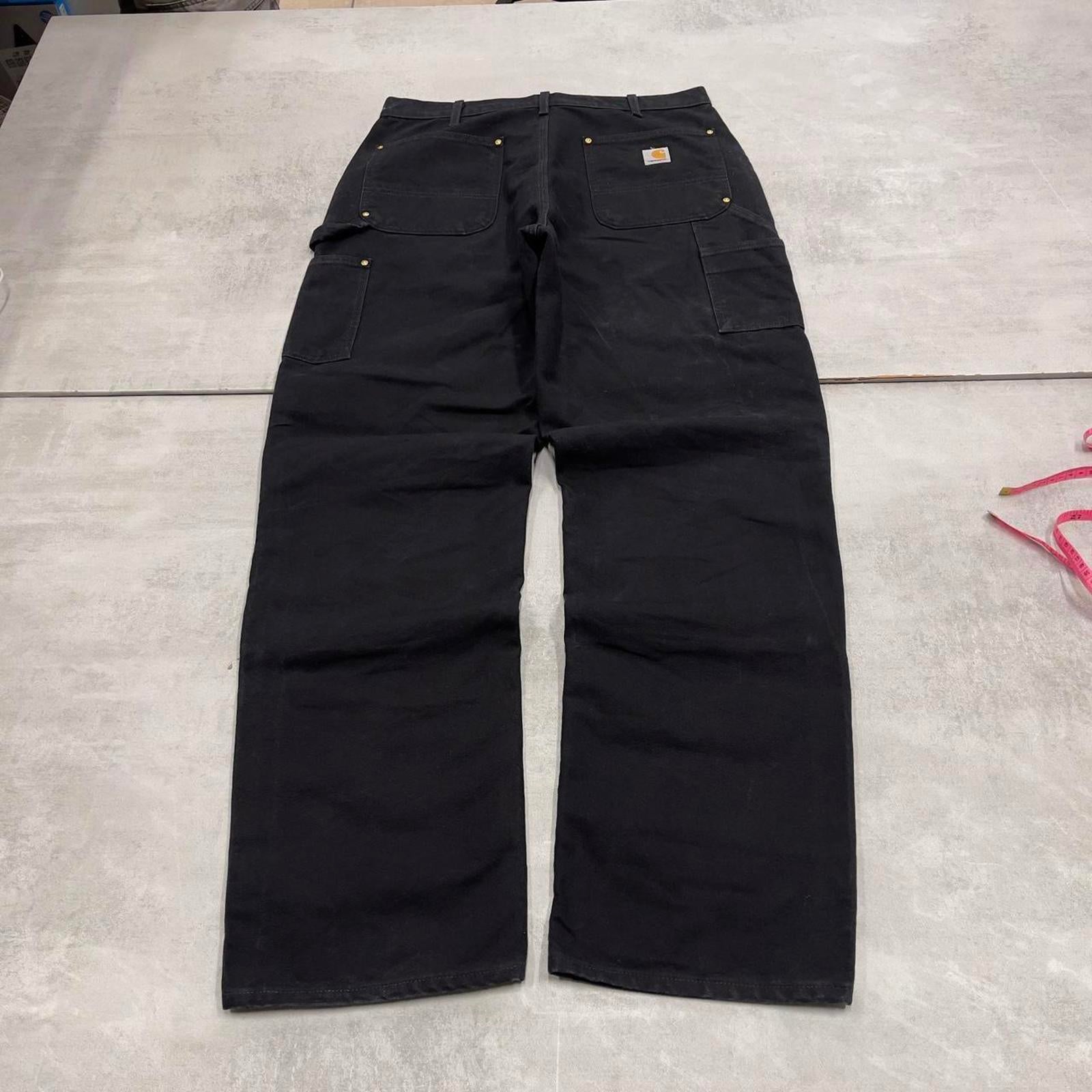 Black Carhartt double knee carpenter jeans W34L34 90s style thick canvas loose leg skater cargos