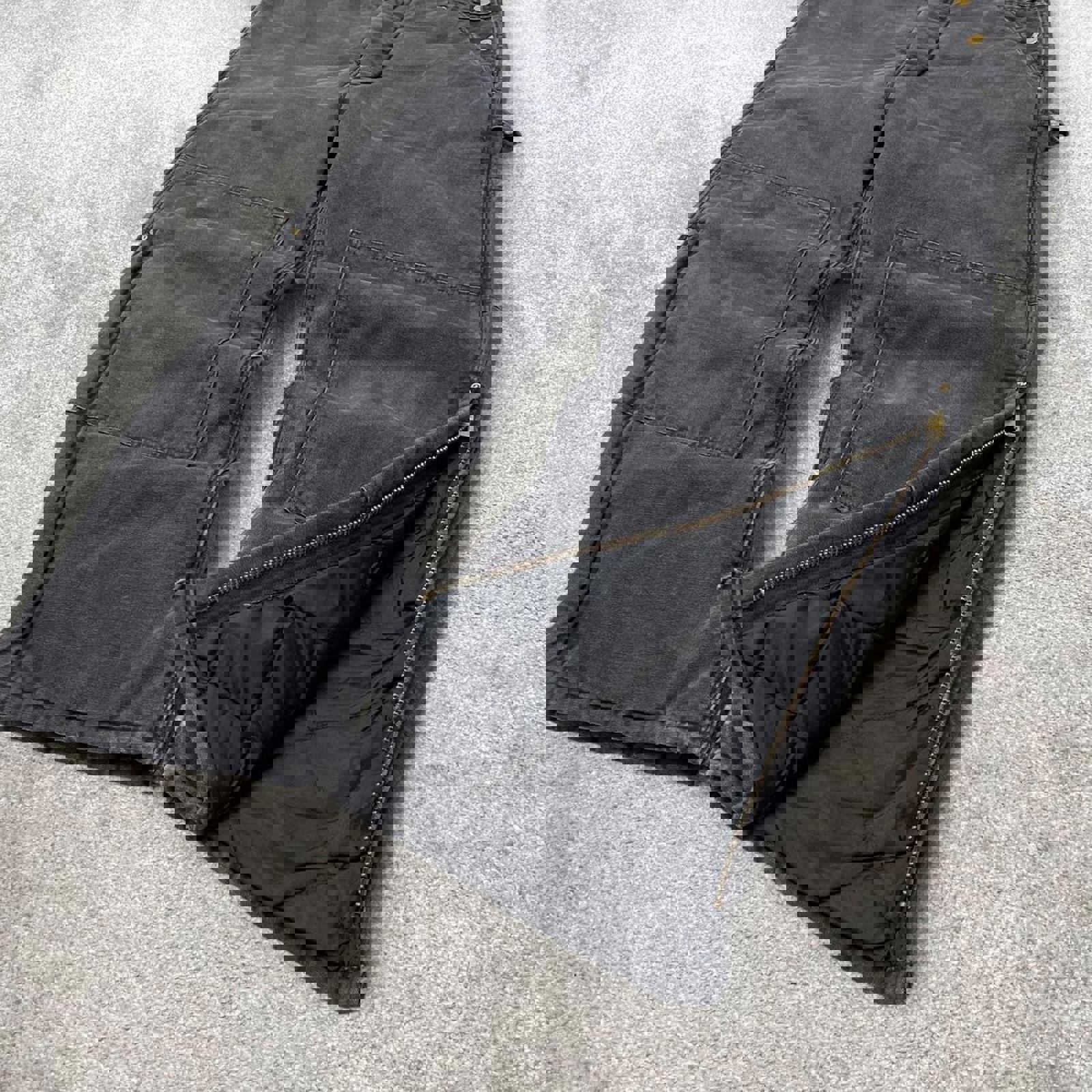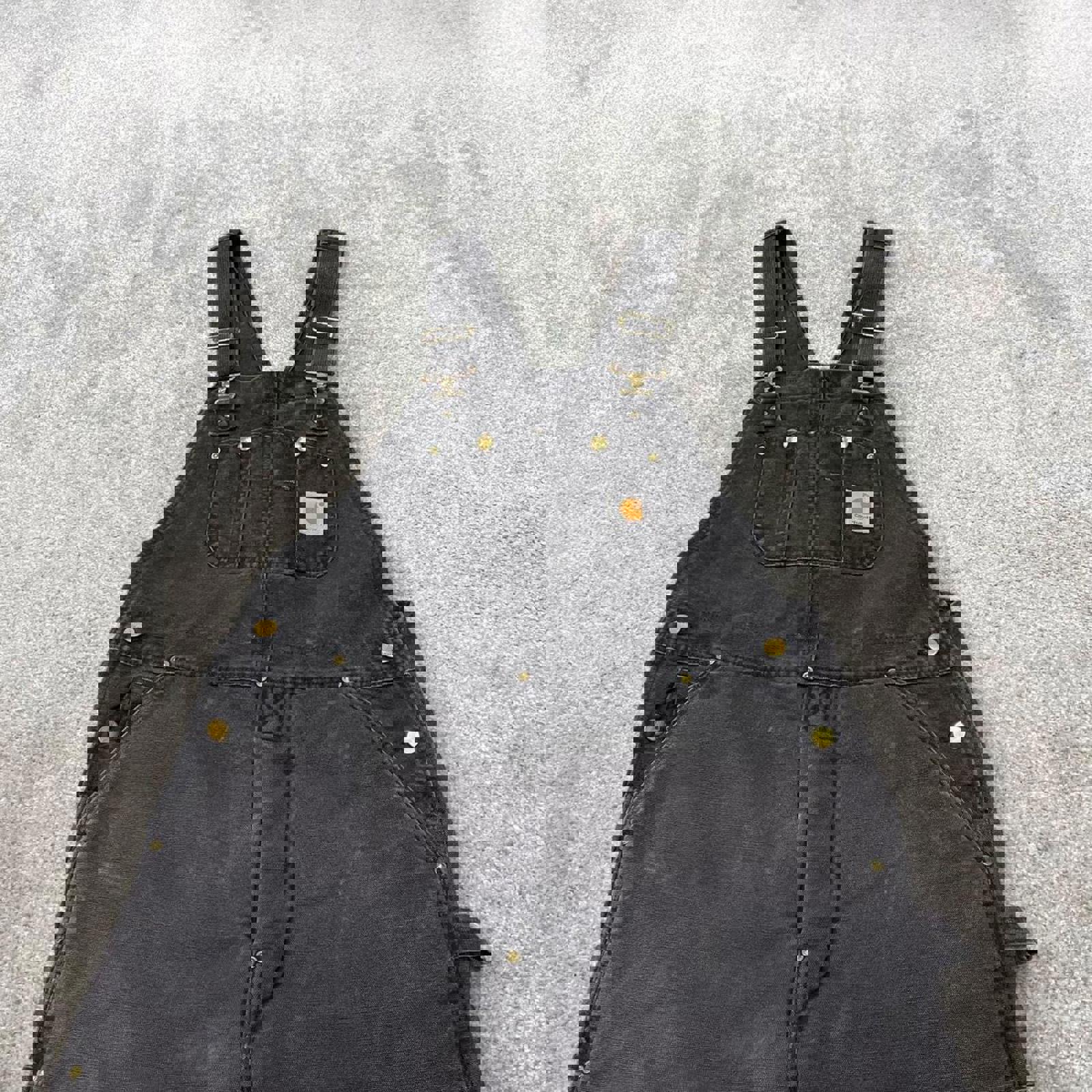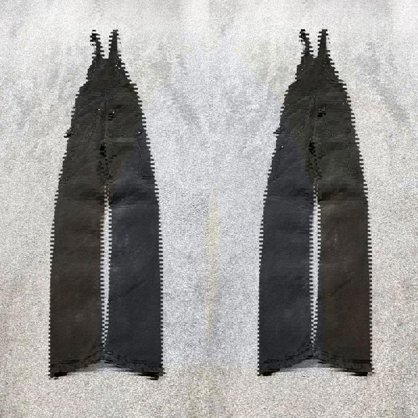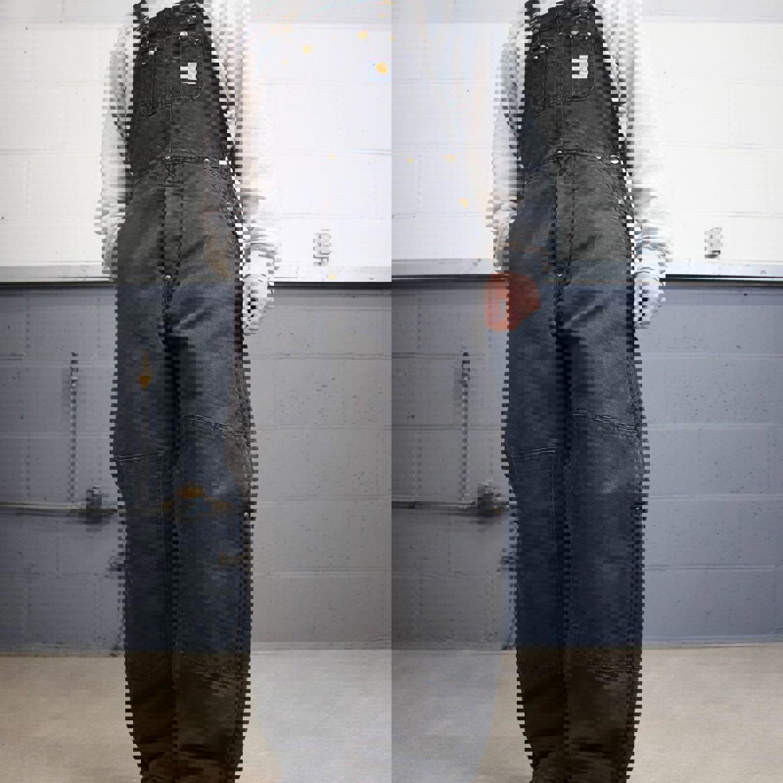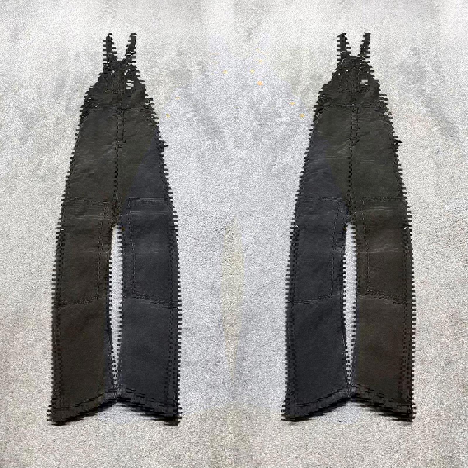 Black Carhartt dungarees W34L30 mens quilt lined canvas overalls utility worker