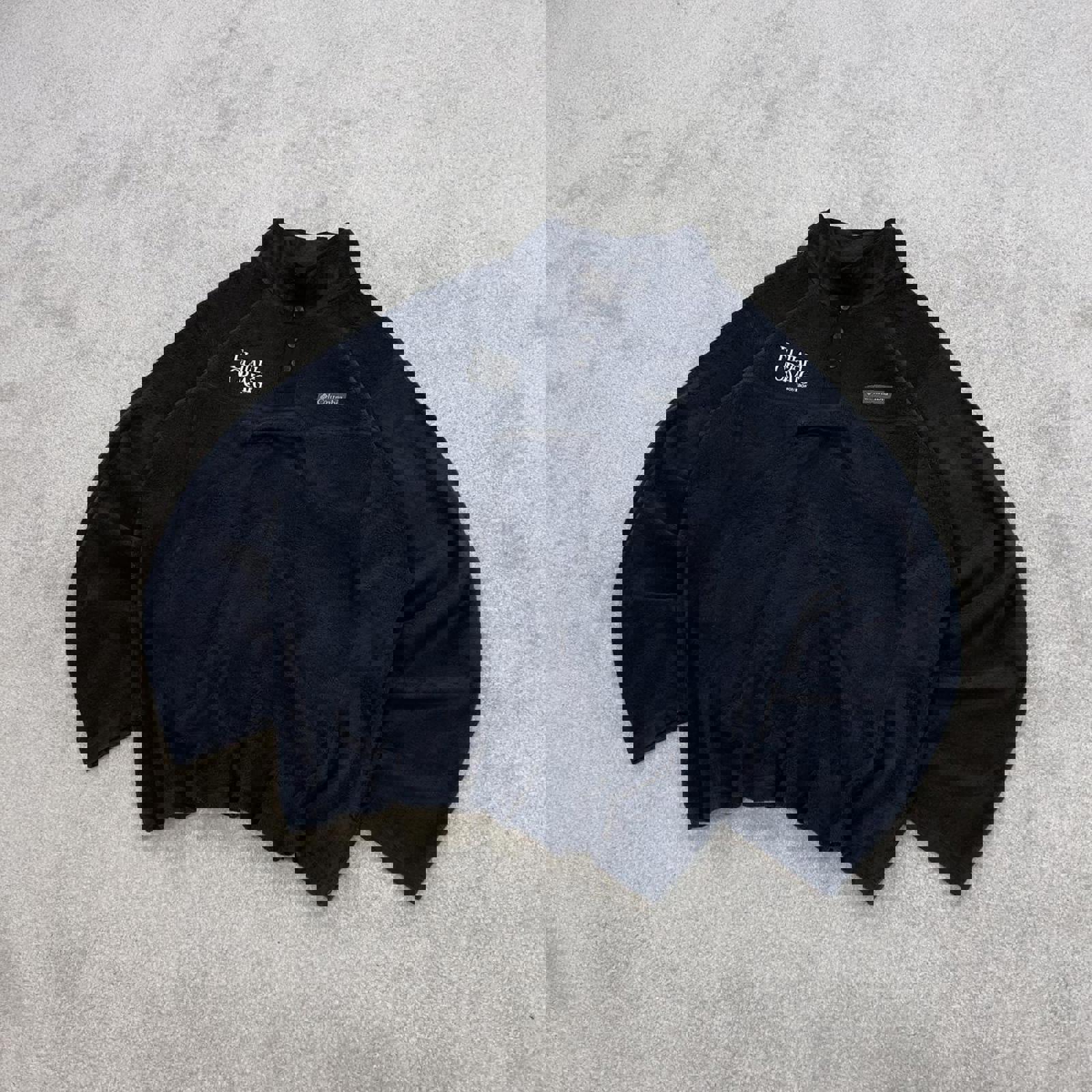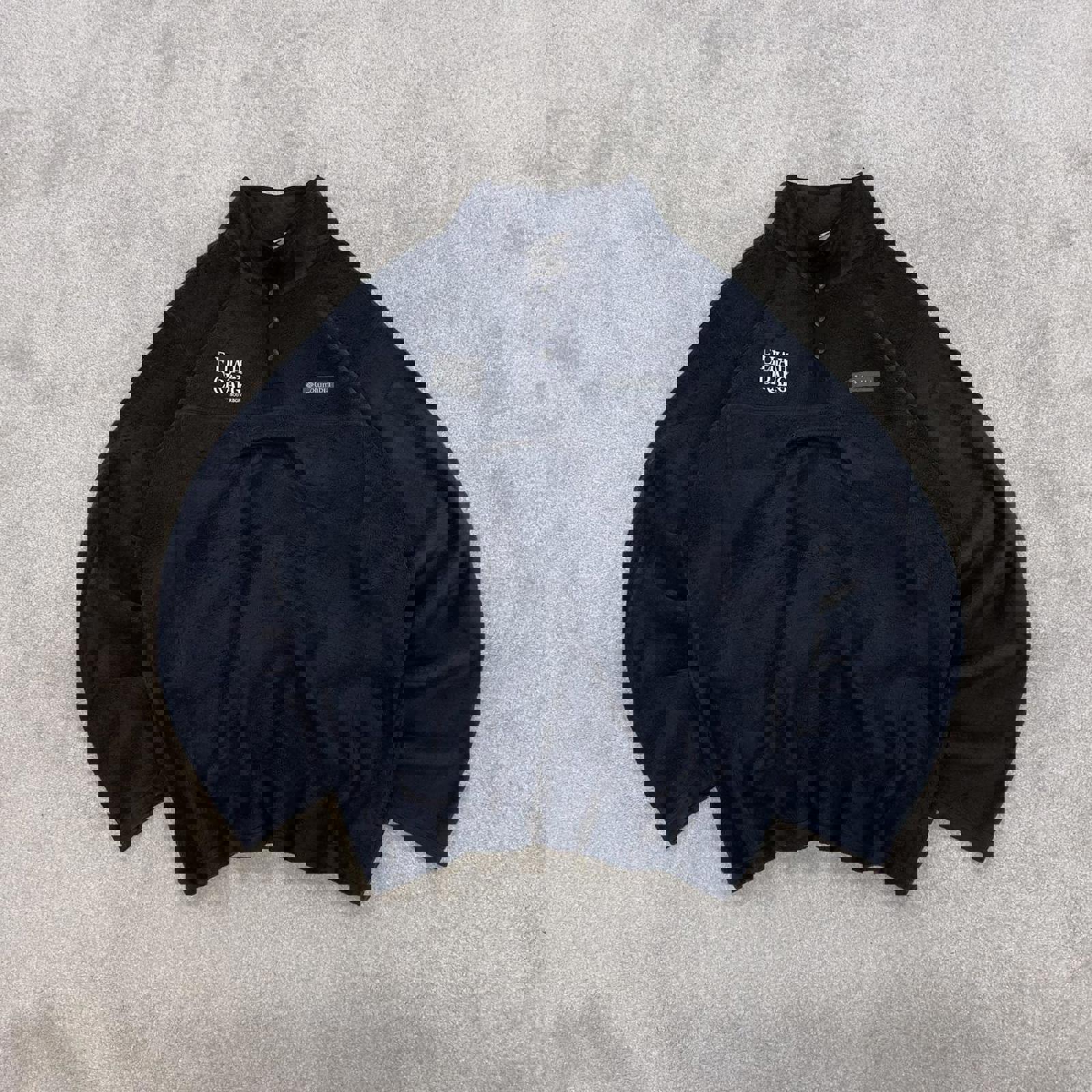 Black fleece, zip up, embroidered logo, technical winter, outdoor wear, grey accents, athletic style, cozy layering, fall fashion