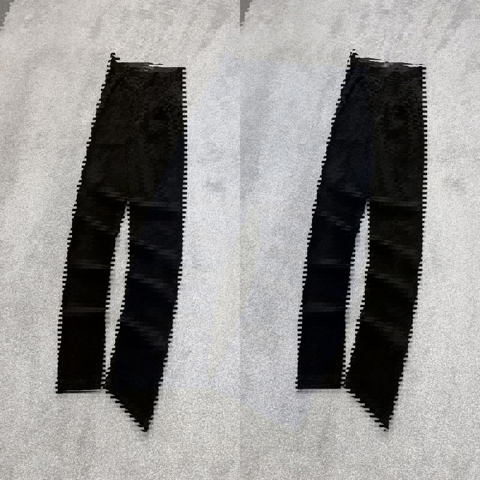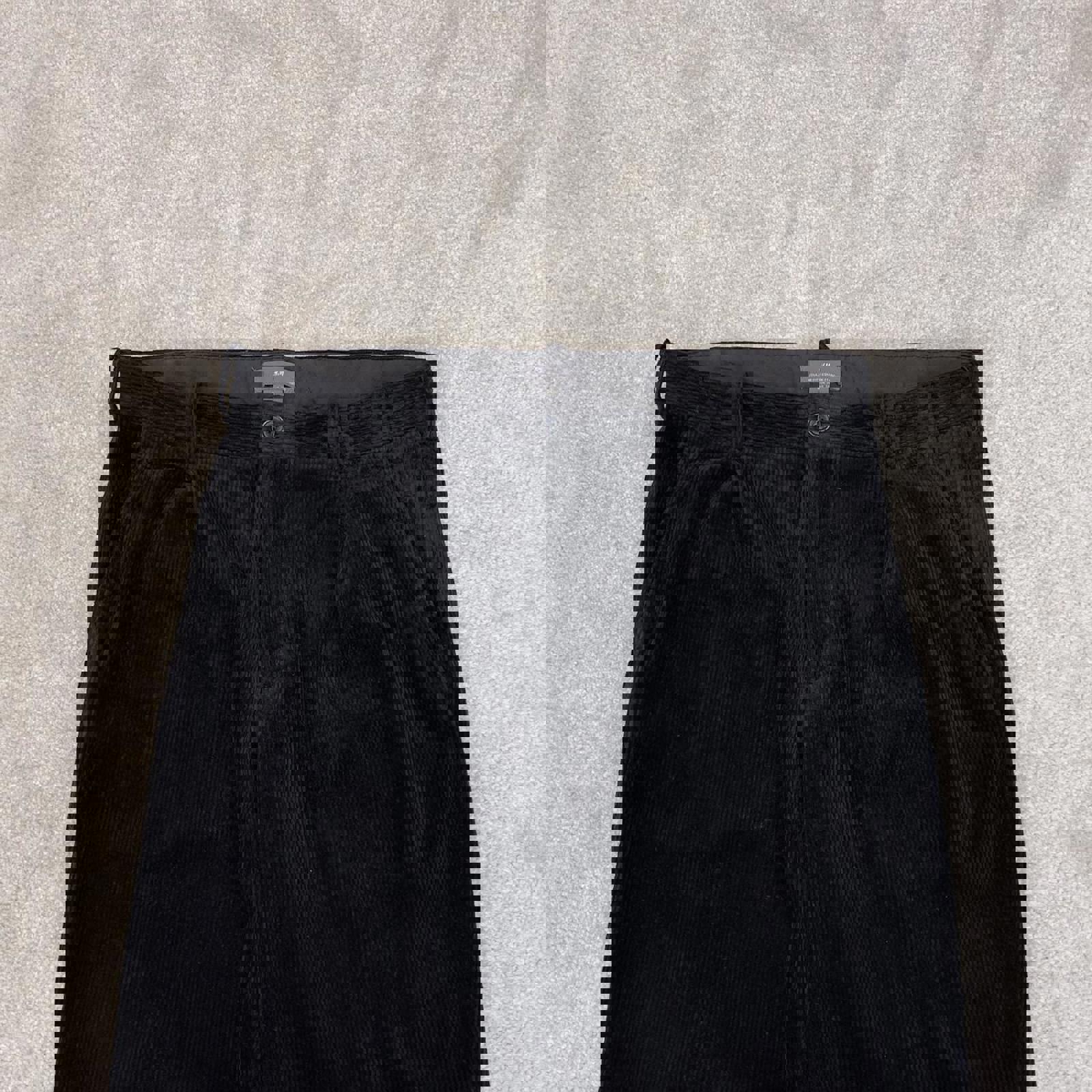 Black H&M wide wale corduroy trousers W32L30 loose pleated jumbo cord pants 90s skate style