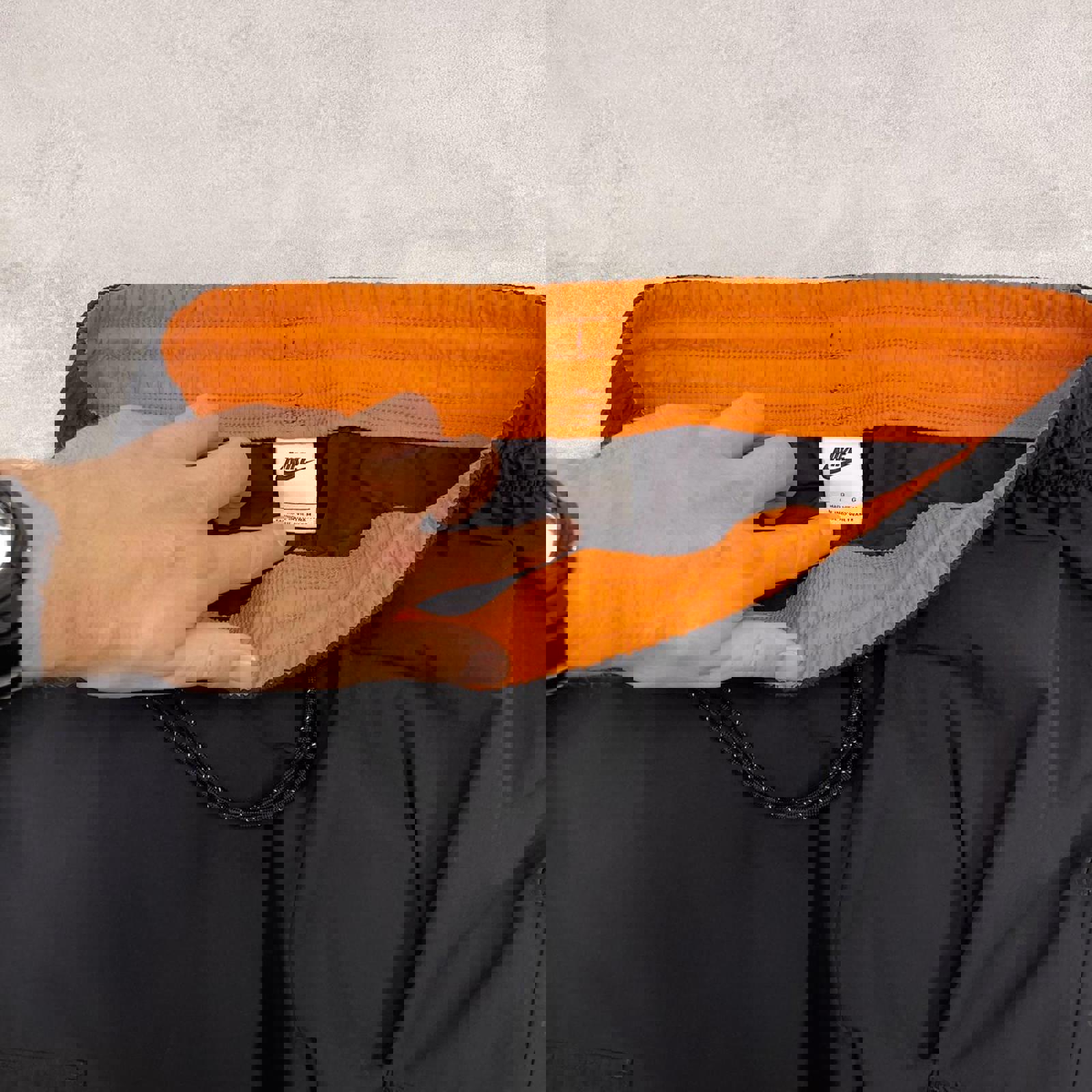 Black Nike cargo track pants with drawstring waist, pockets and patch logo