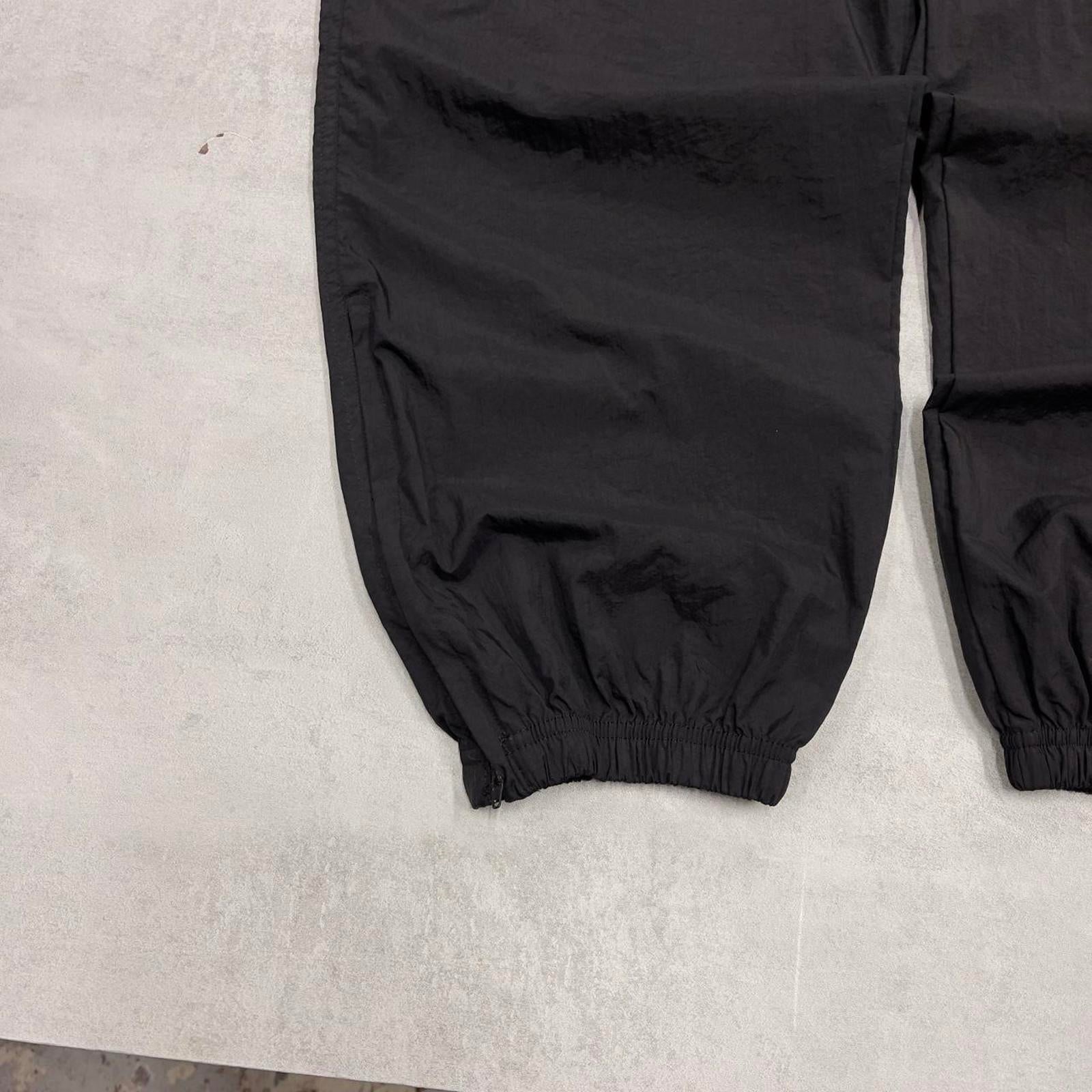 Black Reebok trackies L Loose y2k shell suit sportswear tracksuit bottoms ankle zips cuffed legs