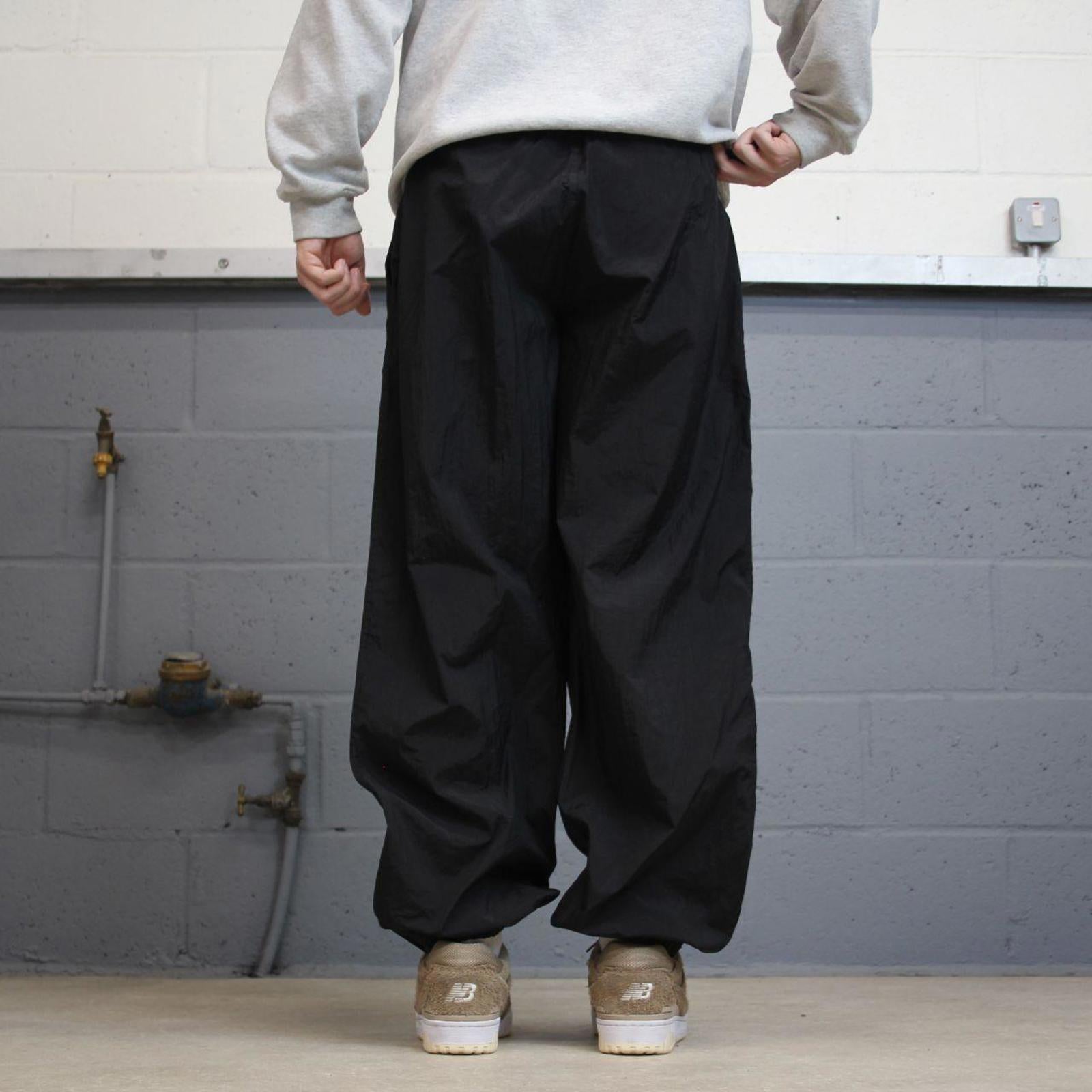 y2k shell suit, athletic joggers, cuffed trackpants, embroidered logo, oversized fit, black sportswear, zip ankle cuffs, relaxed fit, retro activewear, casual streetwear