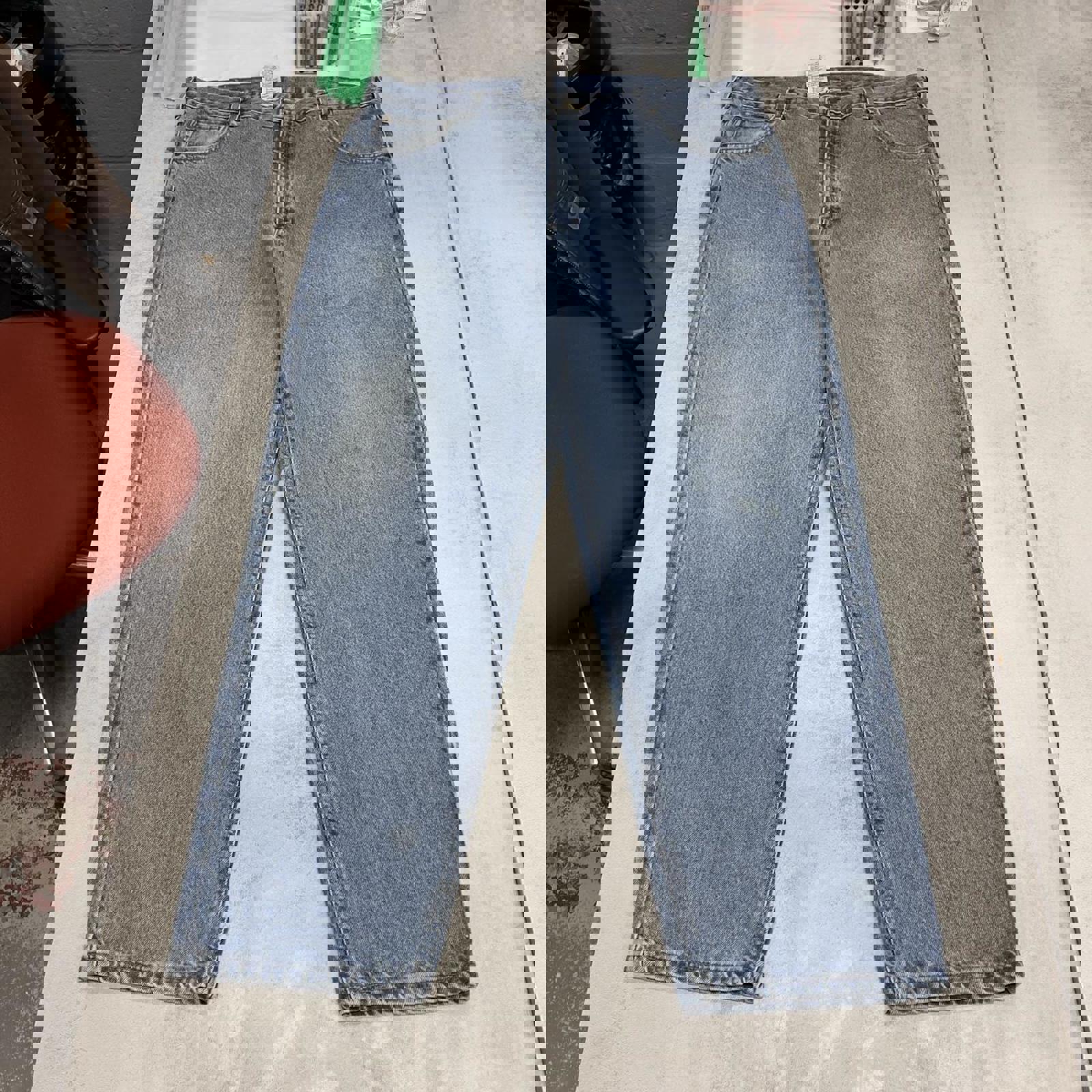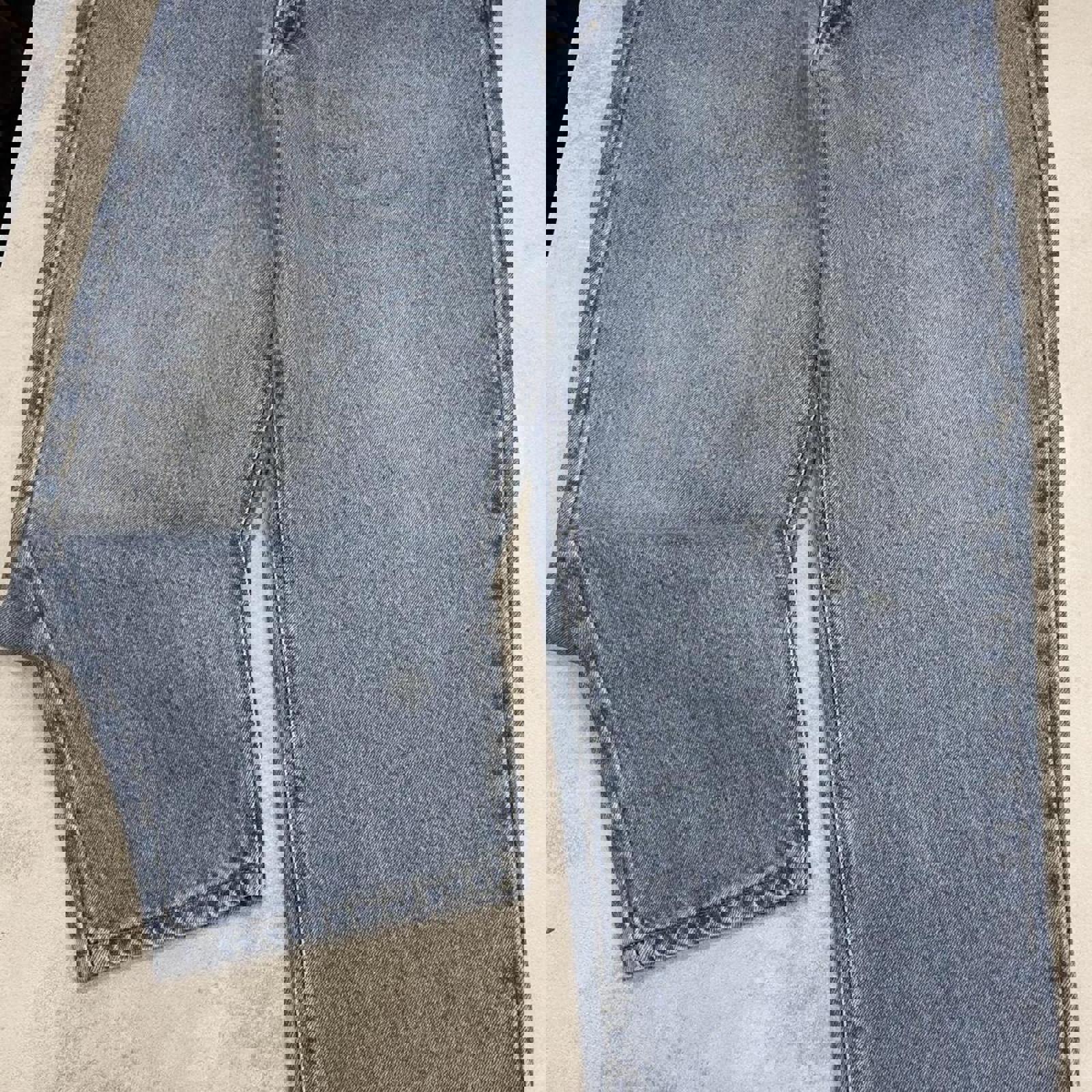 Lovely pair with some faded yellow marks and denim fading on the thighs / knees
