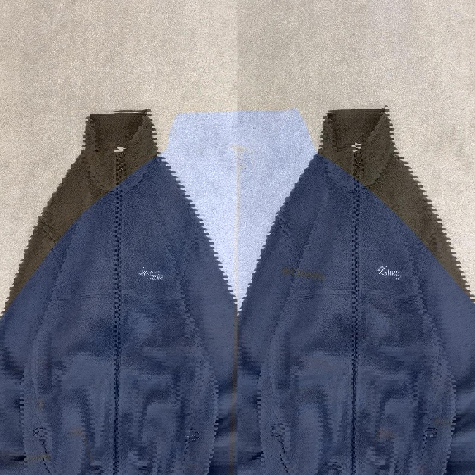 Blue Columbia Sportswear full zip technical fleece with embroidered logo and zip pockets