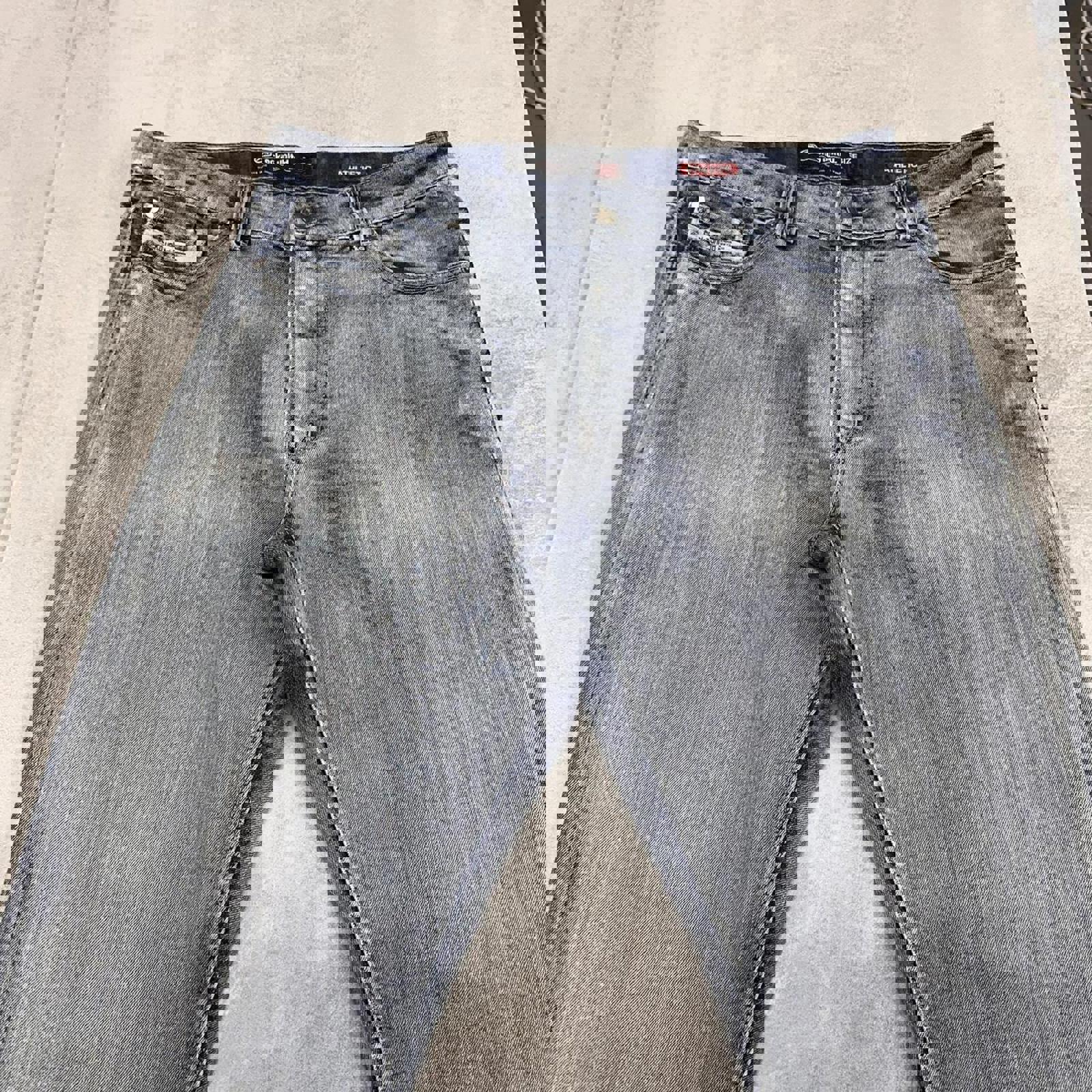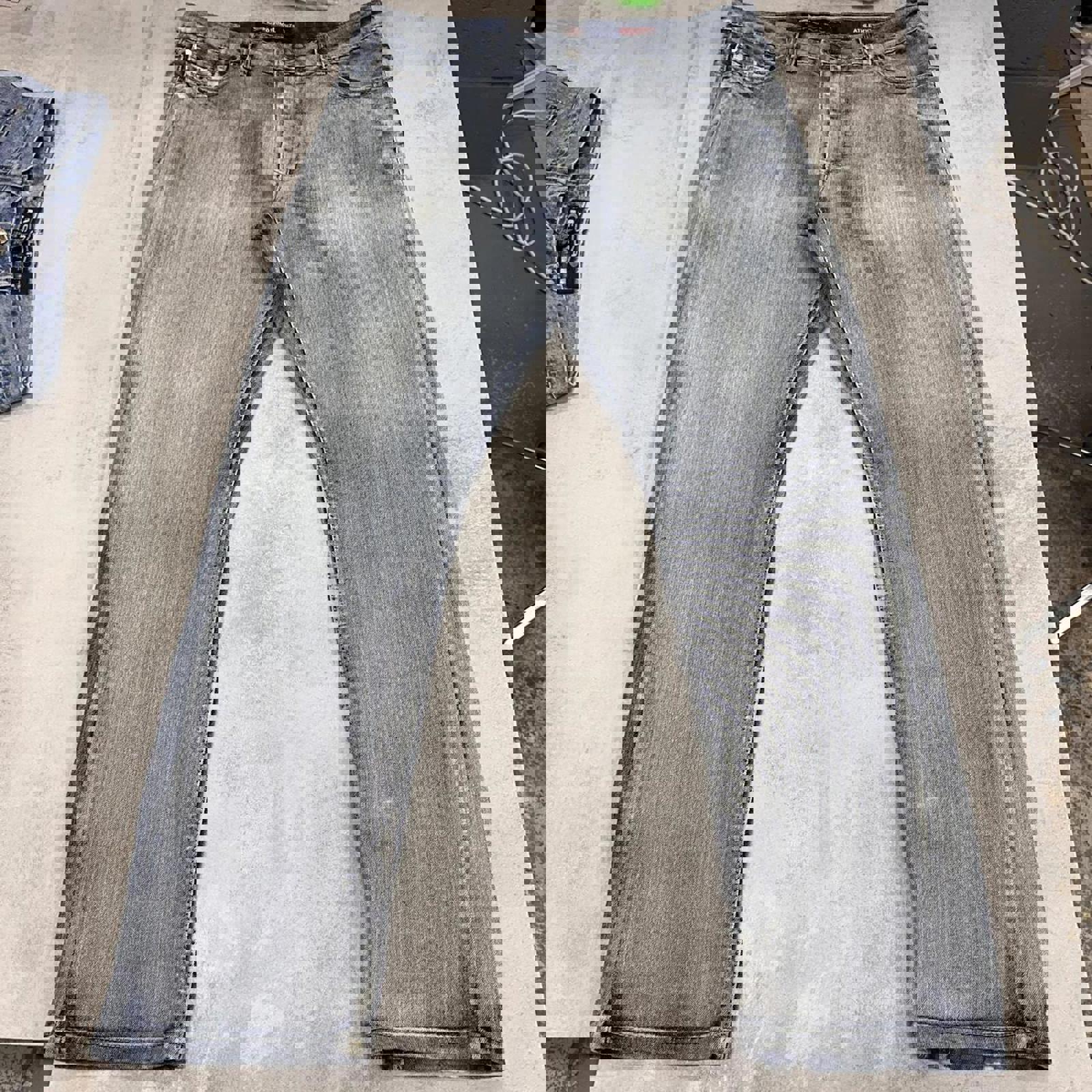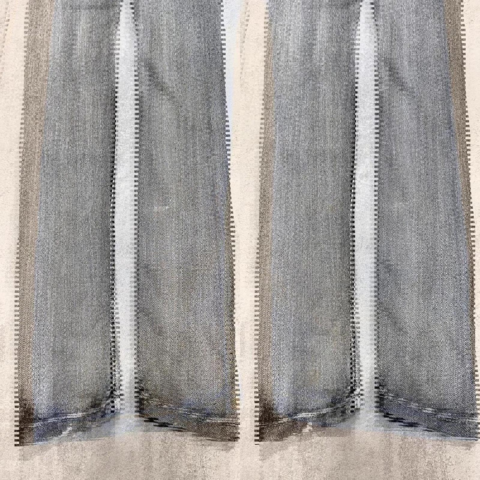 Cool pair with discolouring and marks present. Light distressing end of left leg.