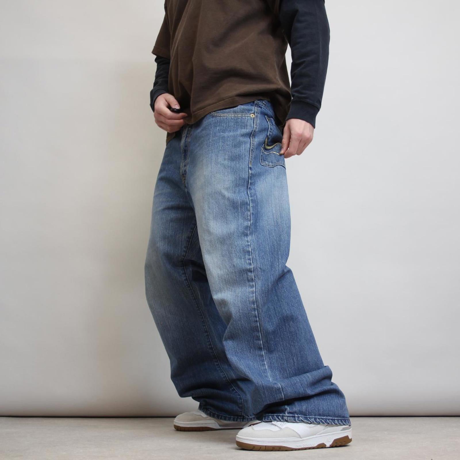 Blue Paco jeans W40L32 baggy denim skater jeans embroidered design