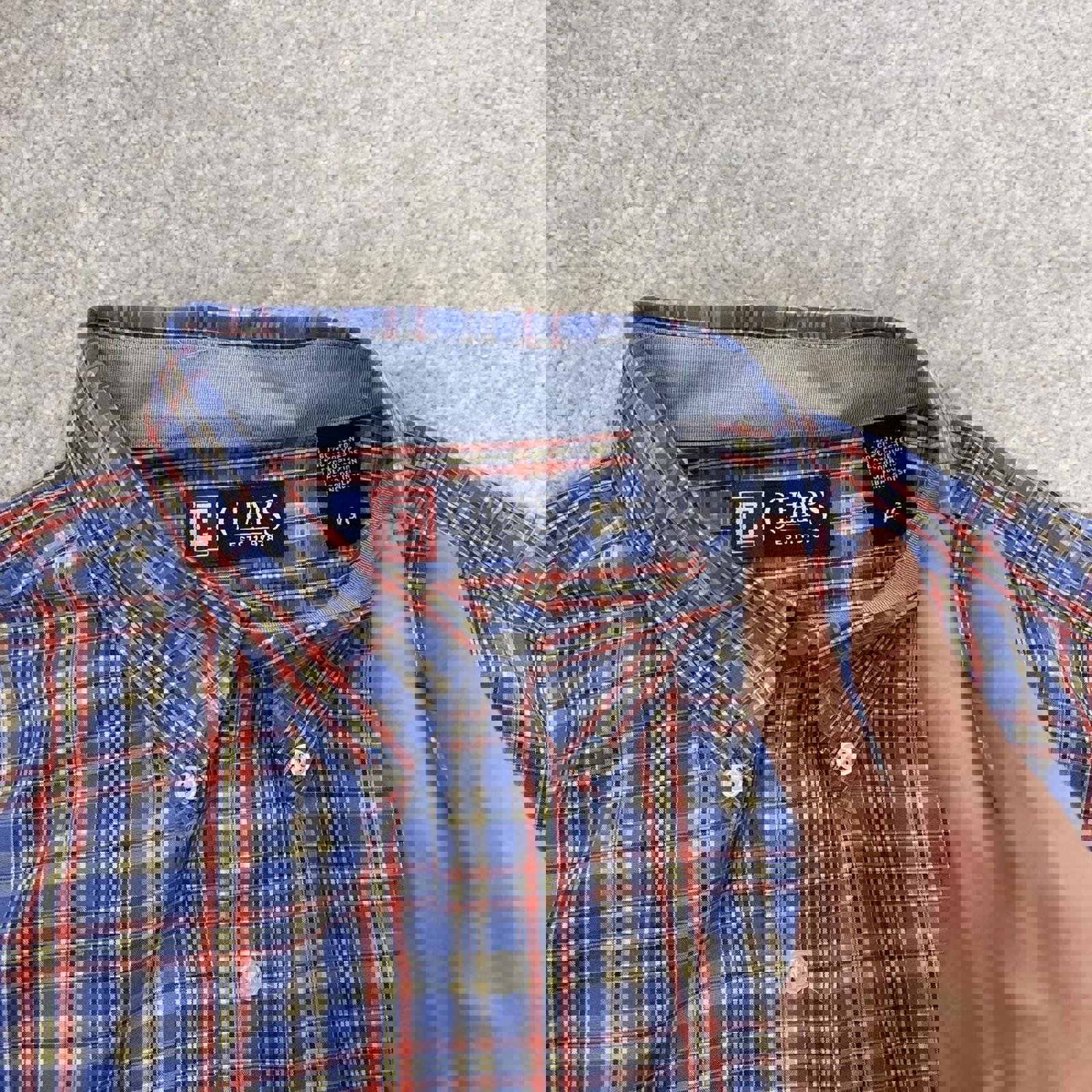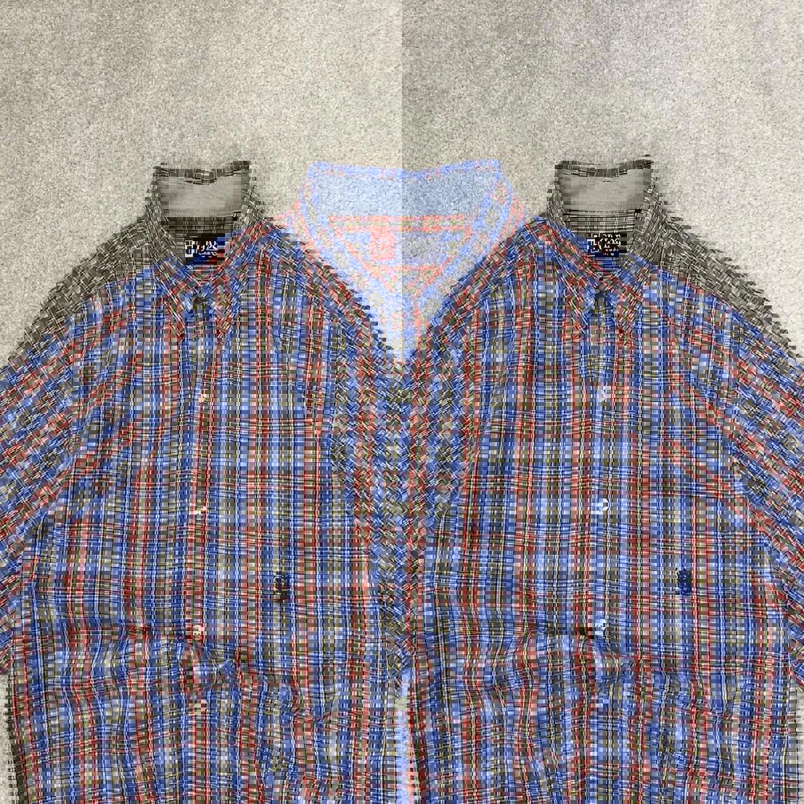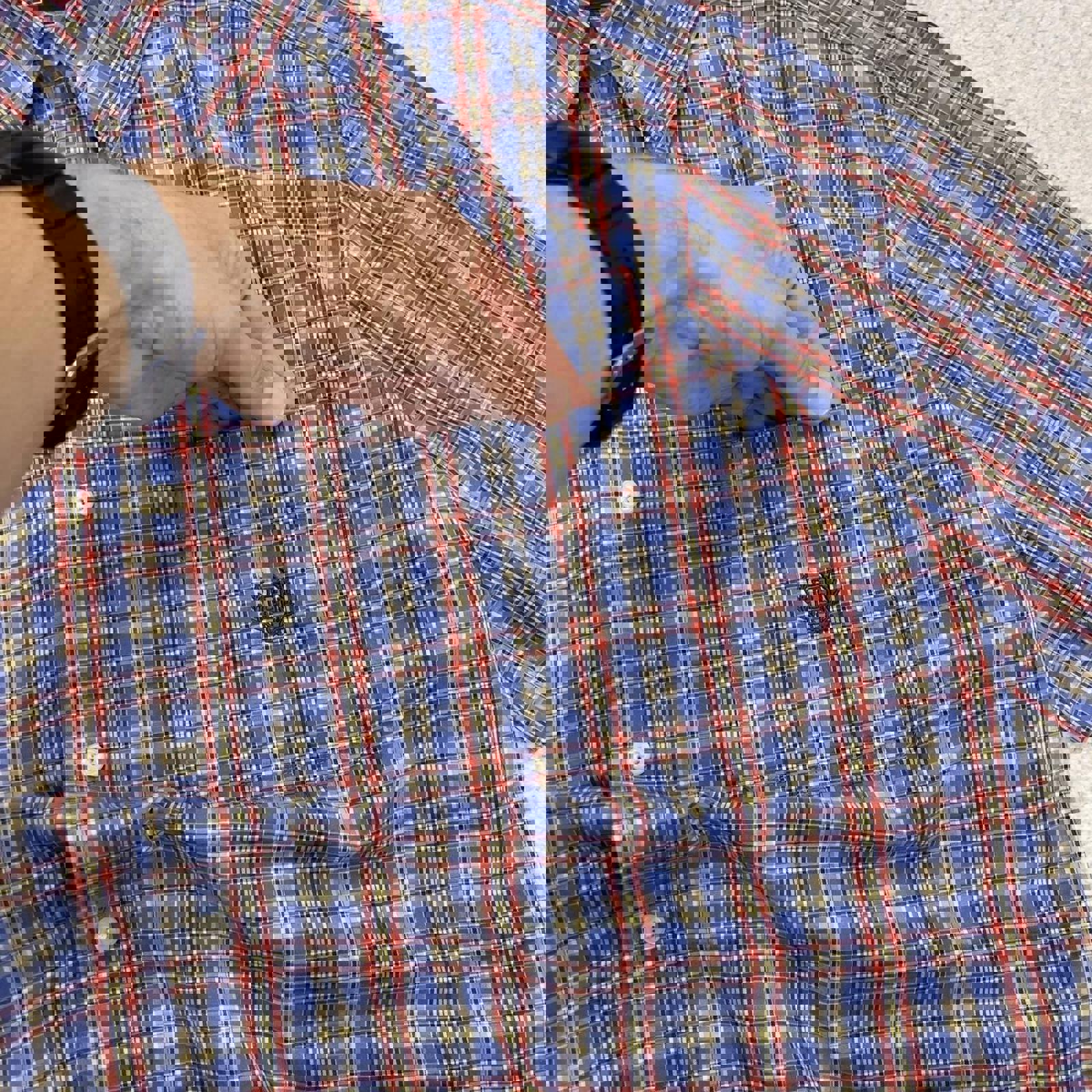 Blue Red checkered Chaps technical shirt L men's short sleeve button up autumn y2k style