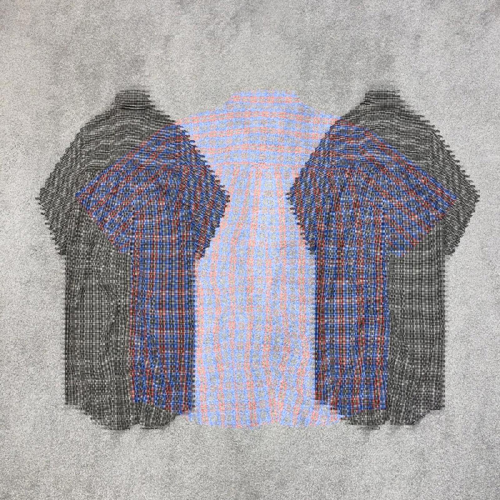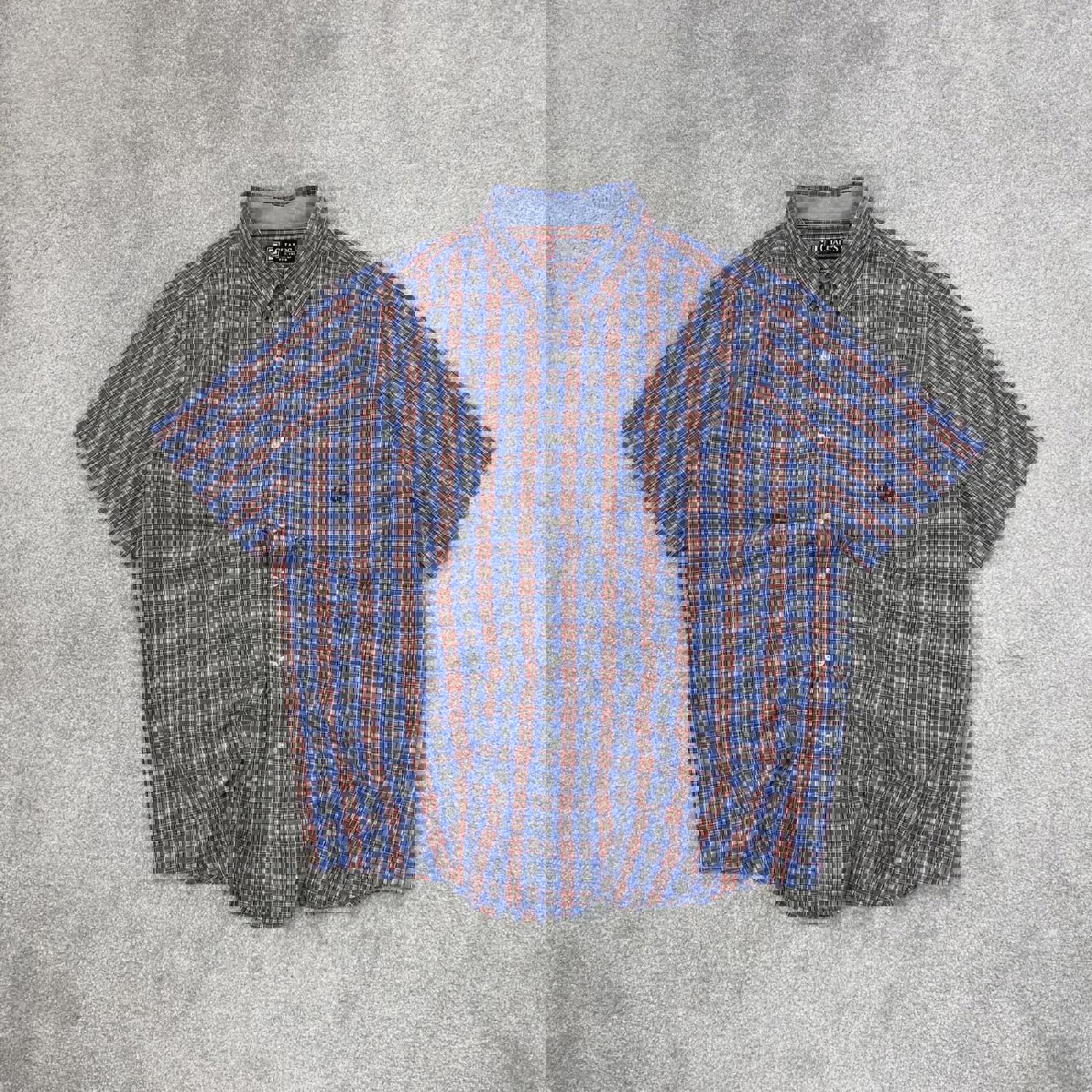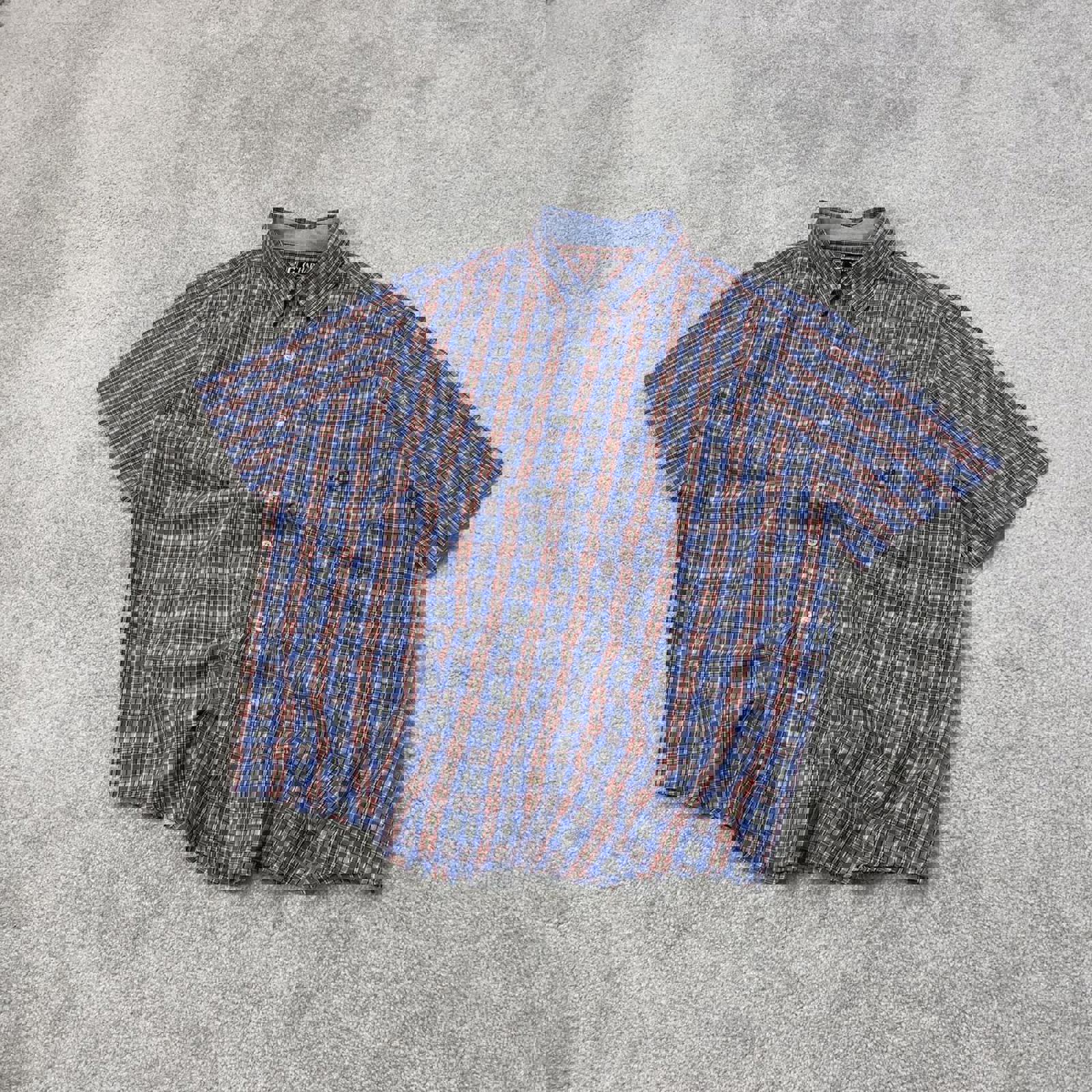 Blue Red checkered Chaps technical shirt L men's short sleeve button up autumn y2k style