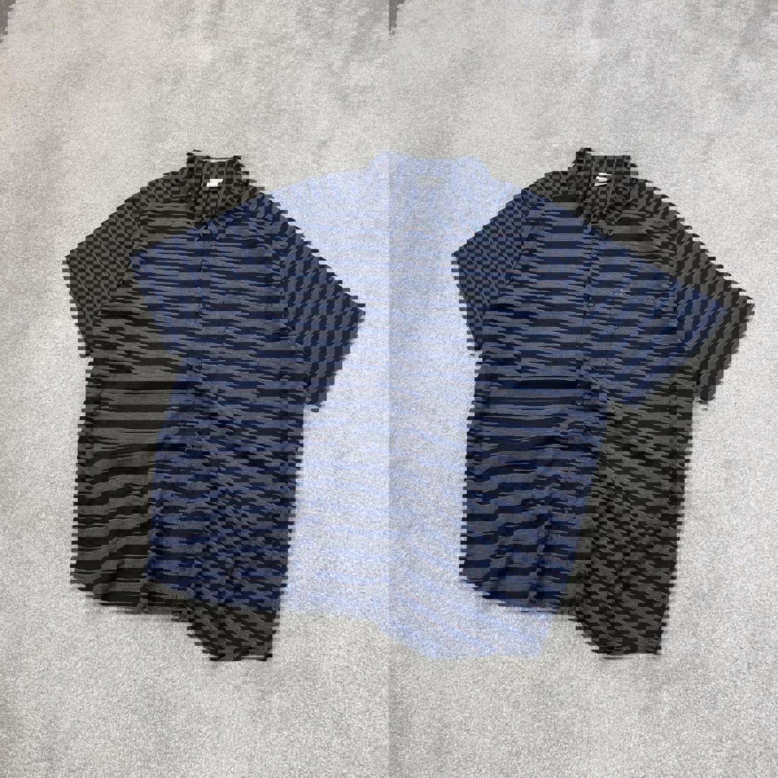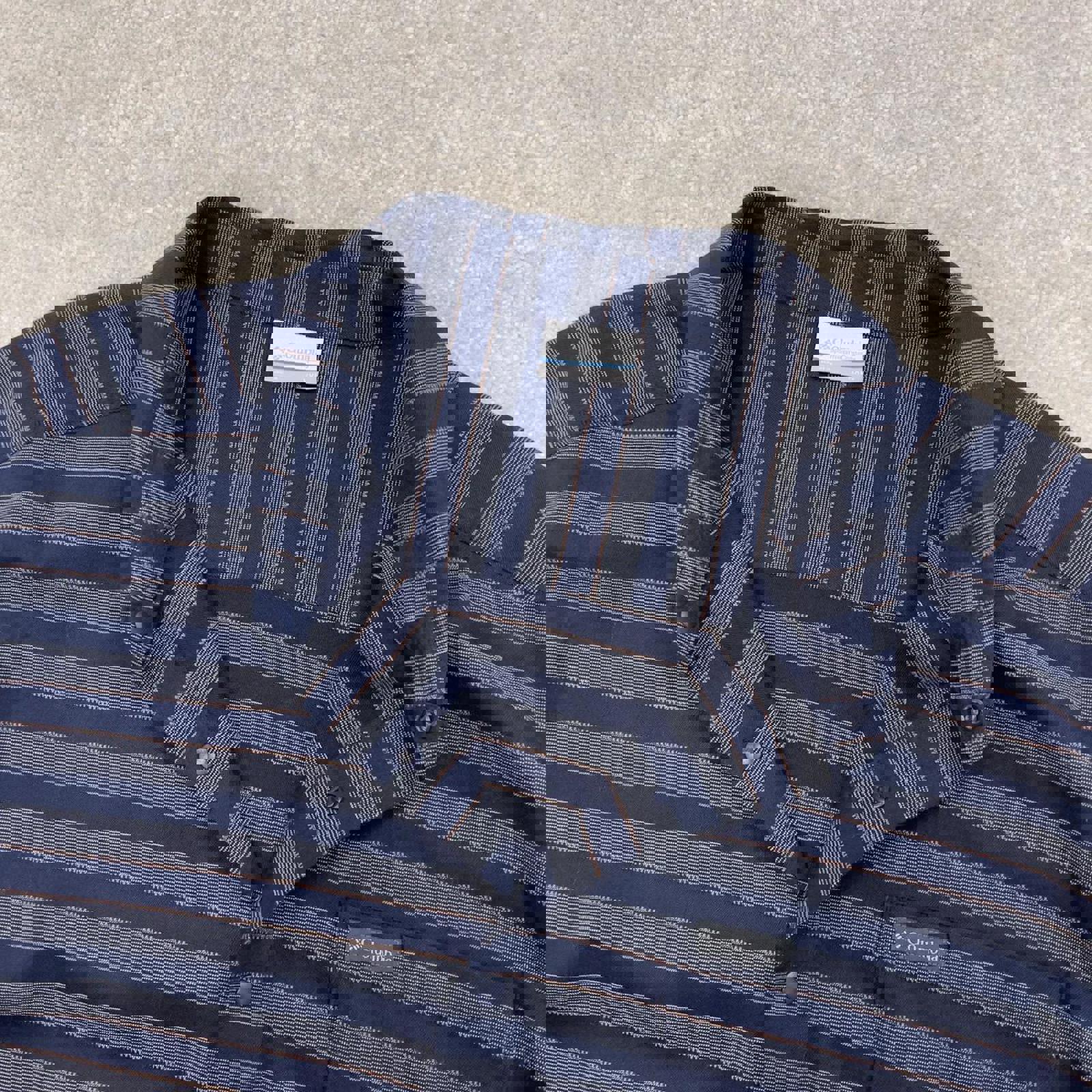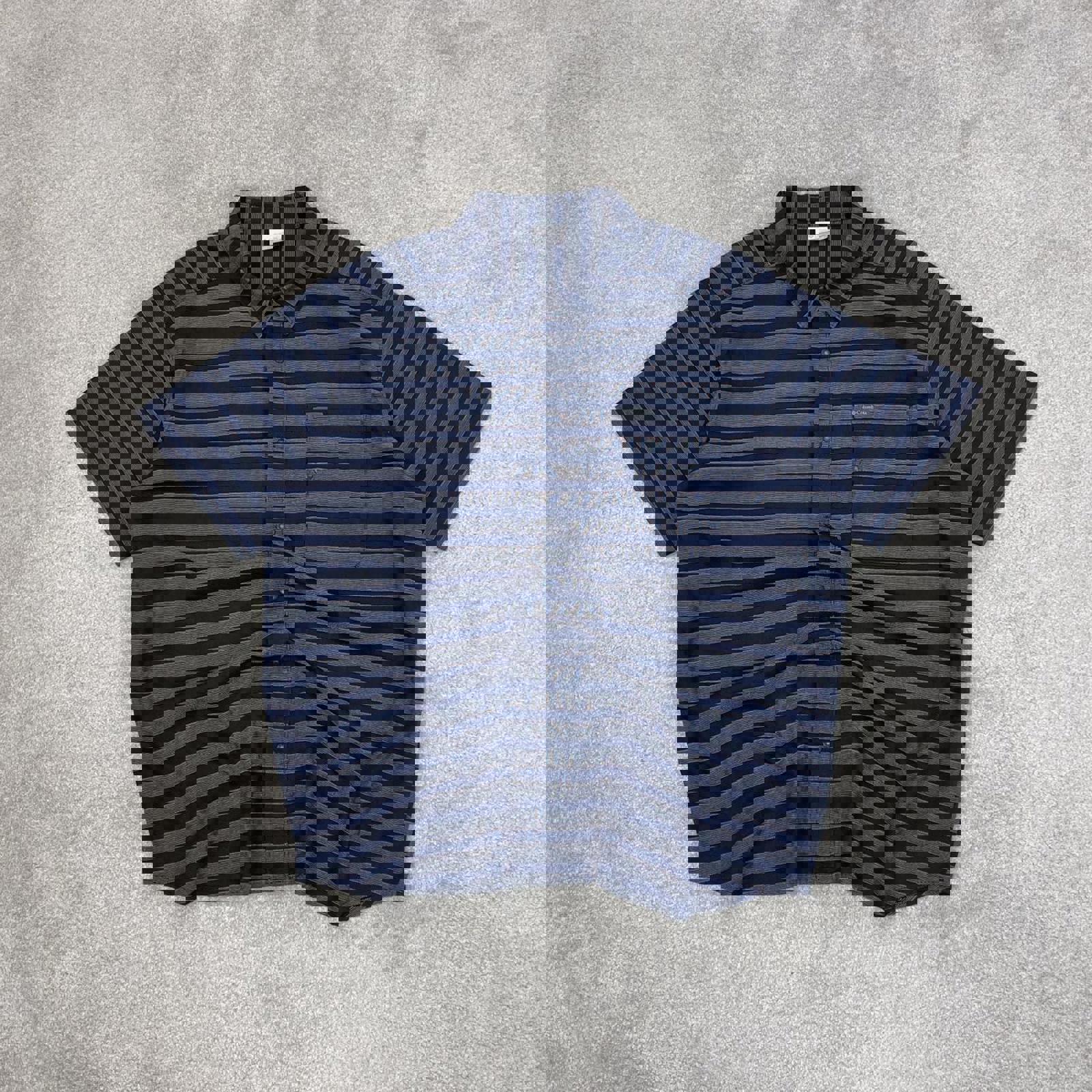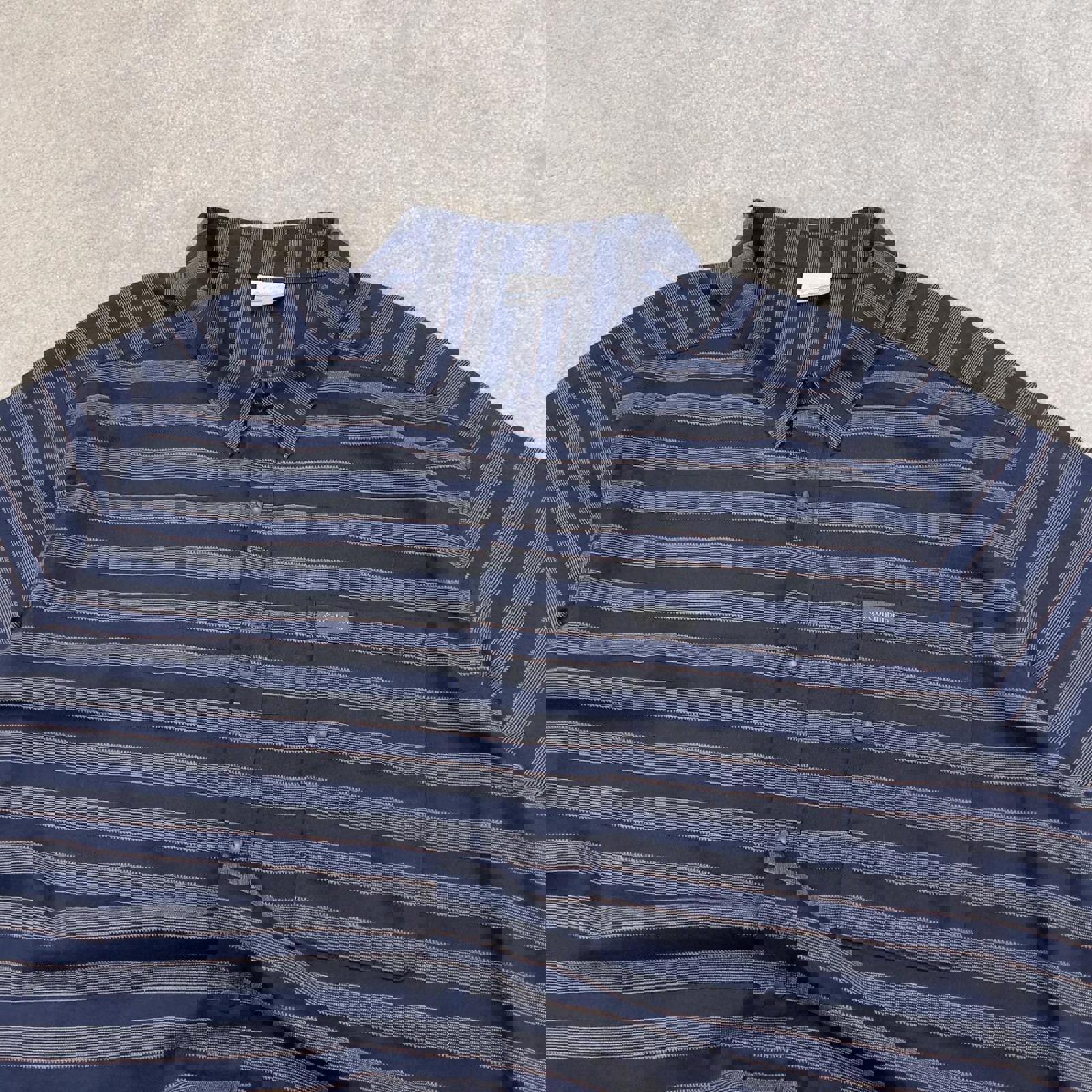 Blue striped Columbia technical shirt XXL men's short sleeve button up autumn y2k style