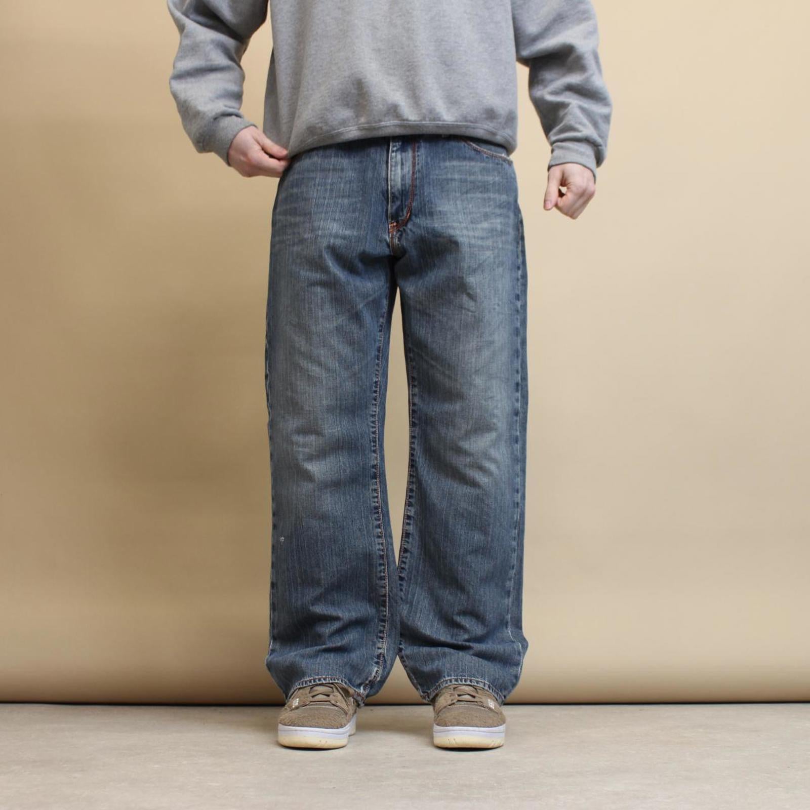 Blue X2 denim jeans W34L30 loose denim y2k skater jeans stitch design