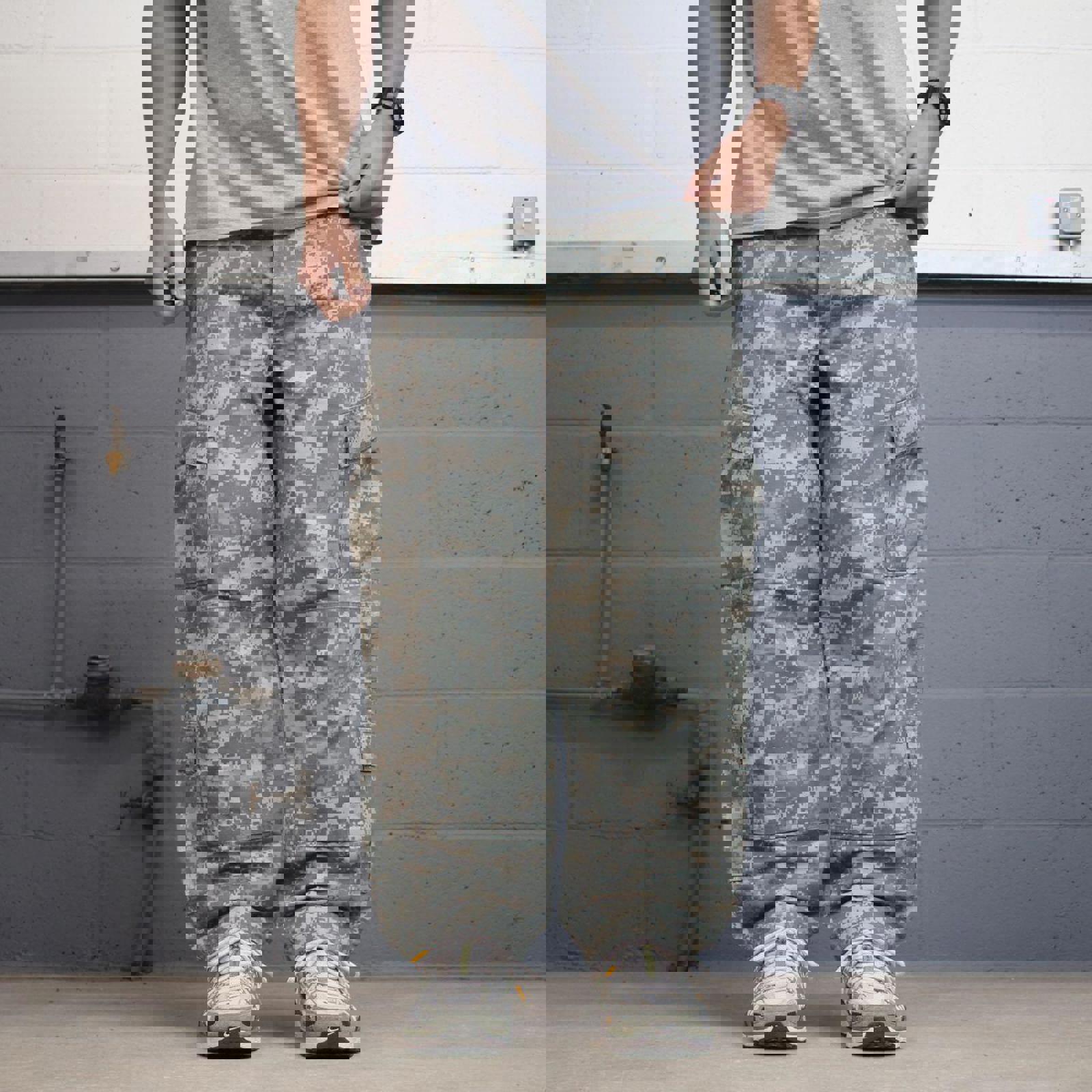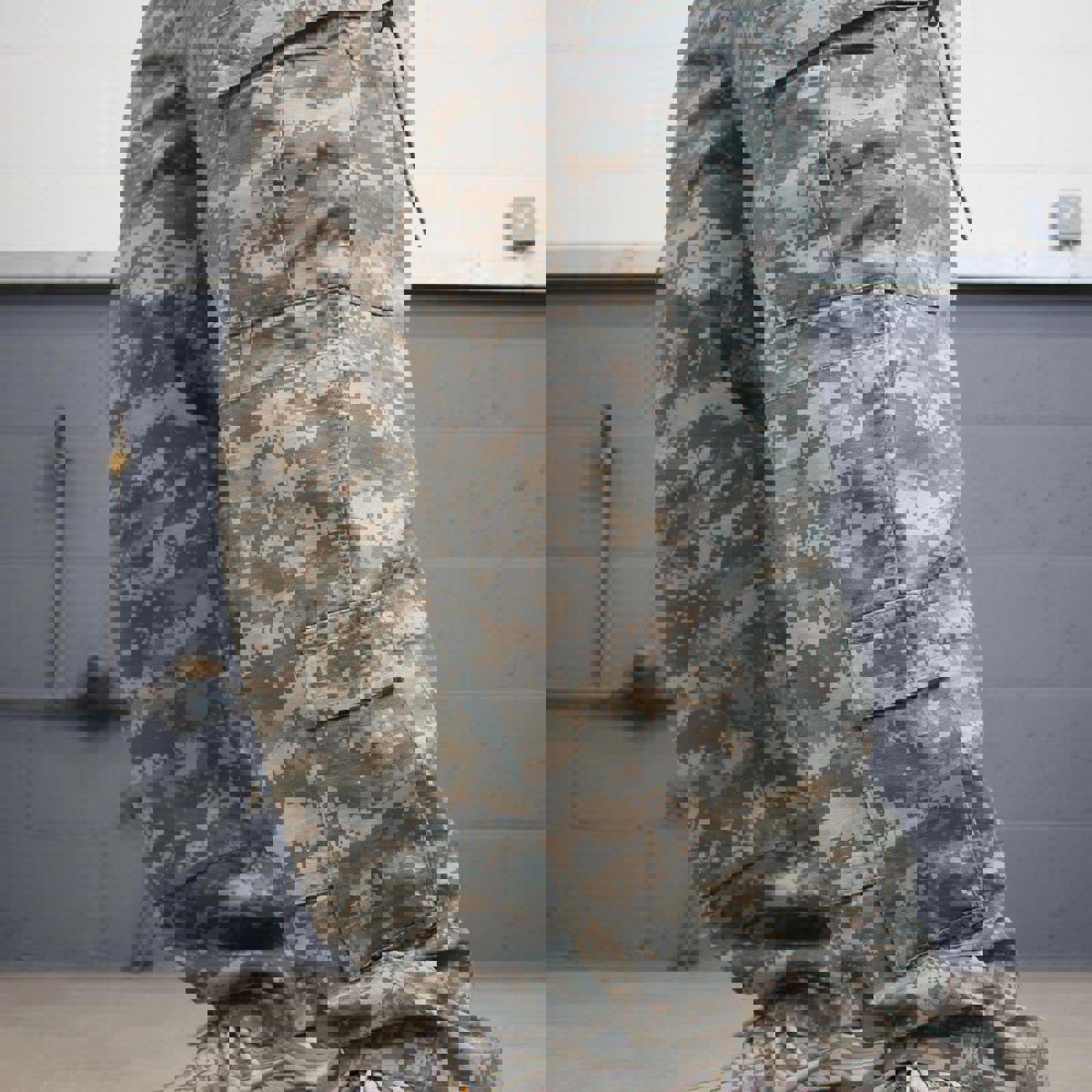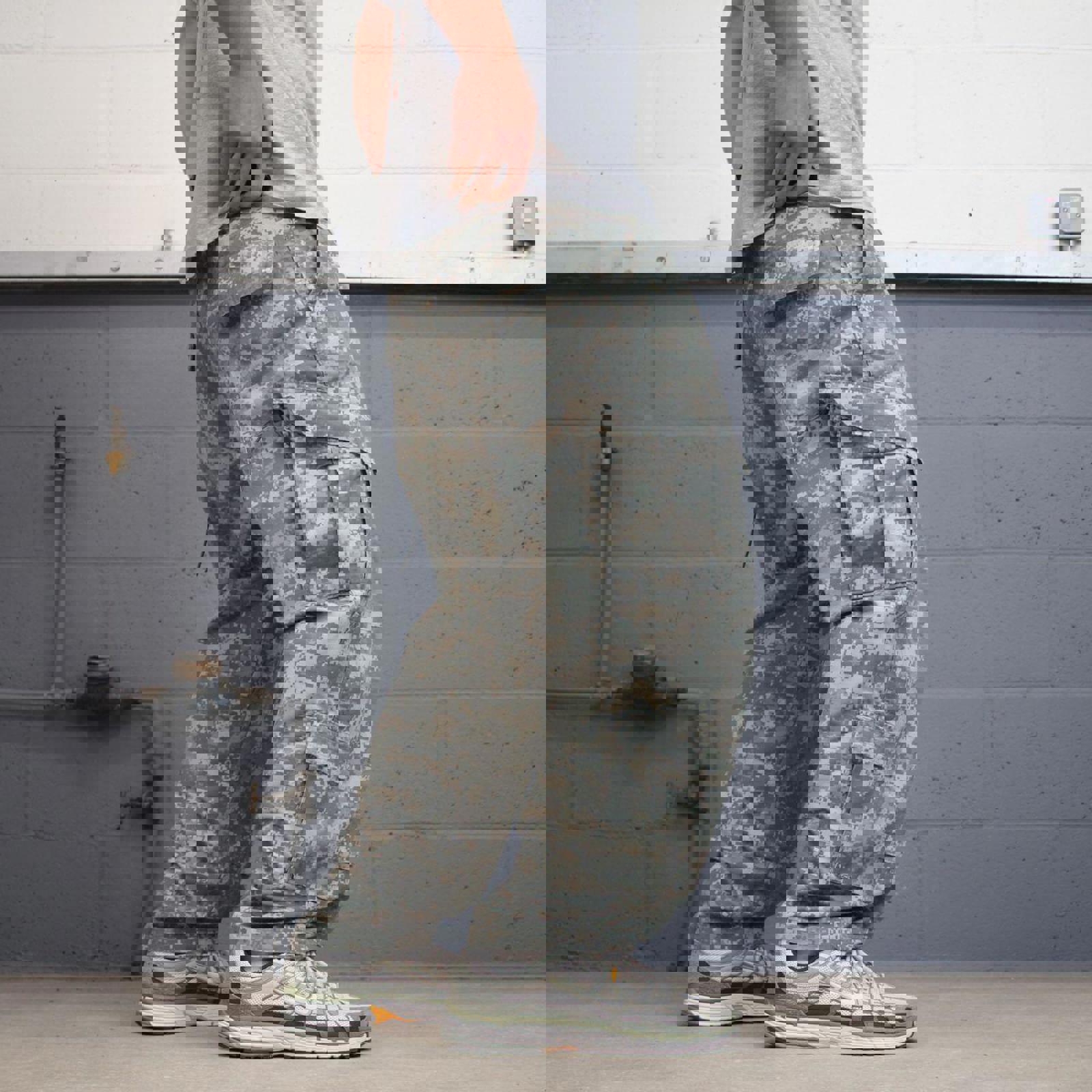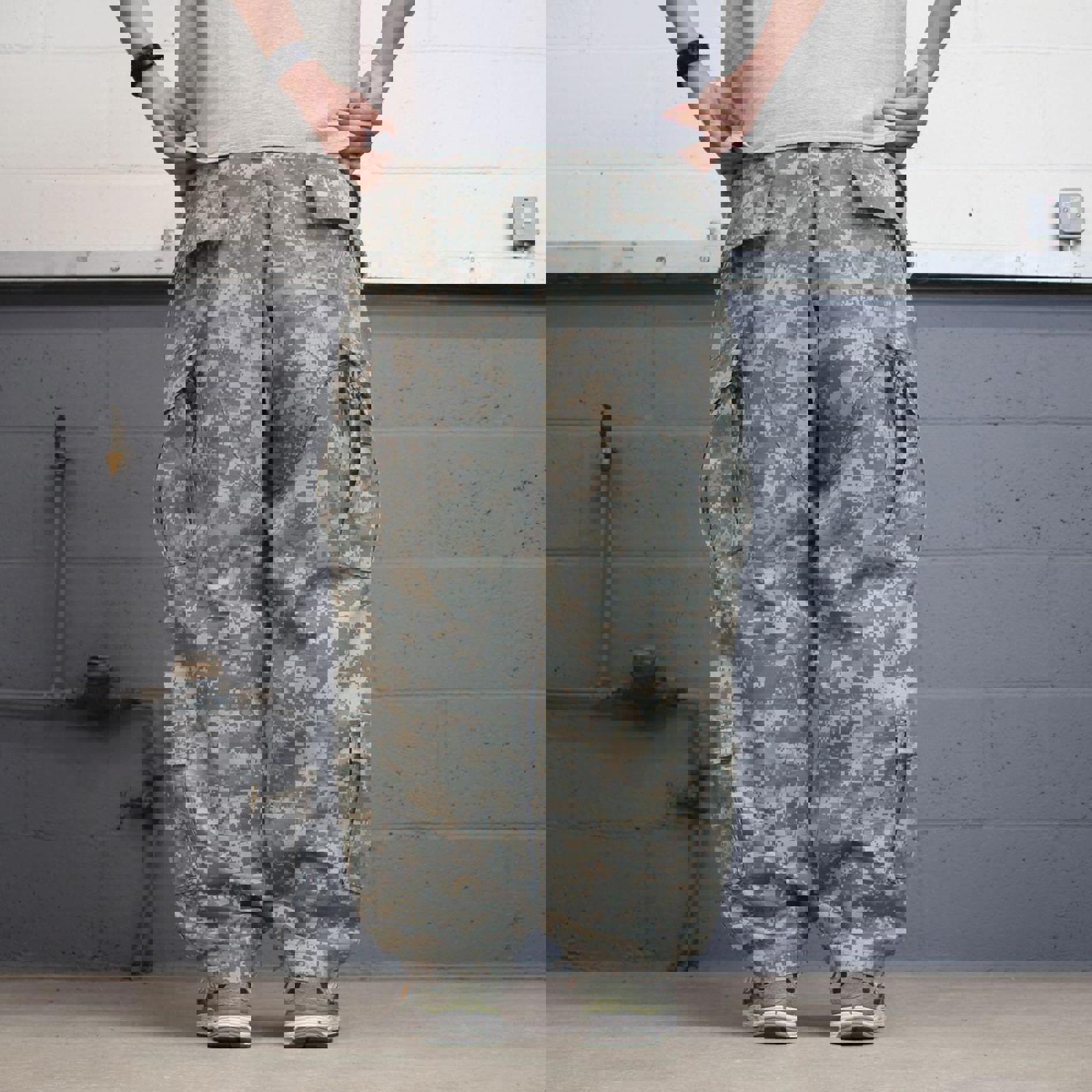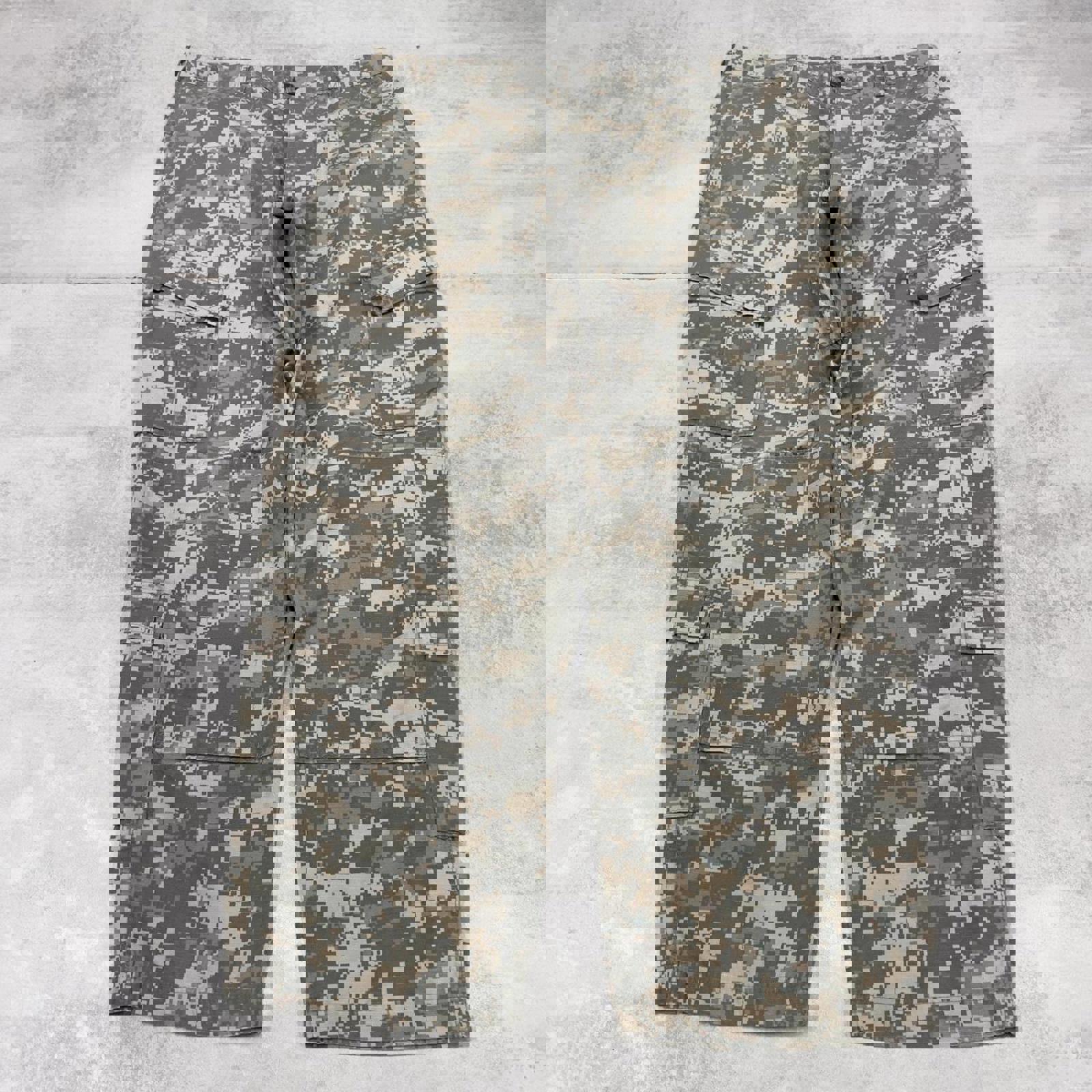 Camo cargo pants W36L30 khaki digital forest camouflage loose straight y2k style cargo trousers