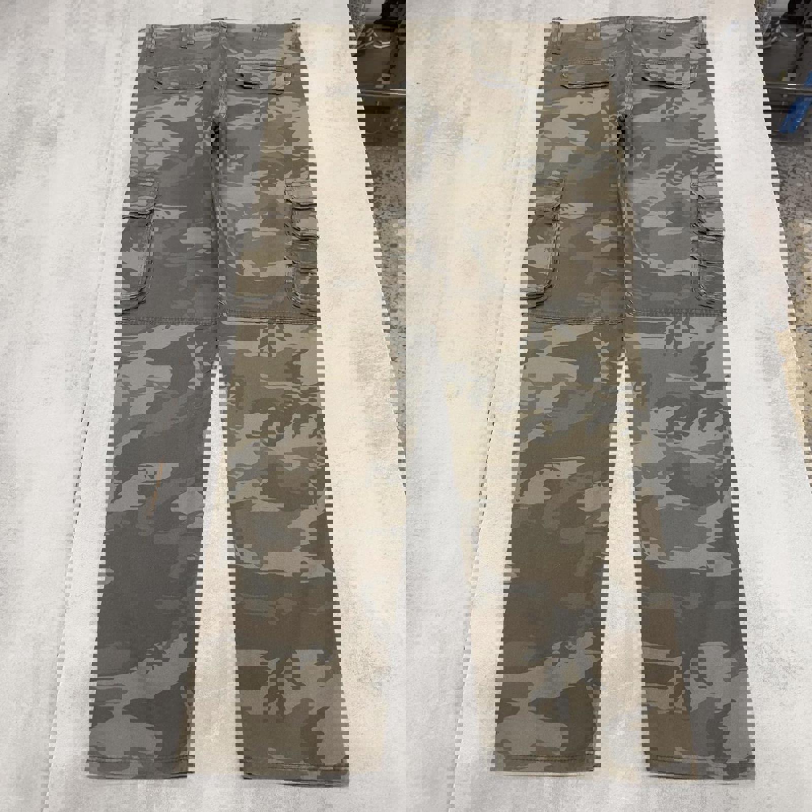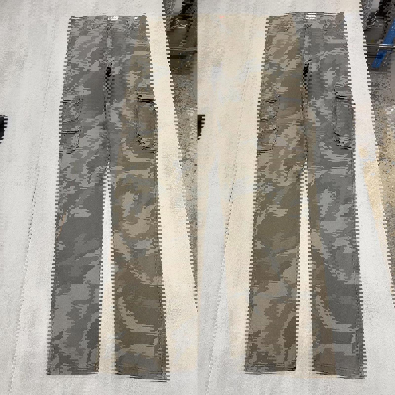 Camo Wrangler cargo pants W40L32 khaki forest camouflage straight y2k style cargo trousers