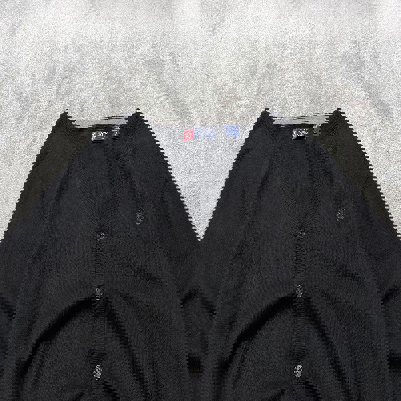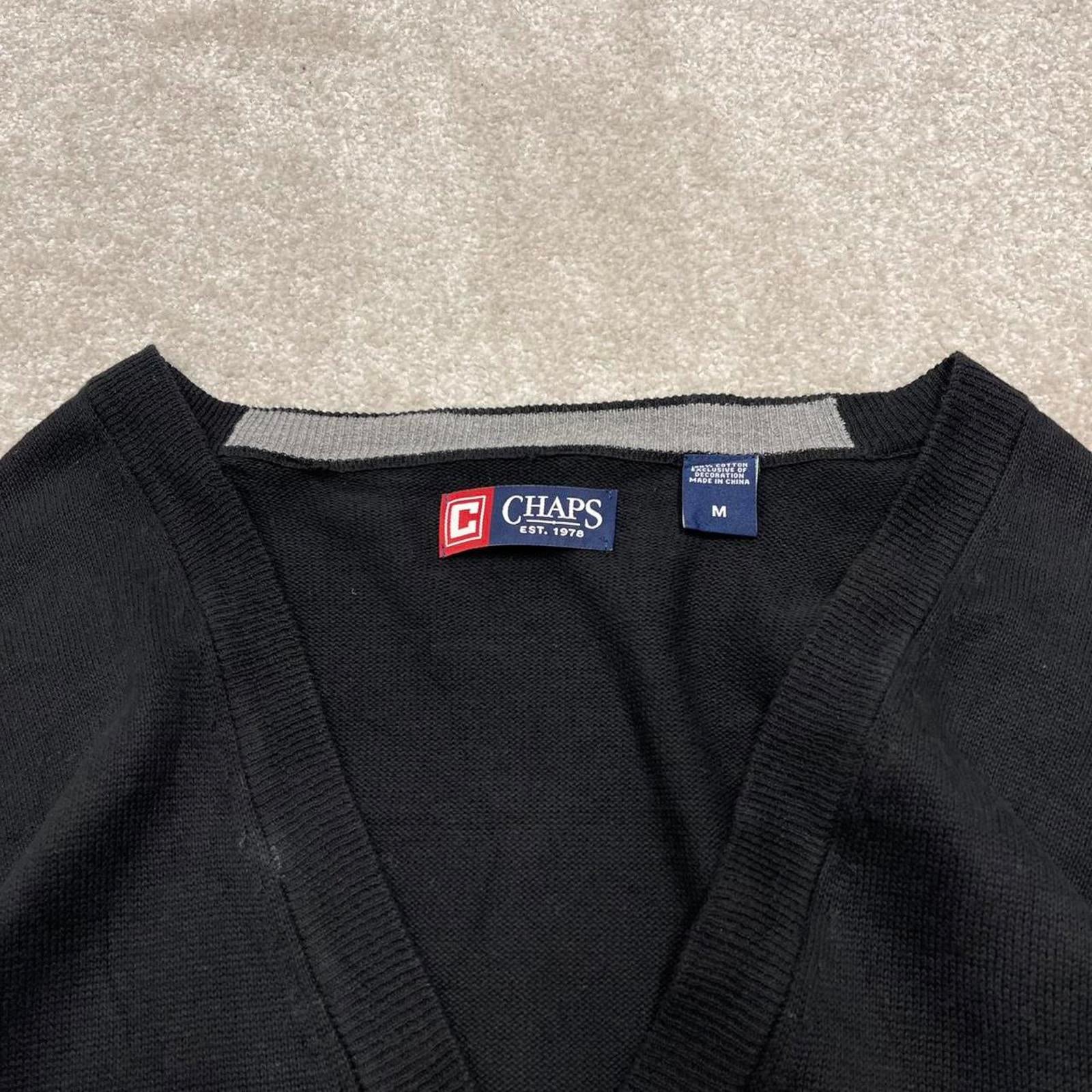 CHAPS knit cardigan jumper embroidered medium men's black knitted button up y2k 00s style