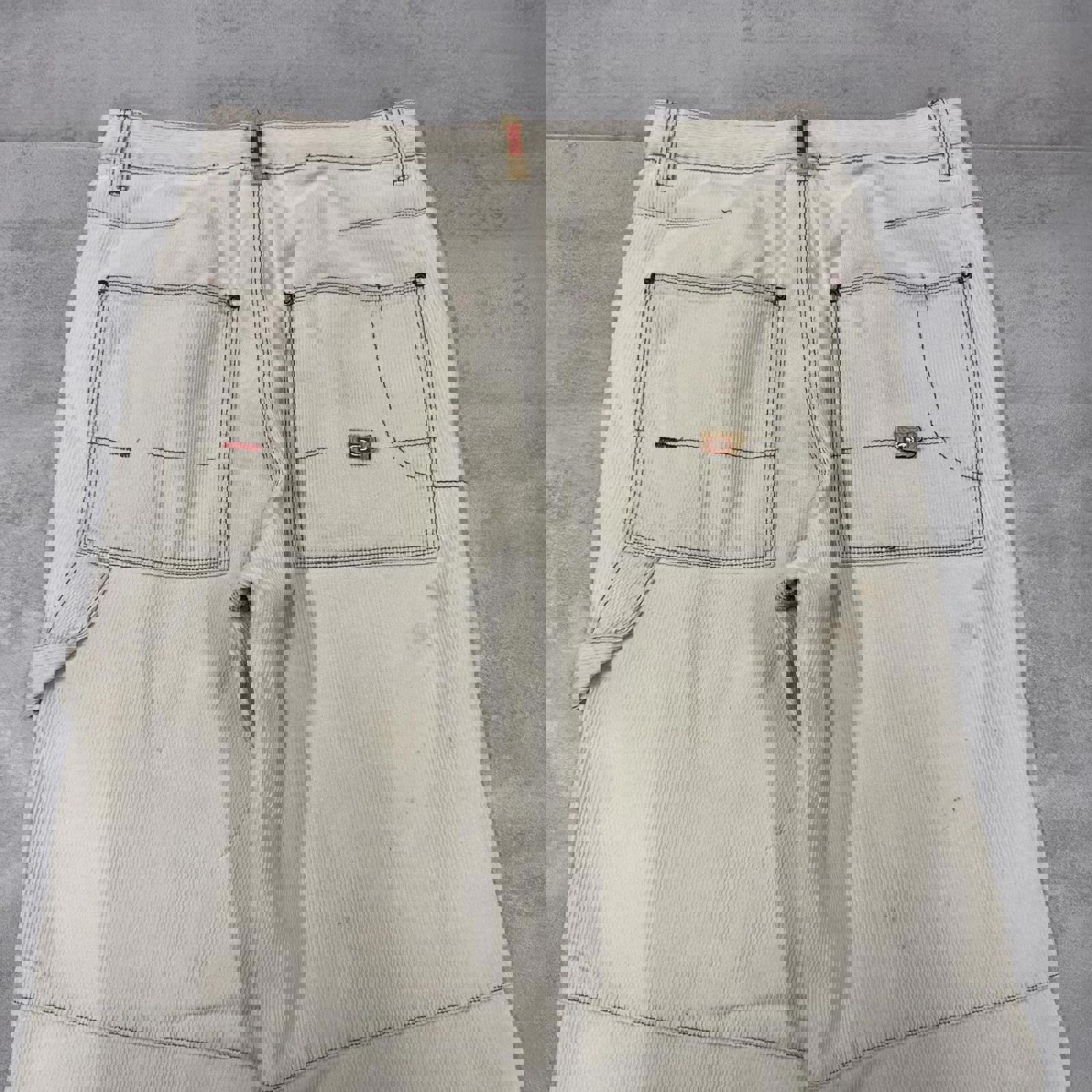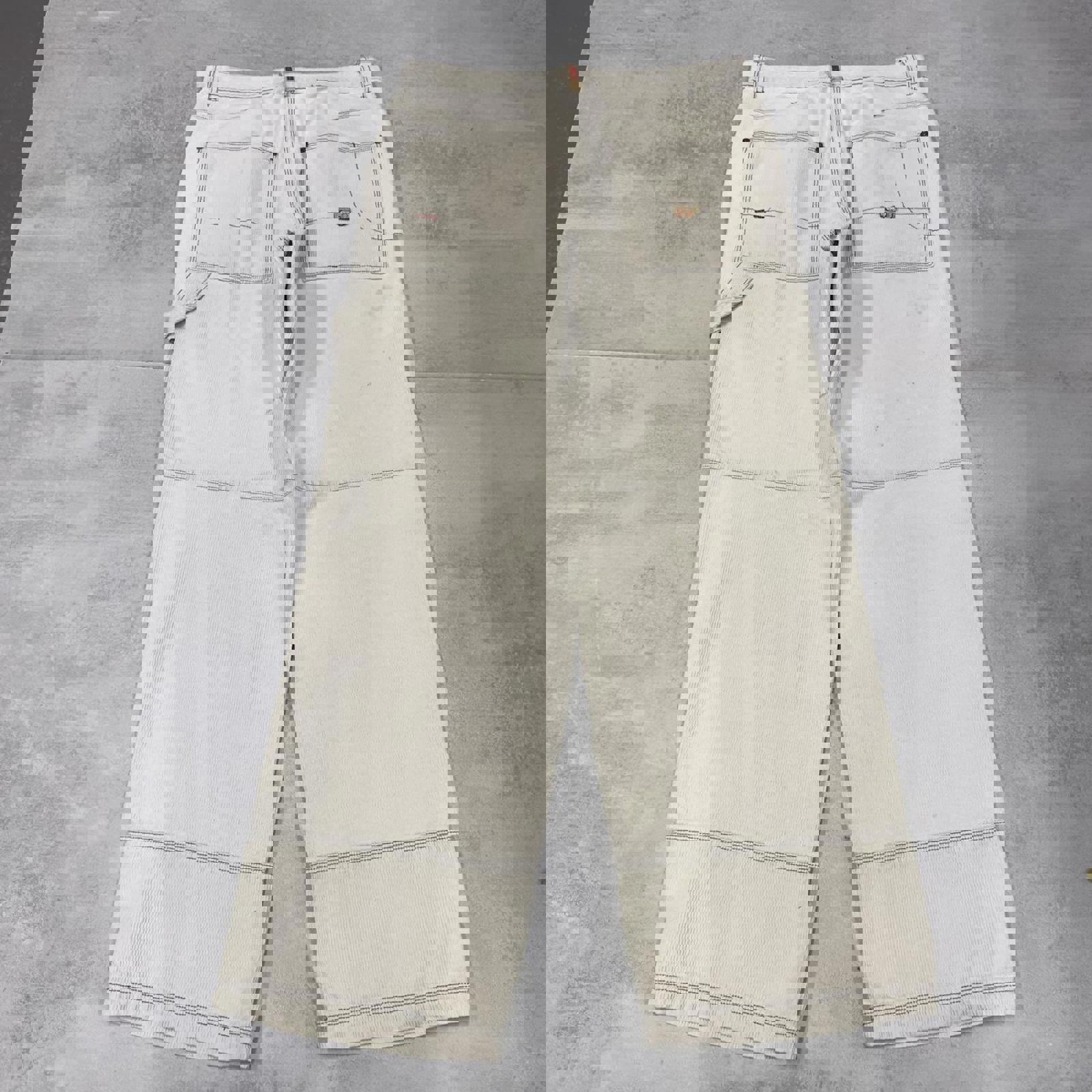 Great pair with sunfading / yellowing to the colour and marking. Small hole on corner of left pocket and above right pocket.