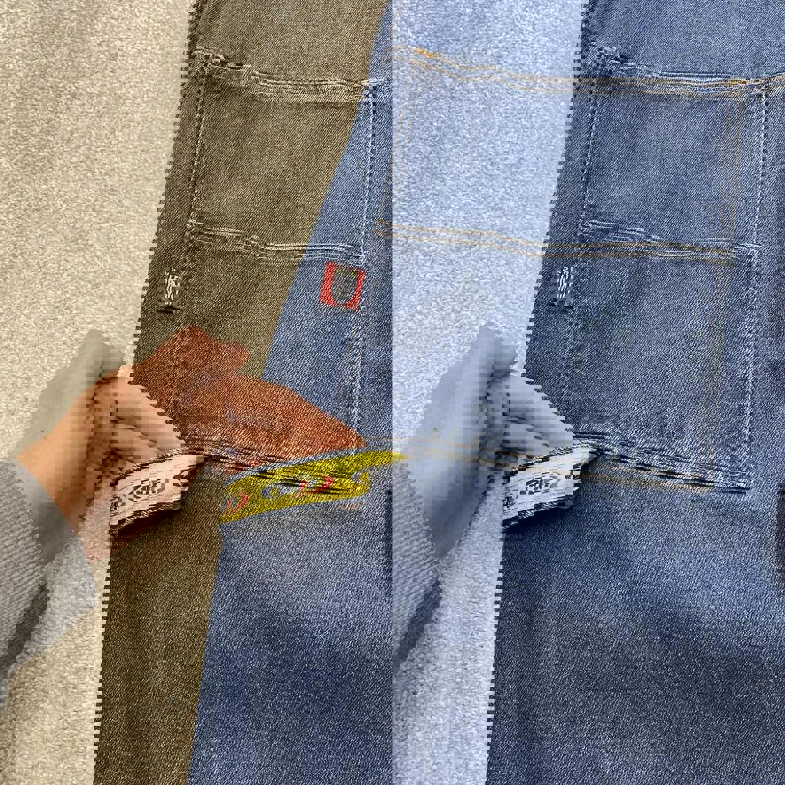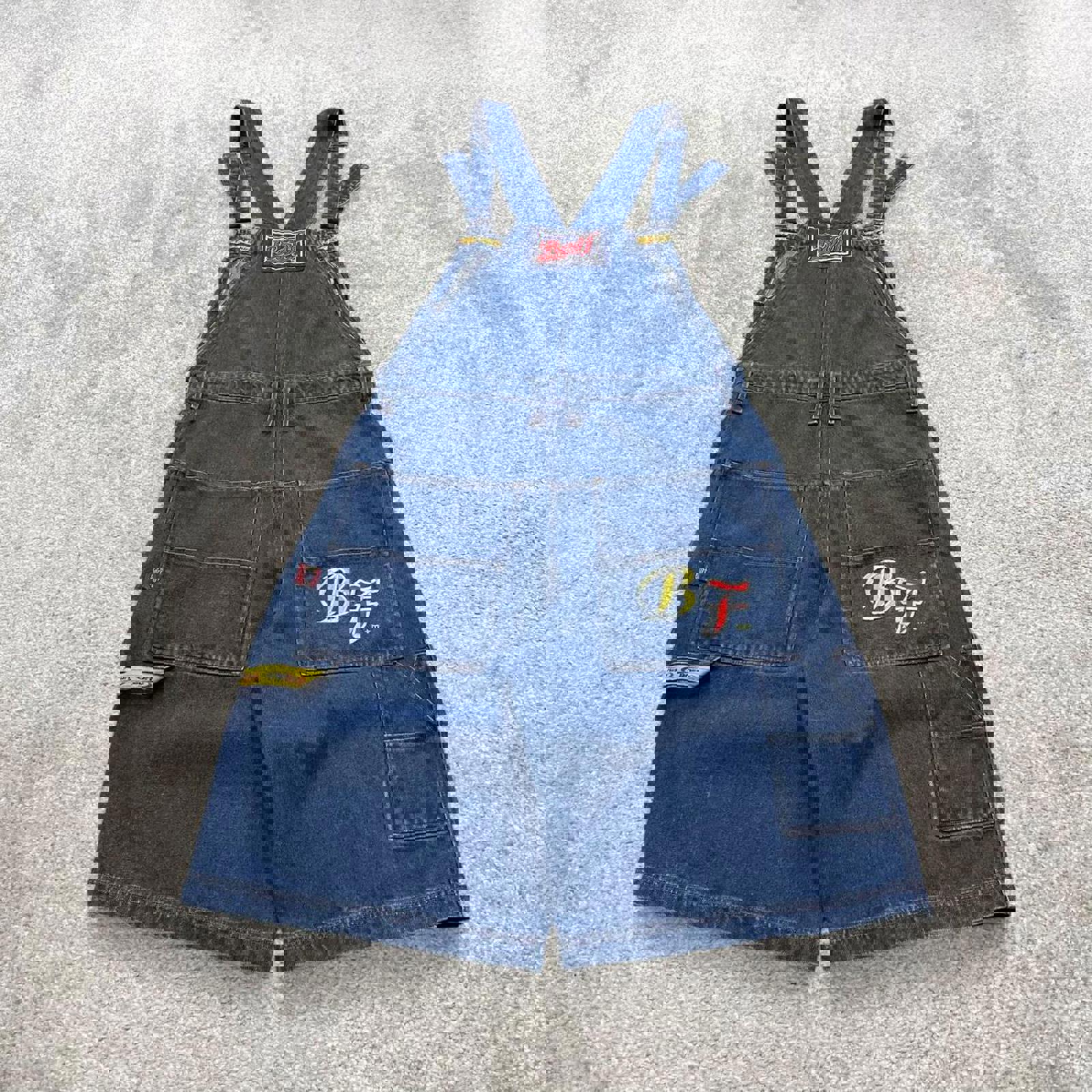 Loose baggy fit with embroidered logos and adjustable straps, perfect festival or skate wear