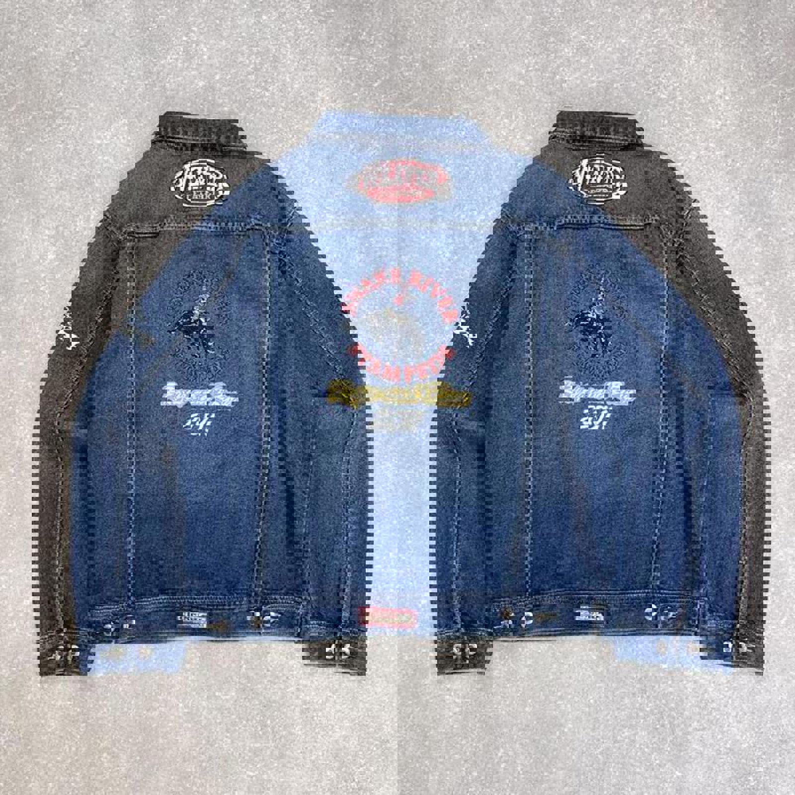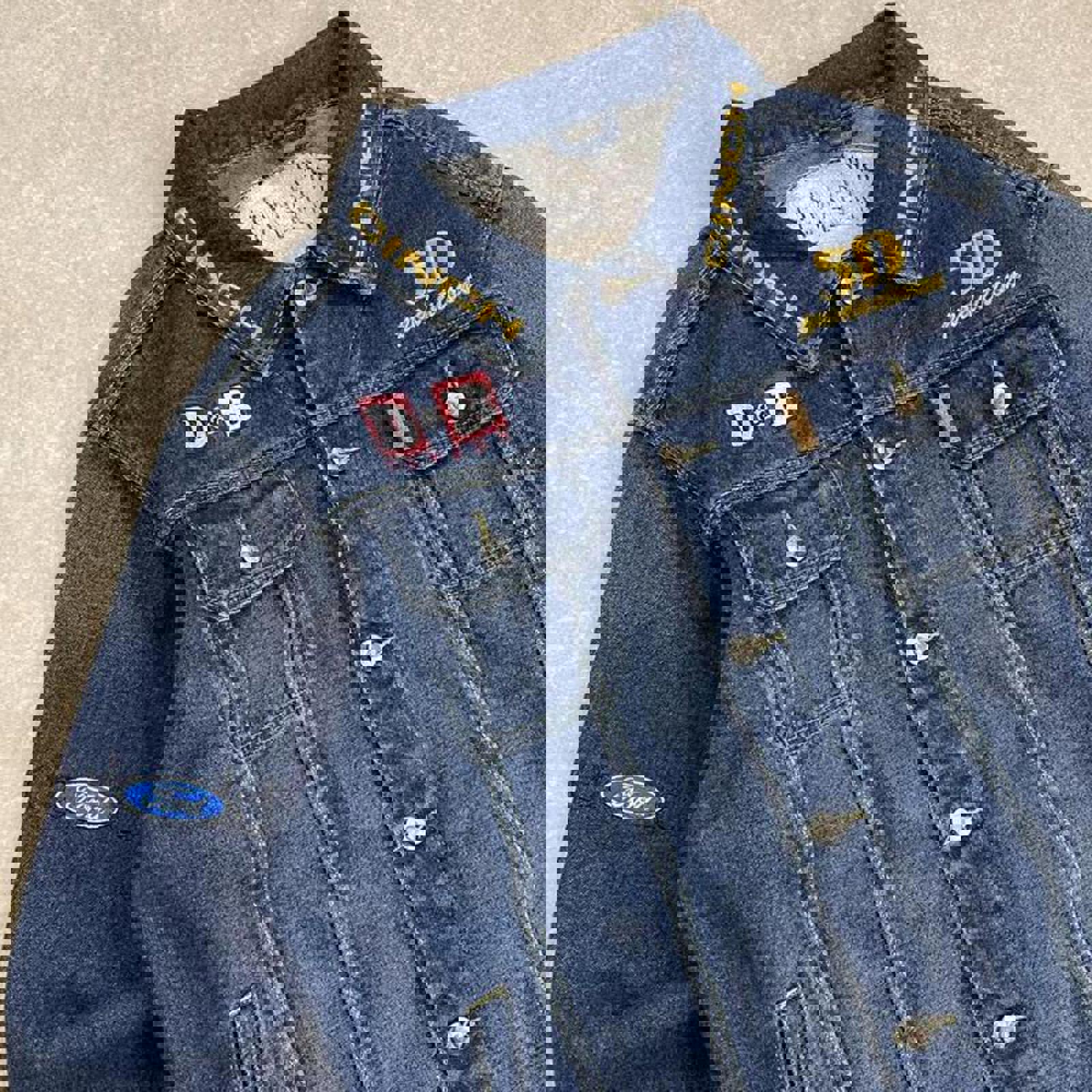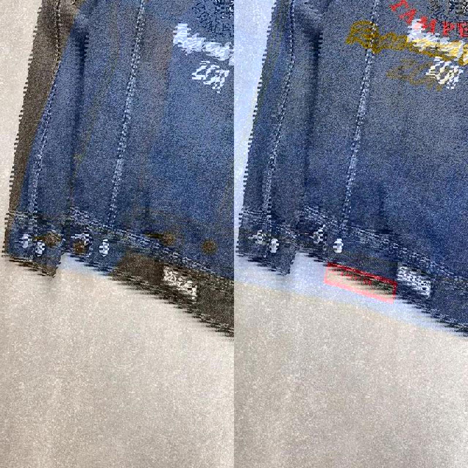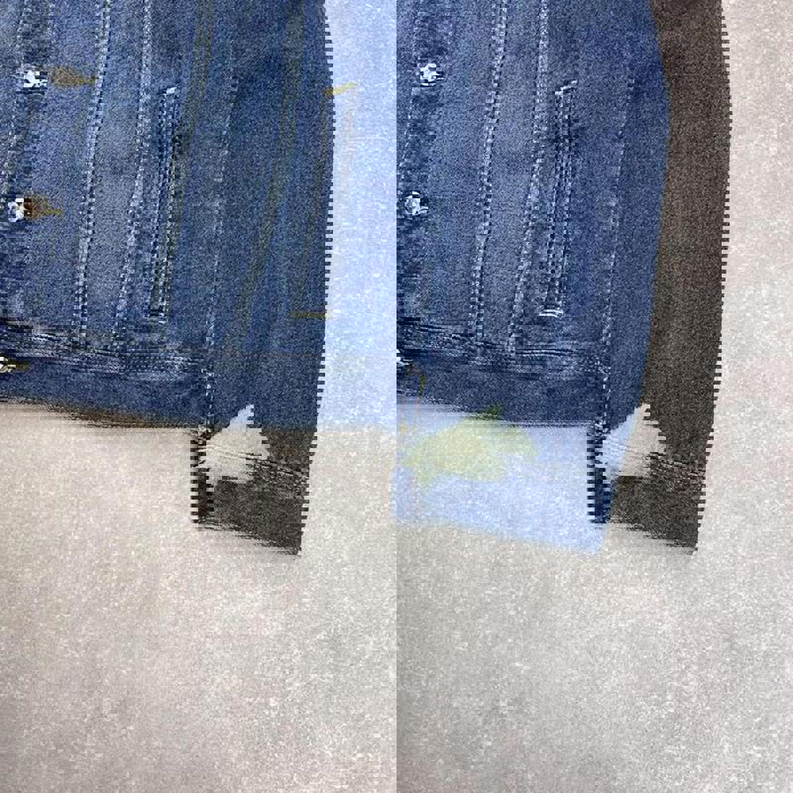 Good condition with a nice aged denim look and a bleach mark on left sleeve