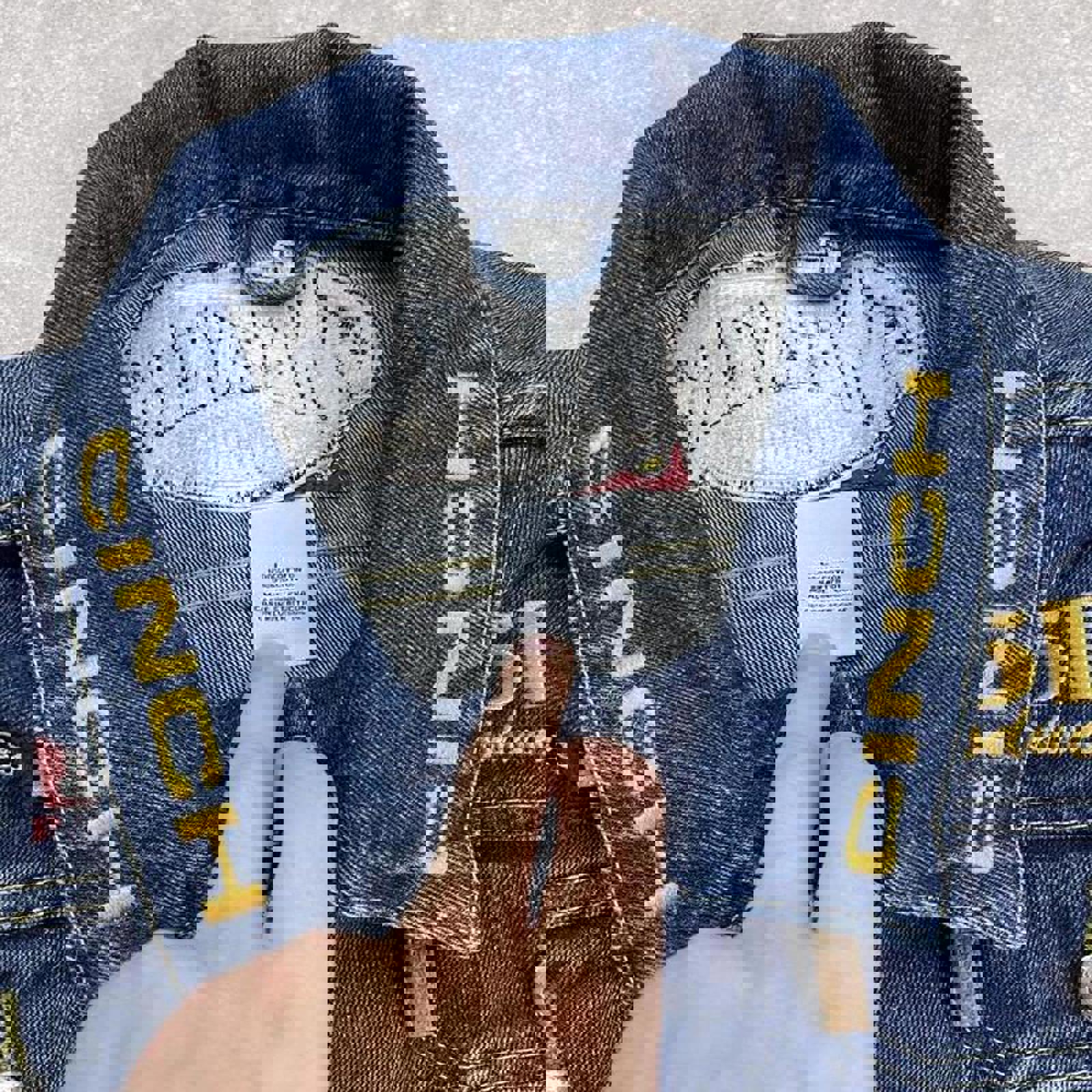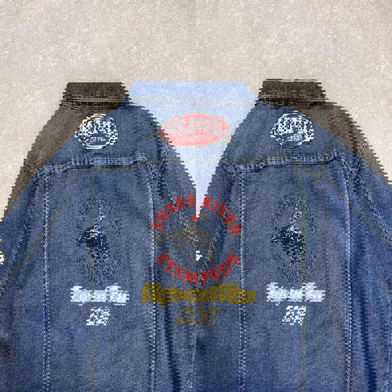 Cinch denim skate jacket with embroidered detailing including cowboy embroidery