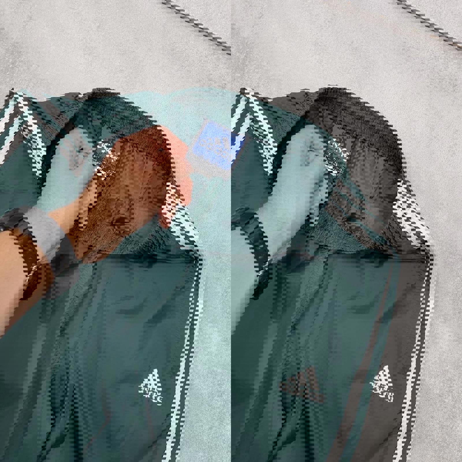 Green Adidas Team trackies M y2k style sportswear track pants embroidered logo side stripe design