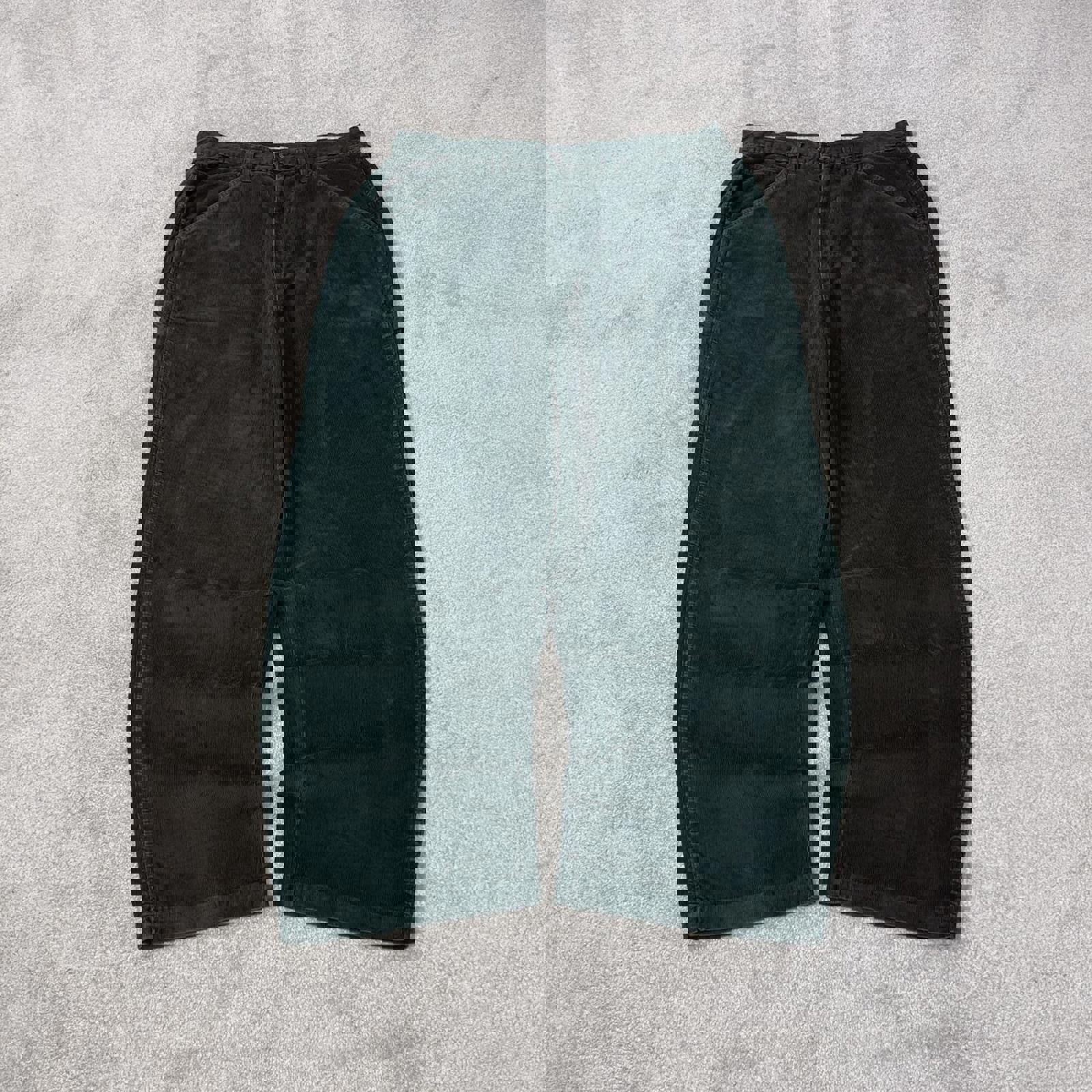 Green Venezia Jeans corduroy carpenter trousers W36L30 extra baggy cord pants 90s skate style