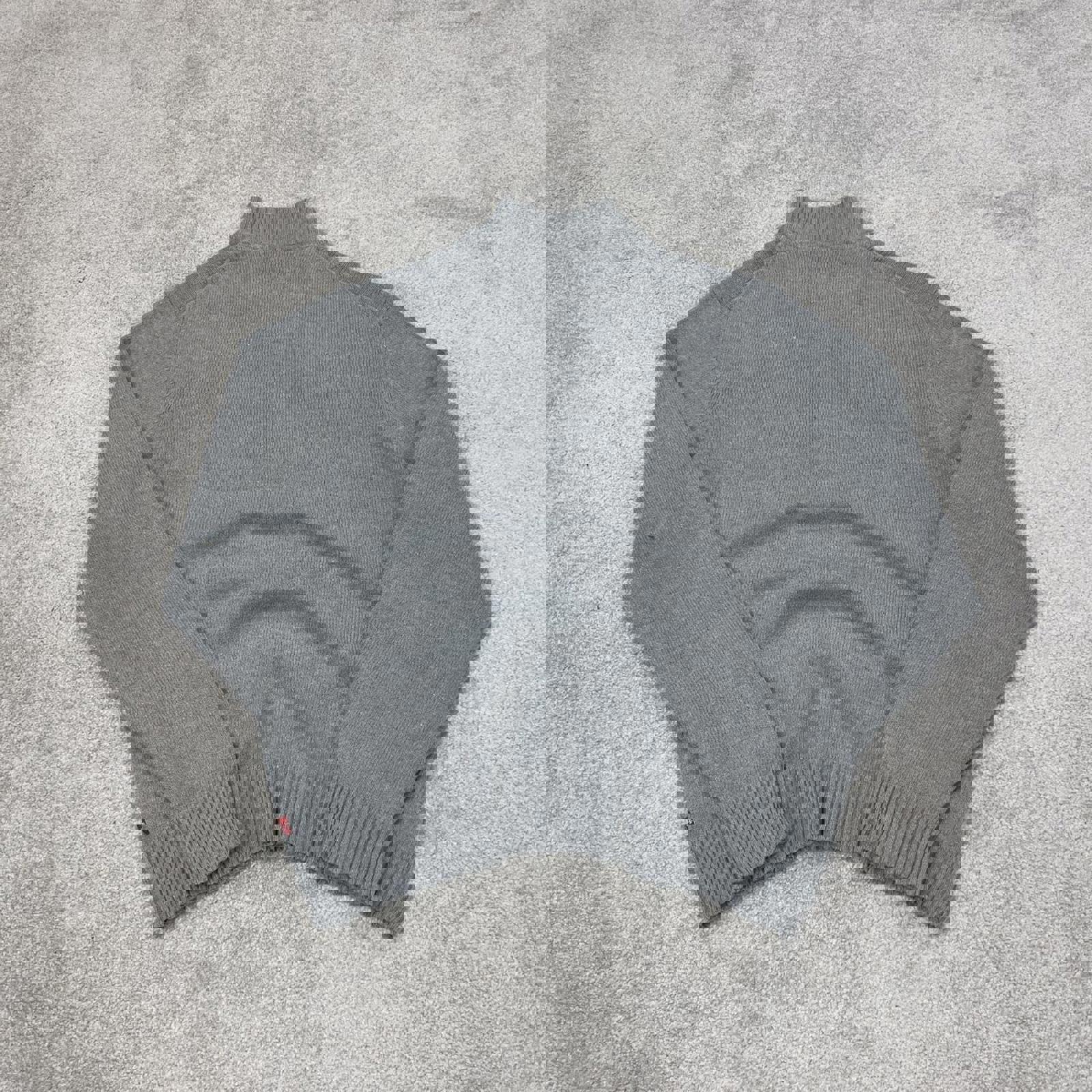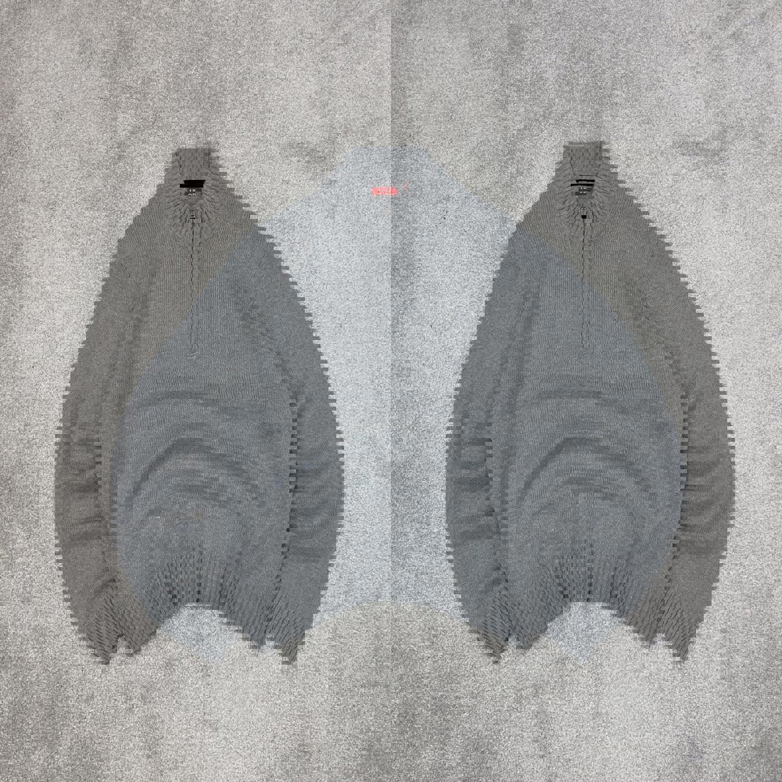 Grey knit jumper, pull over, embroidered logo, technical winter, outdoor wear, cable knit, preppy style, cozy layering, fall fashion