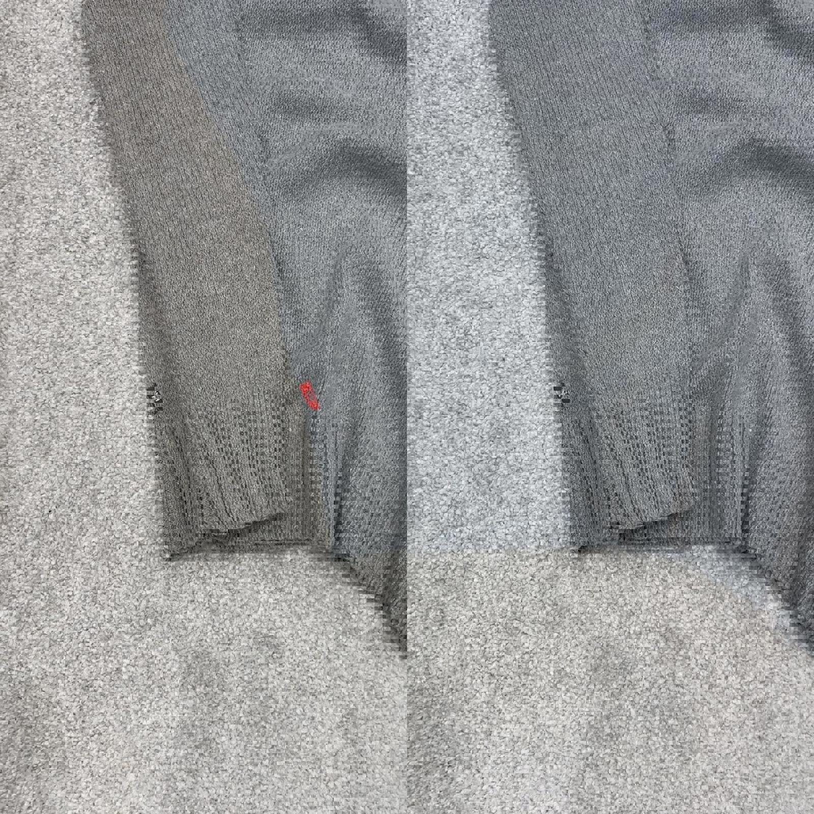 Great condition! One small mark on the sleeve, end of the zipper pull cover has snapped off, still works perfectly