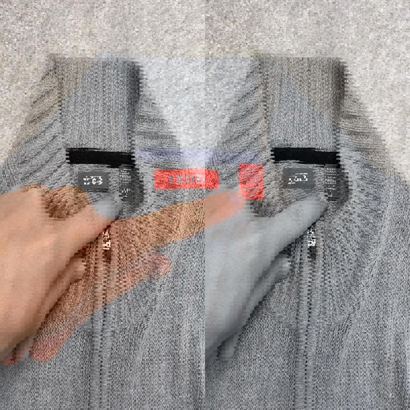 Grey IZOD chunky knit quarter zip pullover jumper XL embroidered logo 1/4 zip sweater y2k style