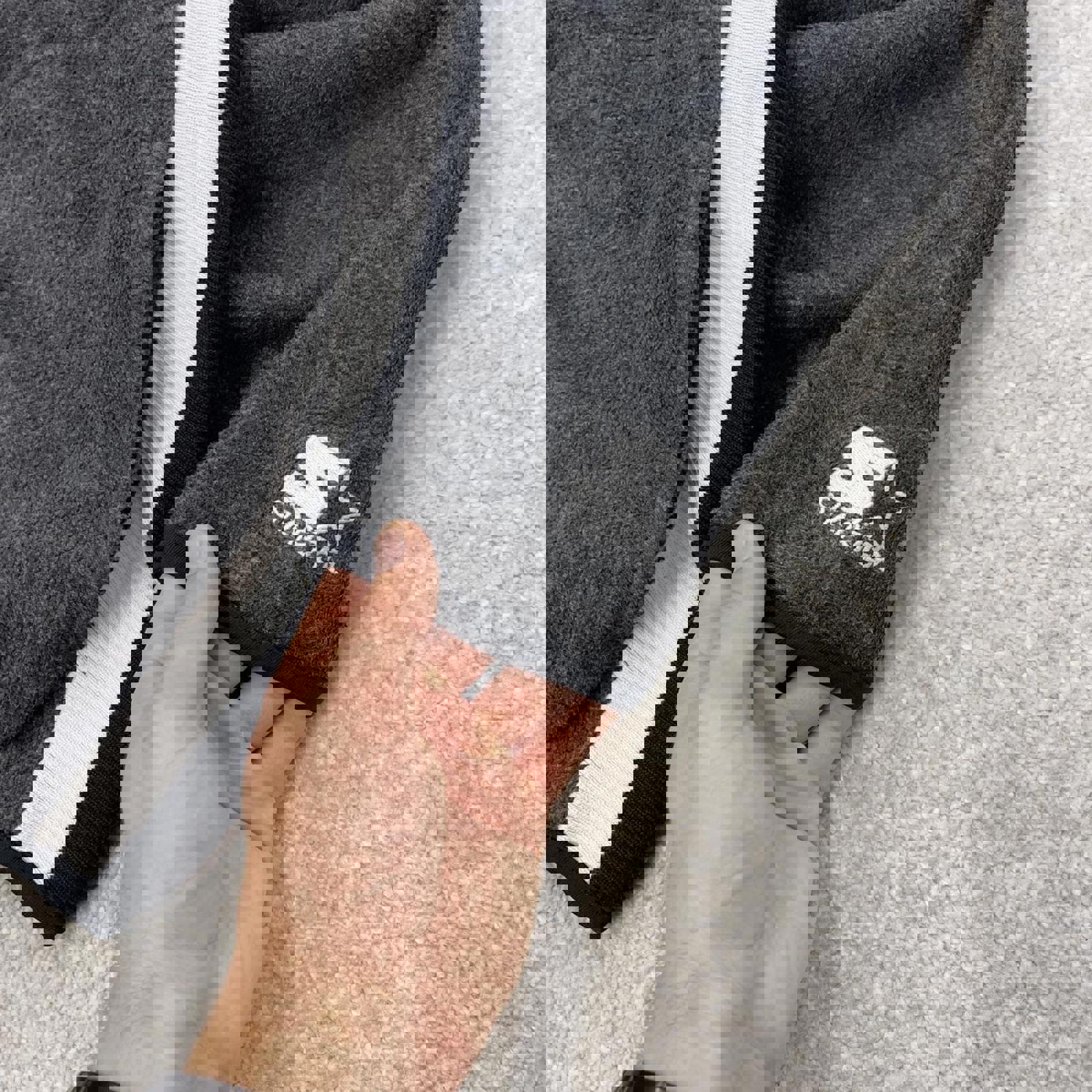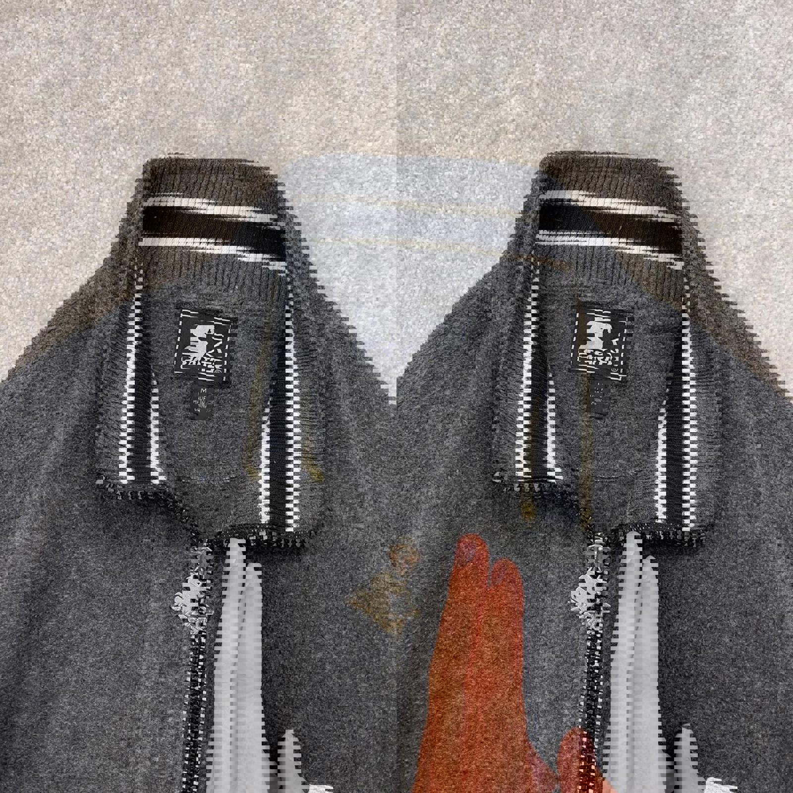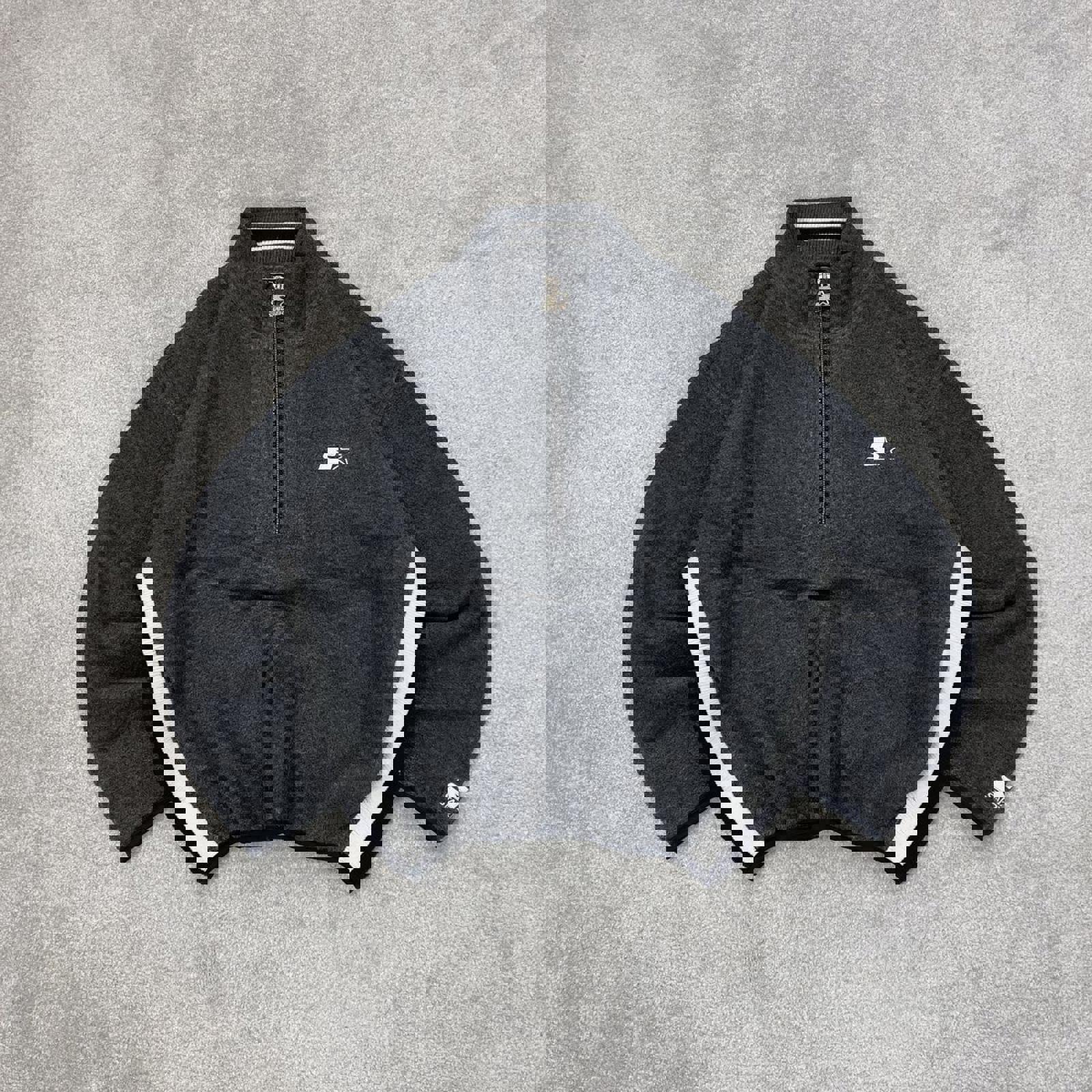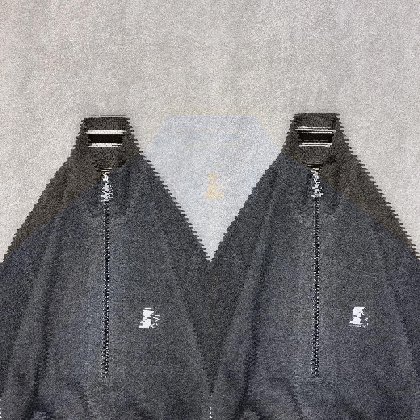Grey Starter technical fleece with embroidered logos and premium zipper pull