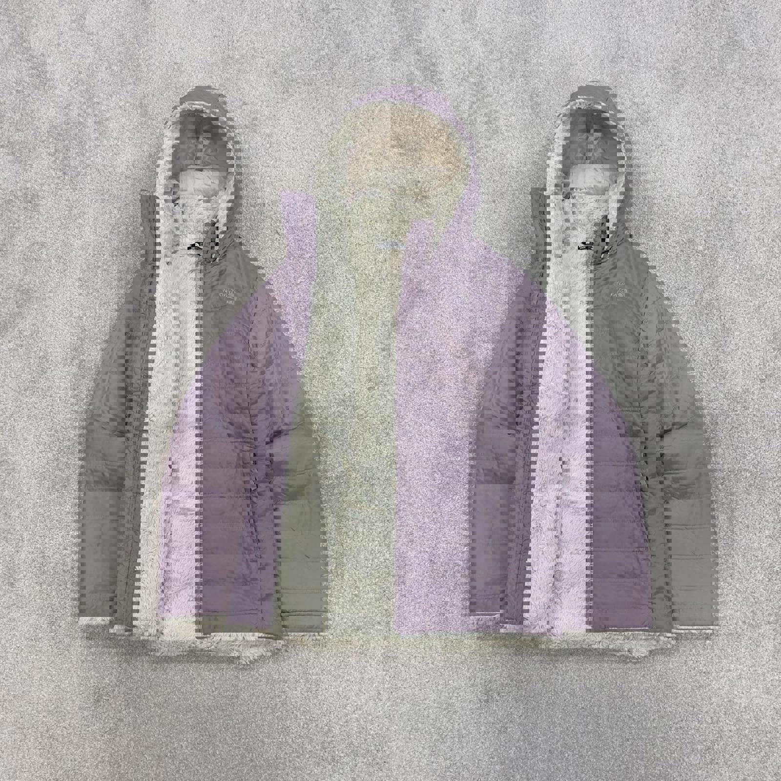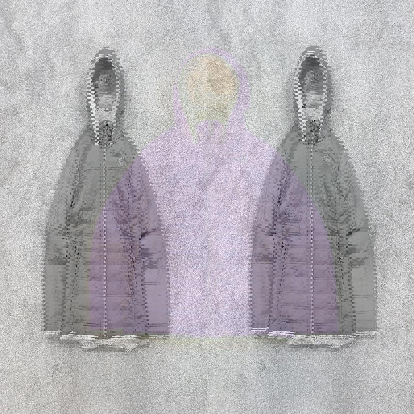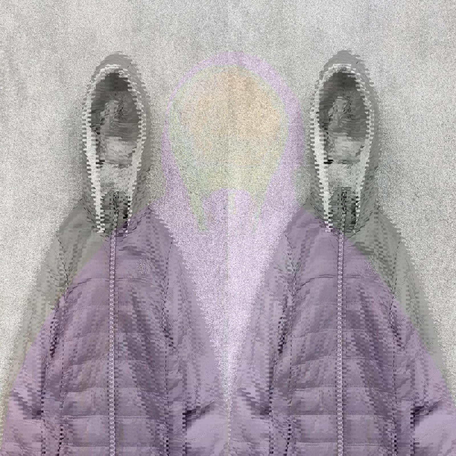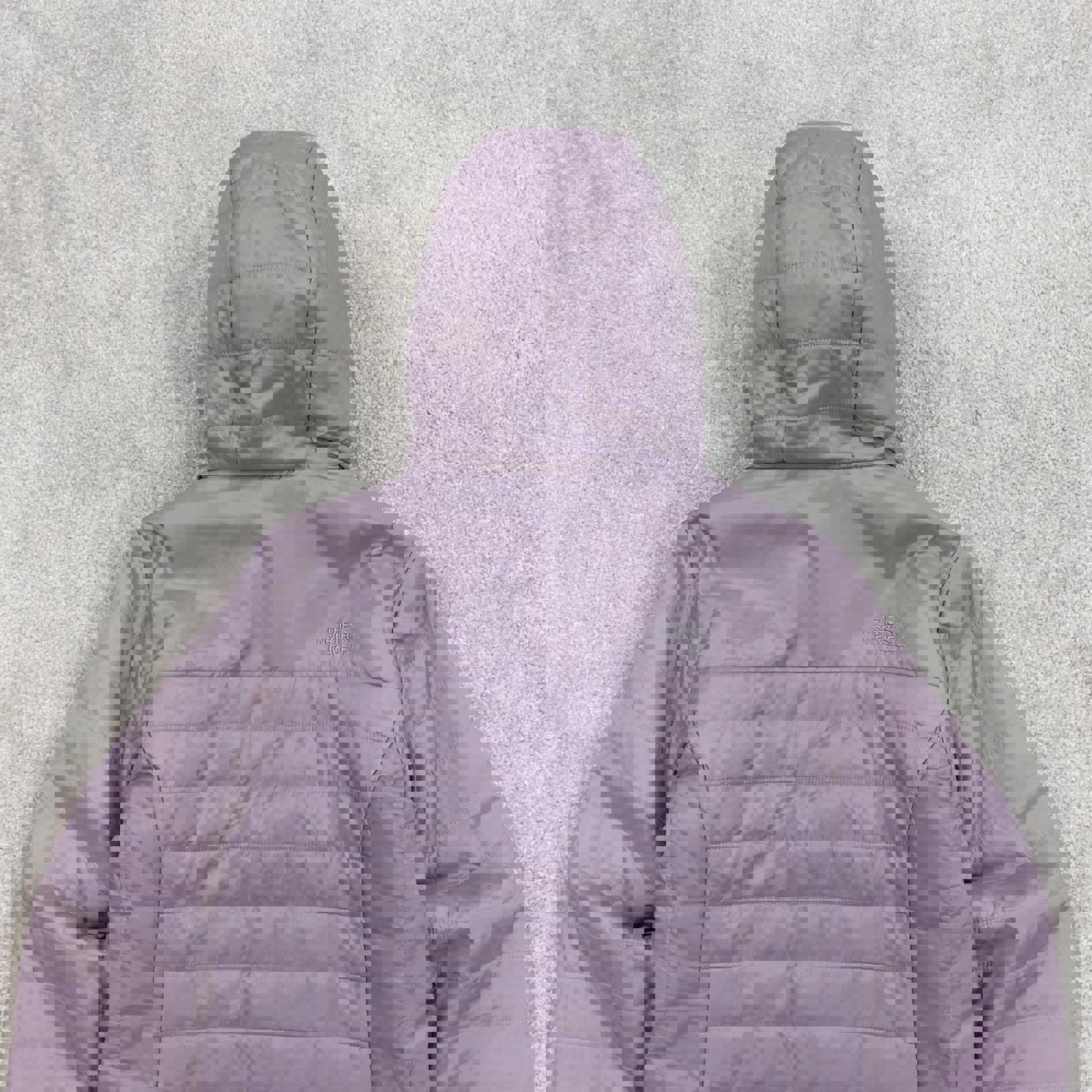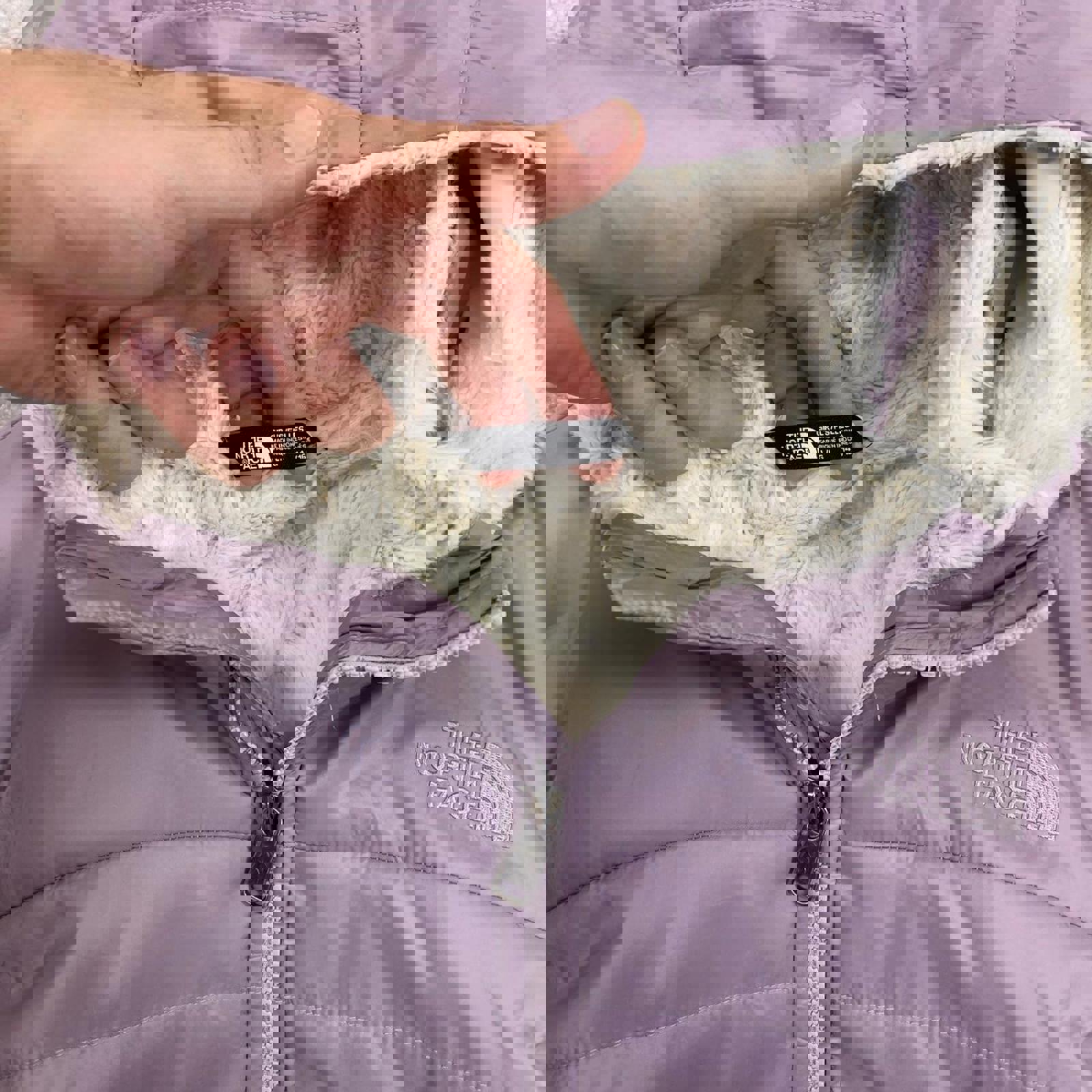 Lilac North Face quilted jacket Girls large TNF sherpa lined hooded coat y2k style zip pockets