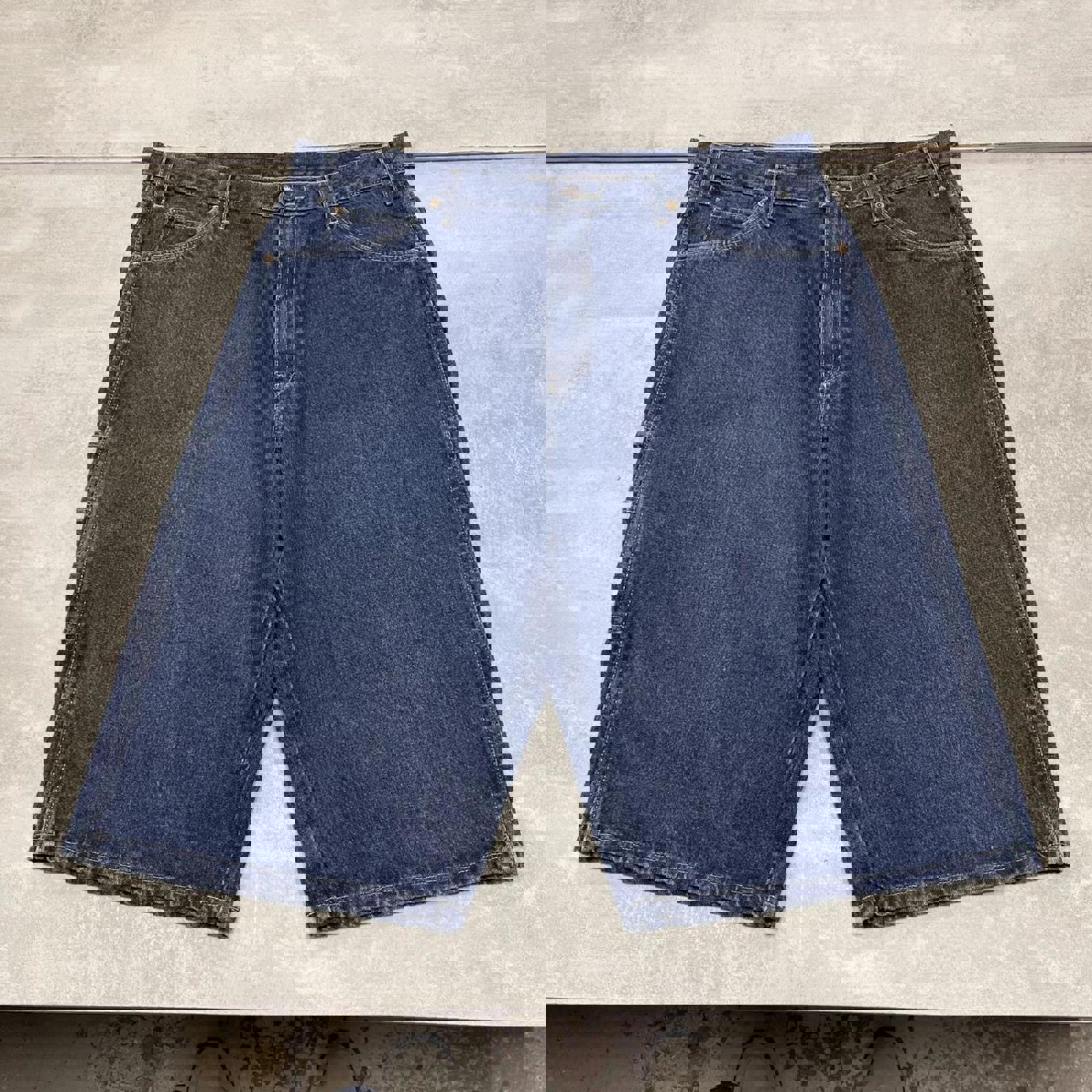 Mens Baggy Dickies carpenter shorts W38 thick blue denim jorts long over knee
