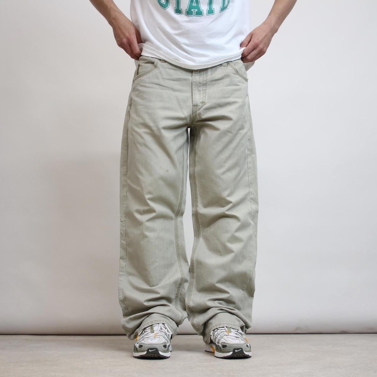 Mens baggy MOJeans jeans W38 L35 beige embroidered wide leg jeans
