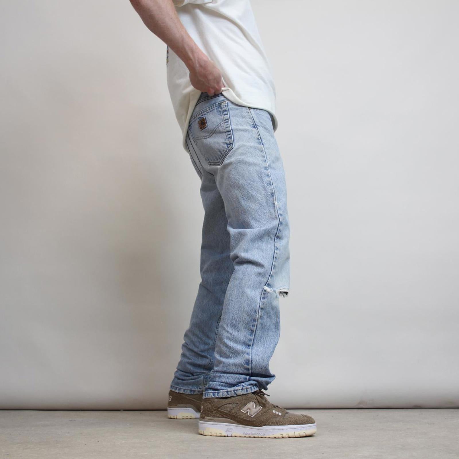 Mens vintage Carhartt jeans W34 L33 blue thick denim 90s style worker jeans